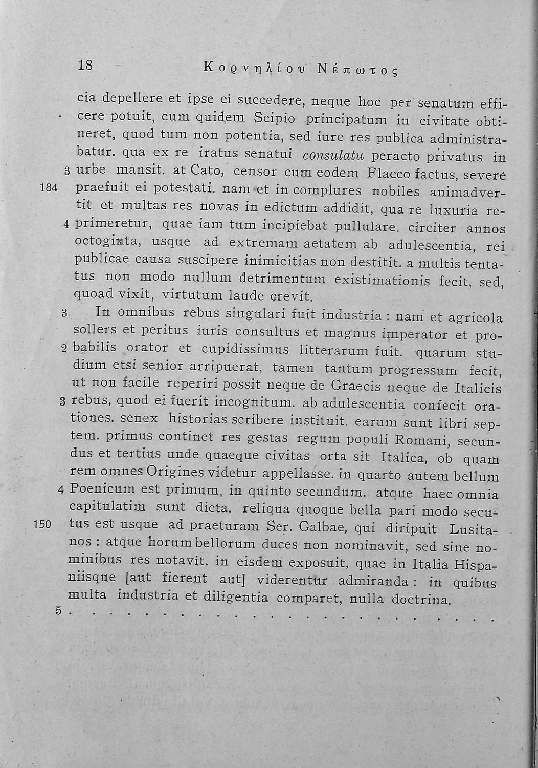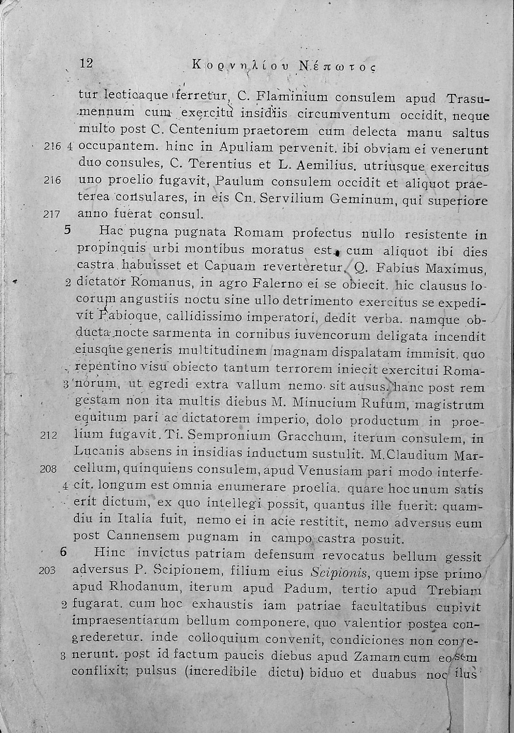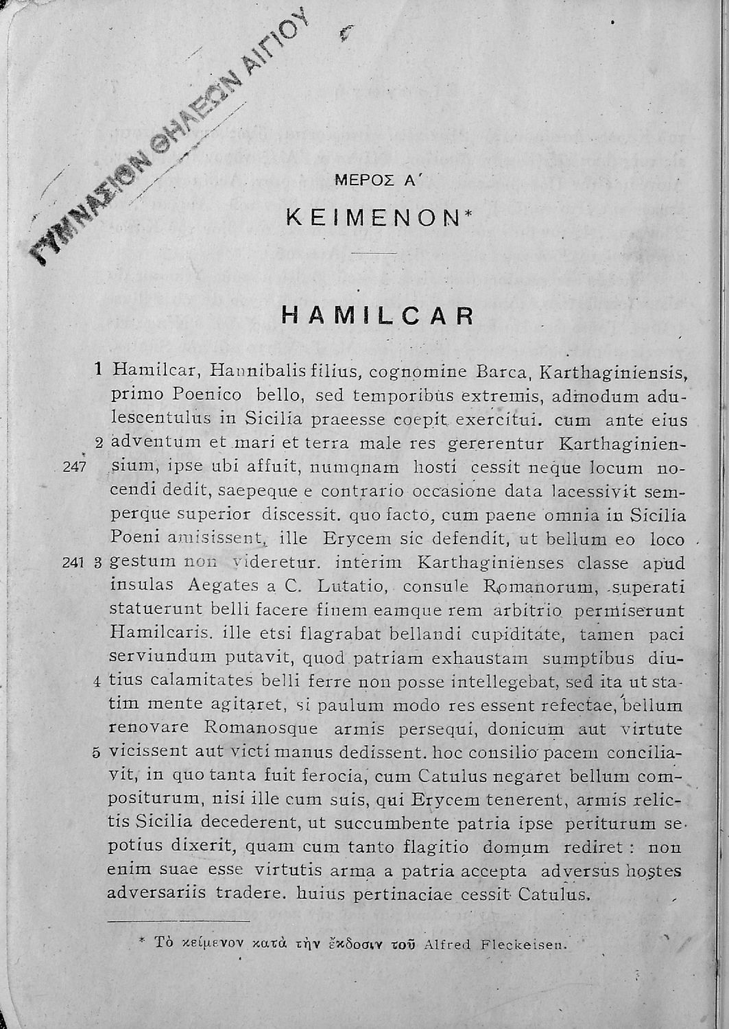 Σχολικό εγχειρίδιο Λατινικών για την Δ΄ Γυμνασίου παλαιού τύπου και την Ε΄ Γυμνασίου νέου τύπου που περιέχει σύντομο βιογραφικό σημείωμα του Νέπωτα, αποσπάσματα από τα έργα Αμίλκας, Αννίβας, Κάτων και Αττικός ...