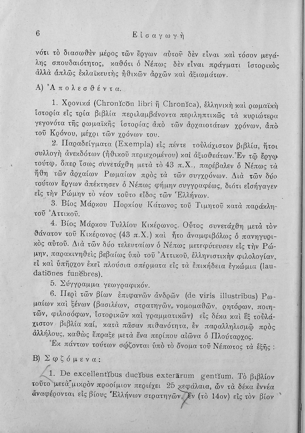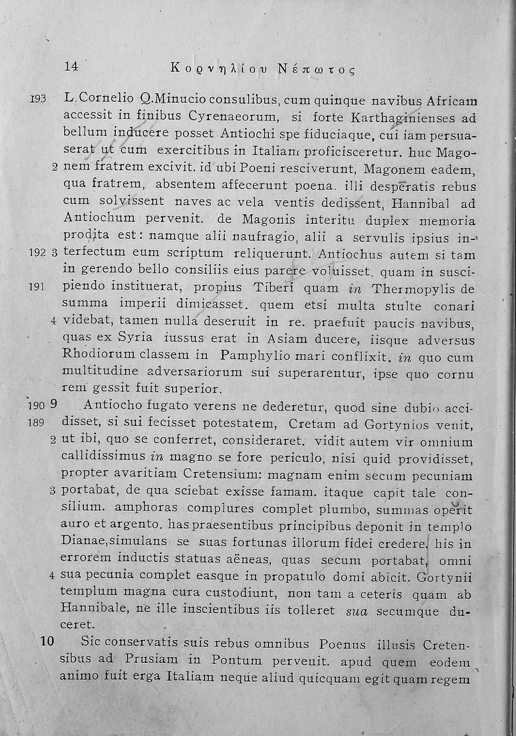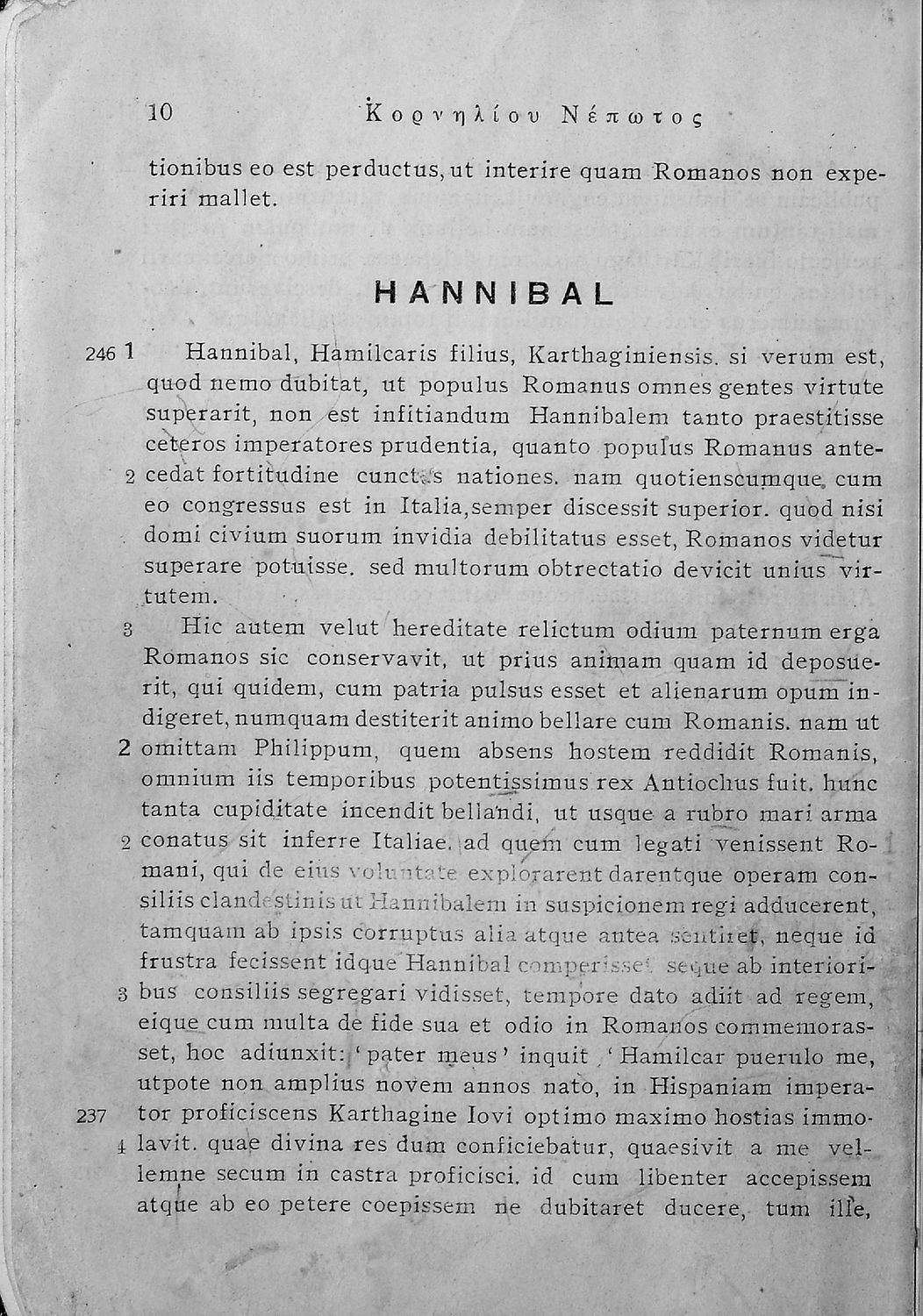 Σχολικό εγχειρίδιο Λατινικών για την Δ΄ Γυμνασίου παλαιού τύπου και την Ε΄ Γυμνασίου νέου τύπου που περιέχει σύντομο βιογραφικό σημείωμα του Νέπωτα, αποσπάσματα από τα έργα Αμίλκας, Αννίβας, Κάτων και Αττικός ...