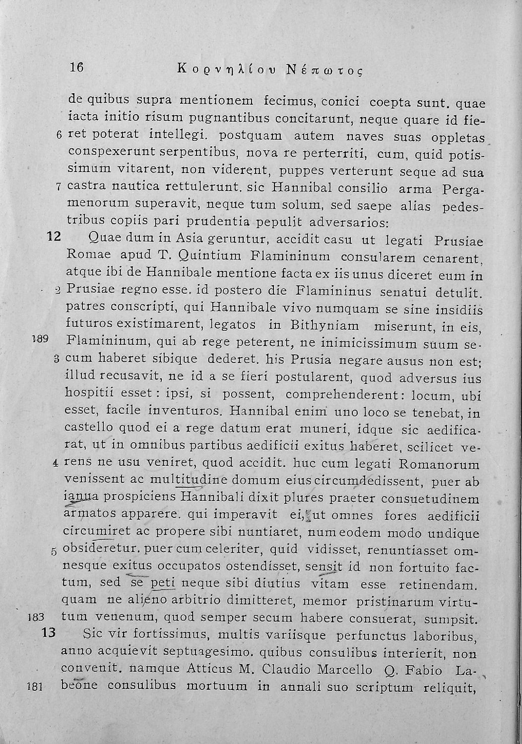Σχολικό εγχειρίδιο Λατινικών Δ΄ Γυμνασίου παλαιού τύπου και την Ε΄ Γυμνασίου νέου τύπου που περιέχει σύντομο βιογραφικό σημείωμα του Νέπωτος, αποσπάσματα από τα έργα Αμίλκας, Αννίβας, Κάτων και Αττικός, ...