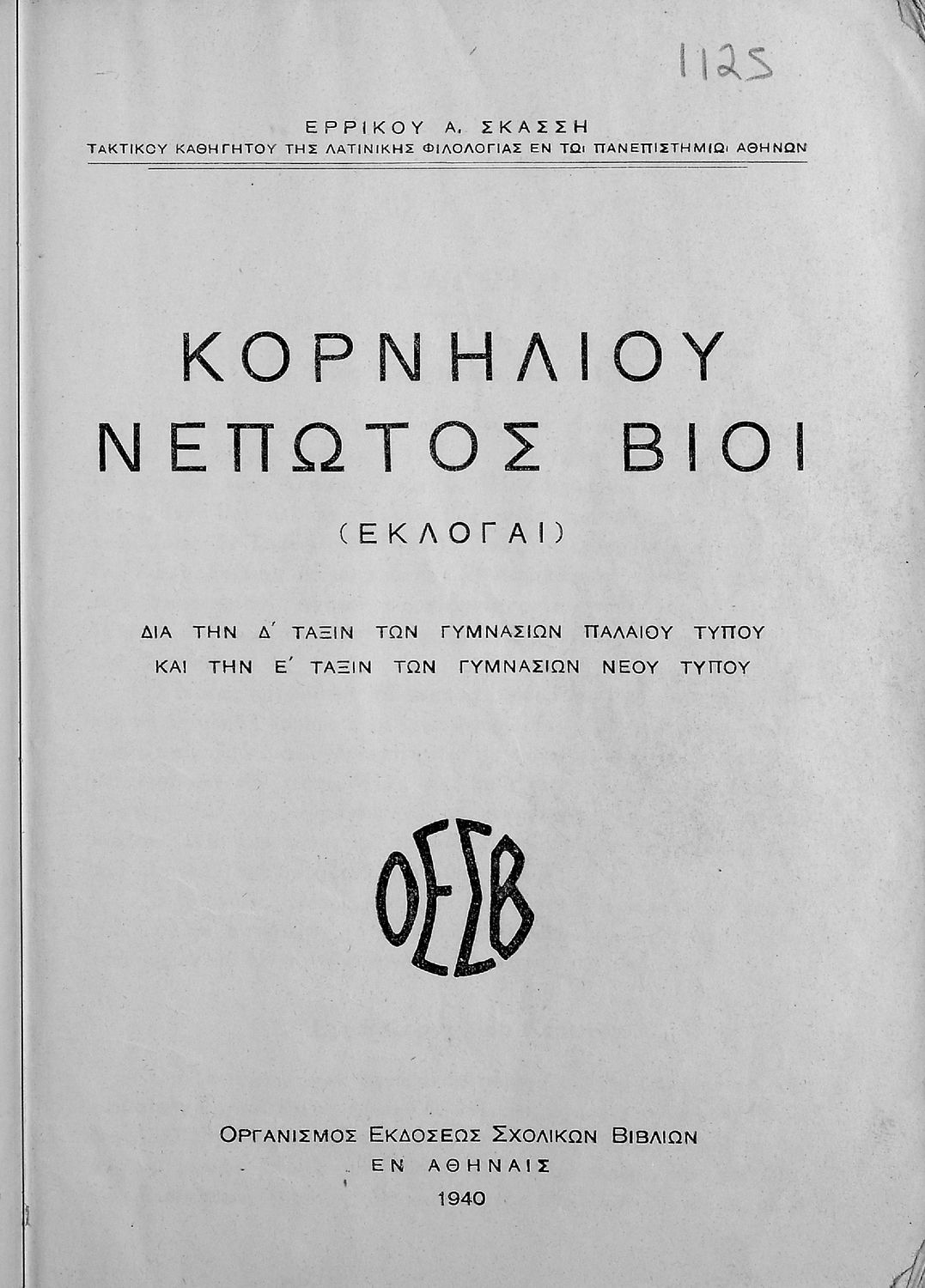Συγγραφέας: Κορνήλιος Νέπως (Cornelius Nepos), Ερρίκος Α. Σκάσσης (σχόλια)