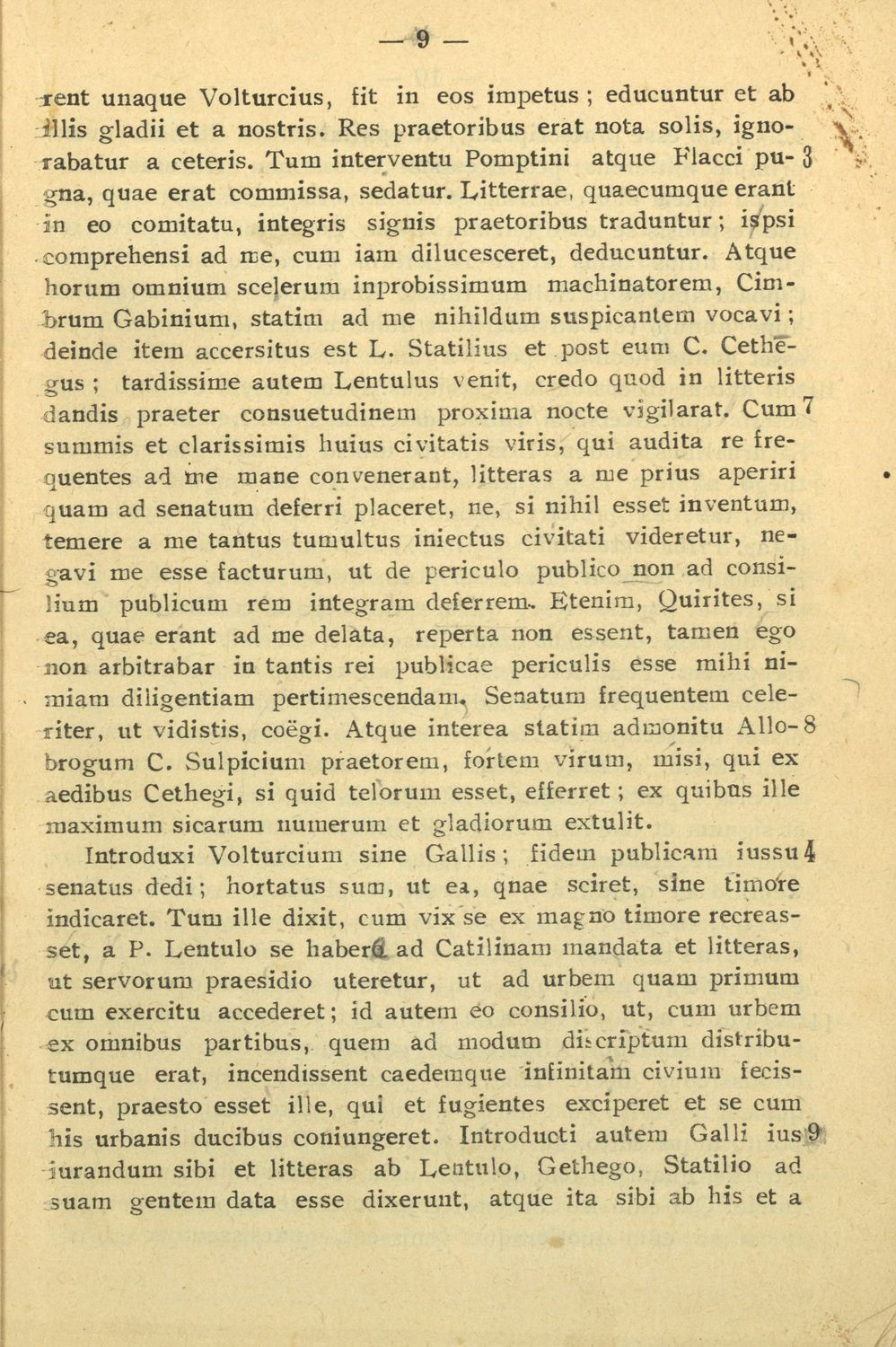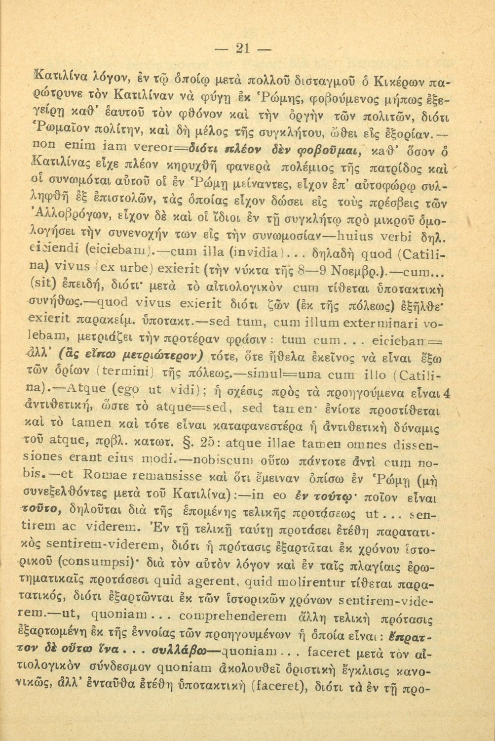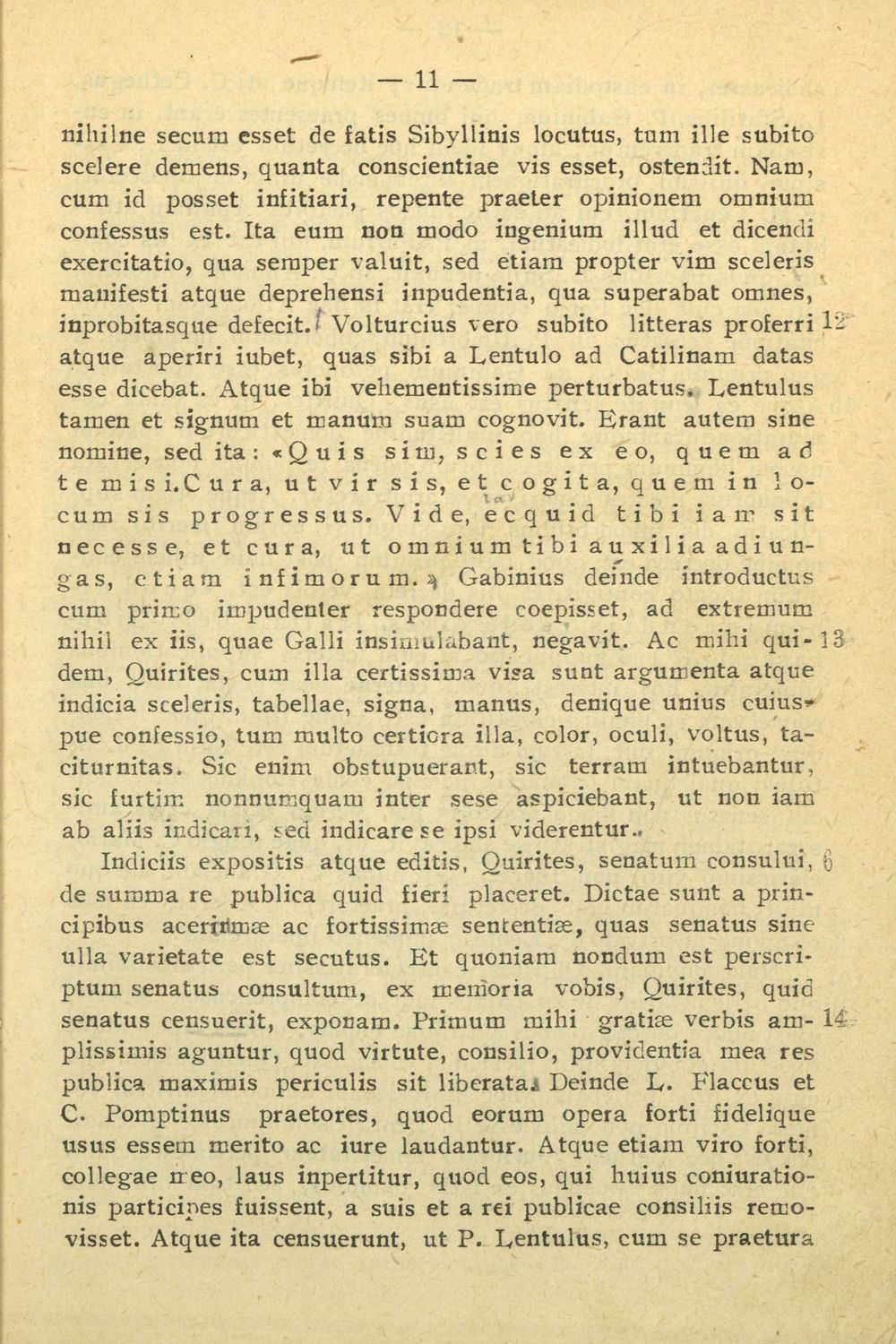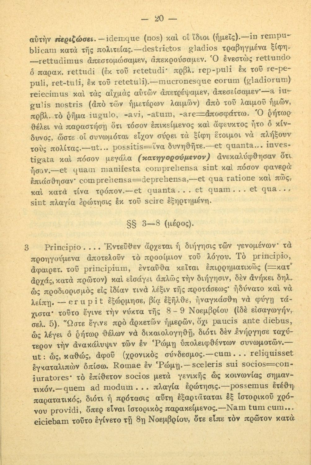 Σχολικό εγχειρίδιο Λατινικών Γ΄ Γυμνασίου που περιλαμβάνει την εισαγωγή στο έργο και τη ζωή του Κικέρωνα, το λατινικό κείμενο του Τρίτου Λόγου κατά Κατιλίνα και ερμηνευτικά, γραμματικά και πραγματολογικά σχόλια.
