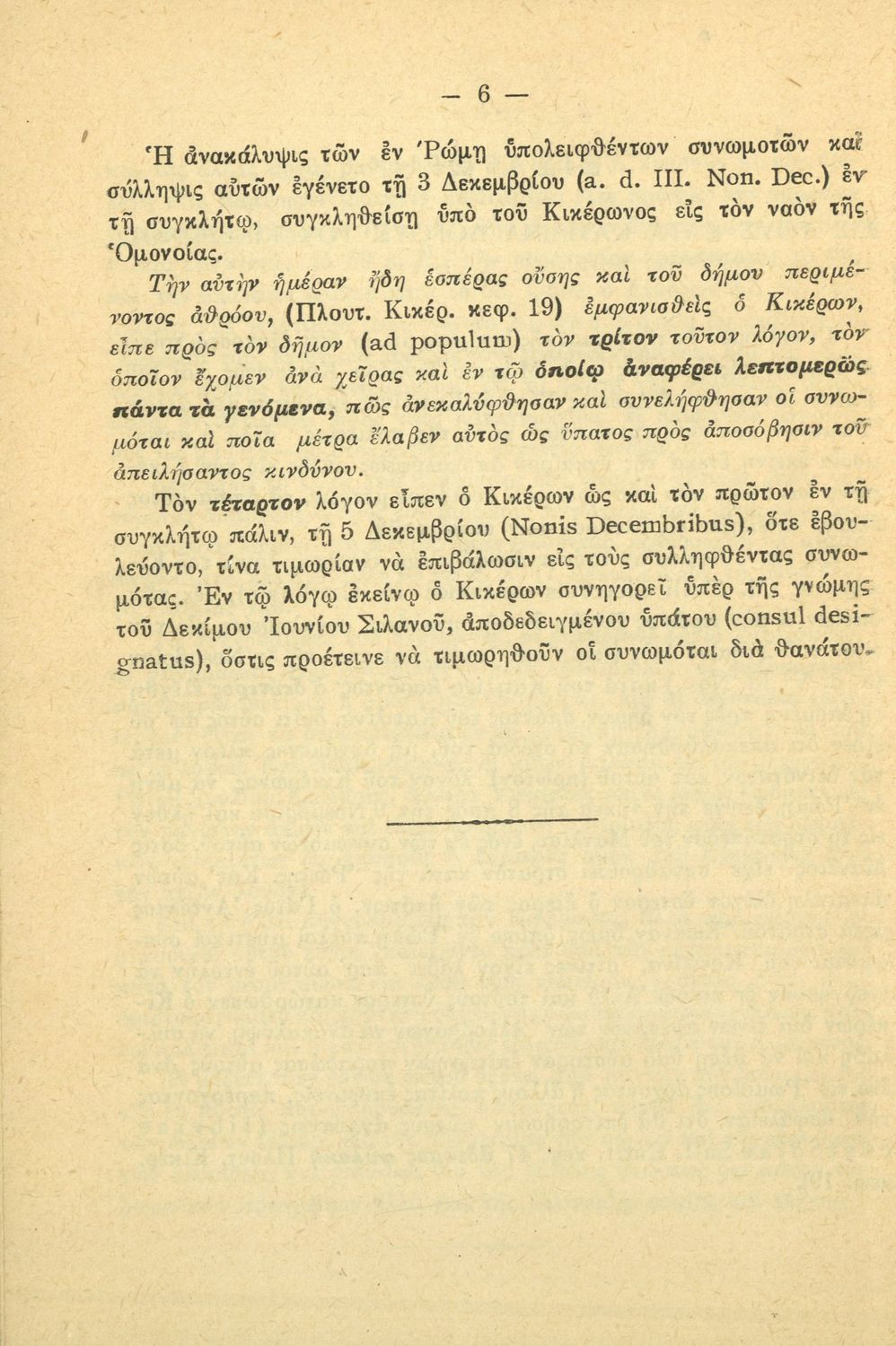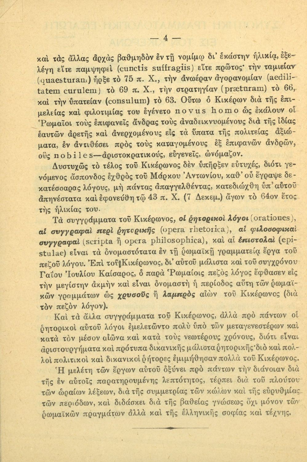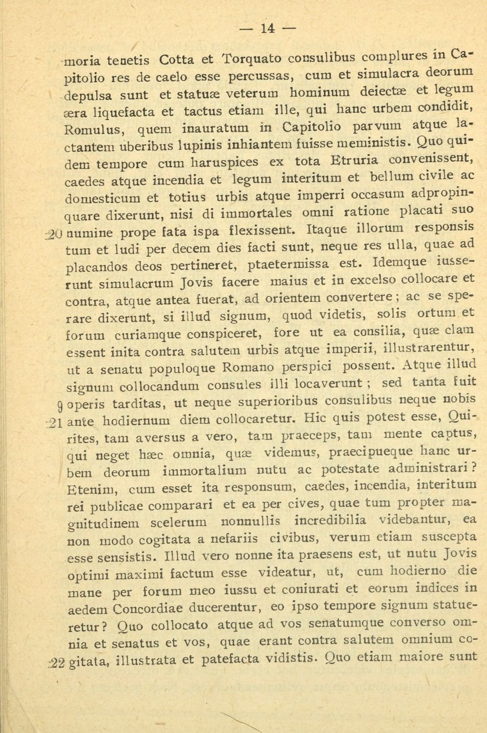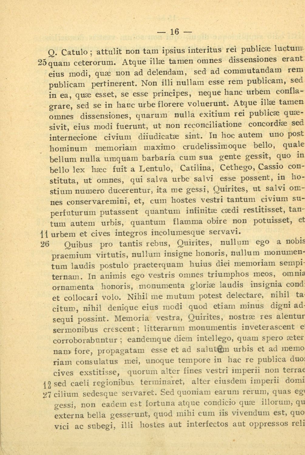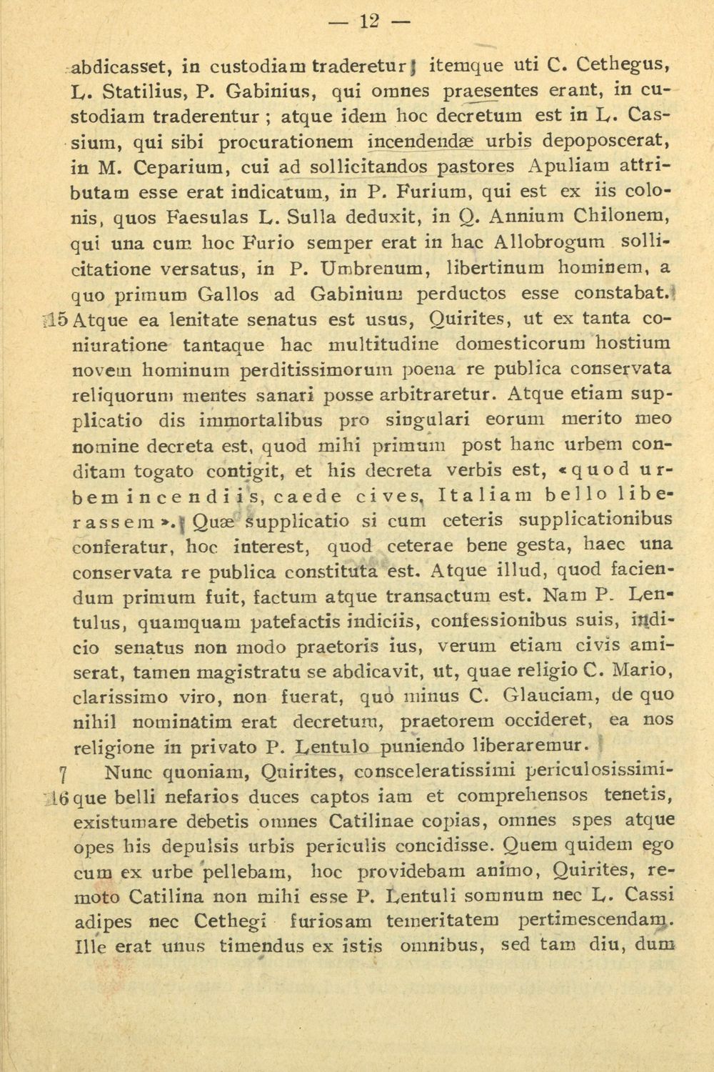 Σχολικό εγχειρίδιο Λατινικών Γ΄ Γυμνασίου που περιλαμβάνει την εισαγωγή στο έργο και τη ζωή του Κικέρωνα, το λατινικό κείμενο του Τρίτου Λόγου κατά Κατιλίνα και ερμηνευτικά, γραμματικά και πραγματολογικά σχόλια.