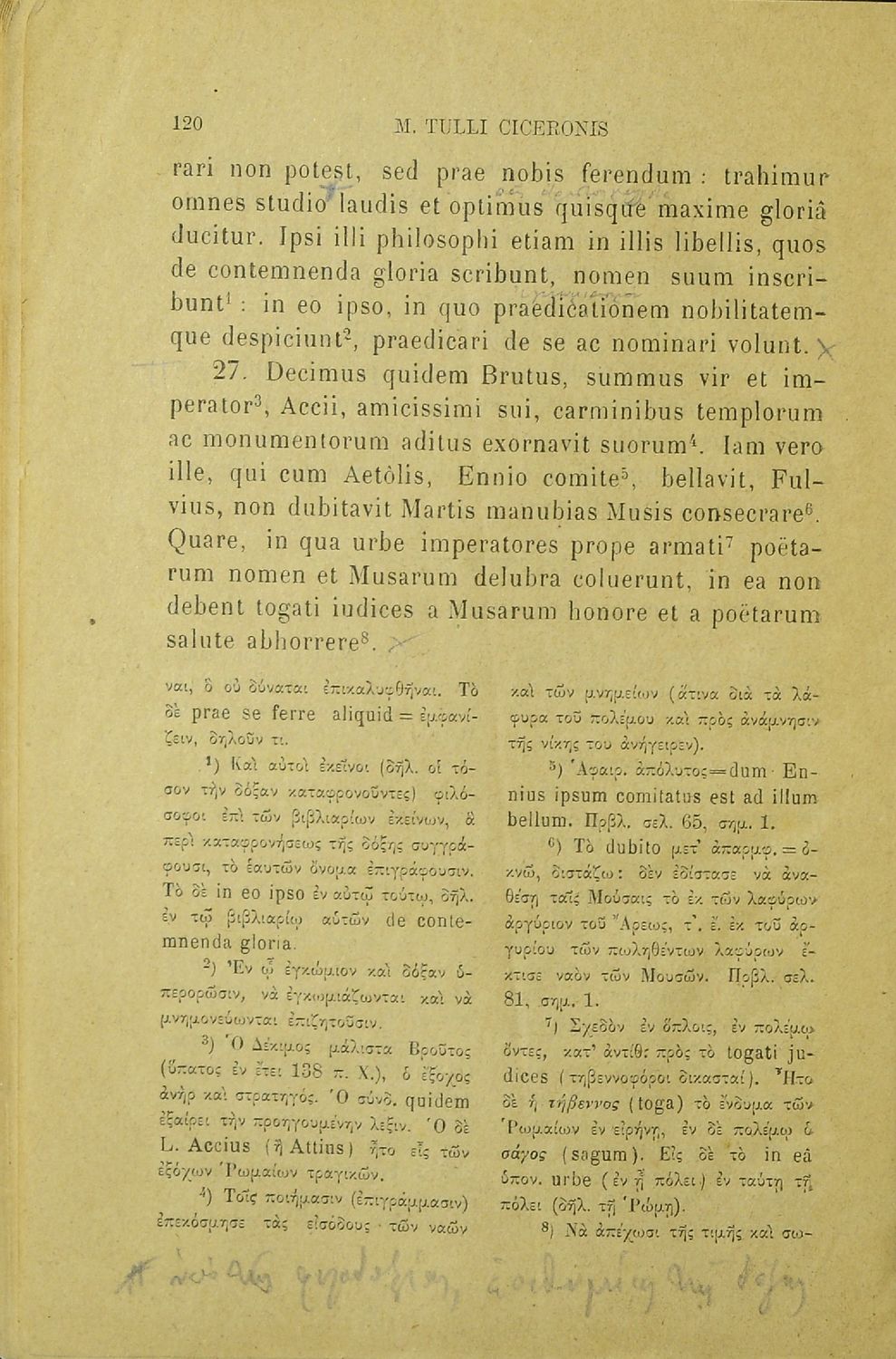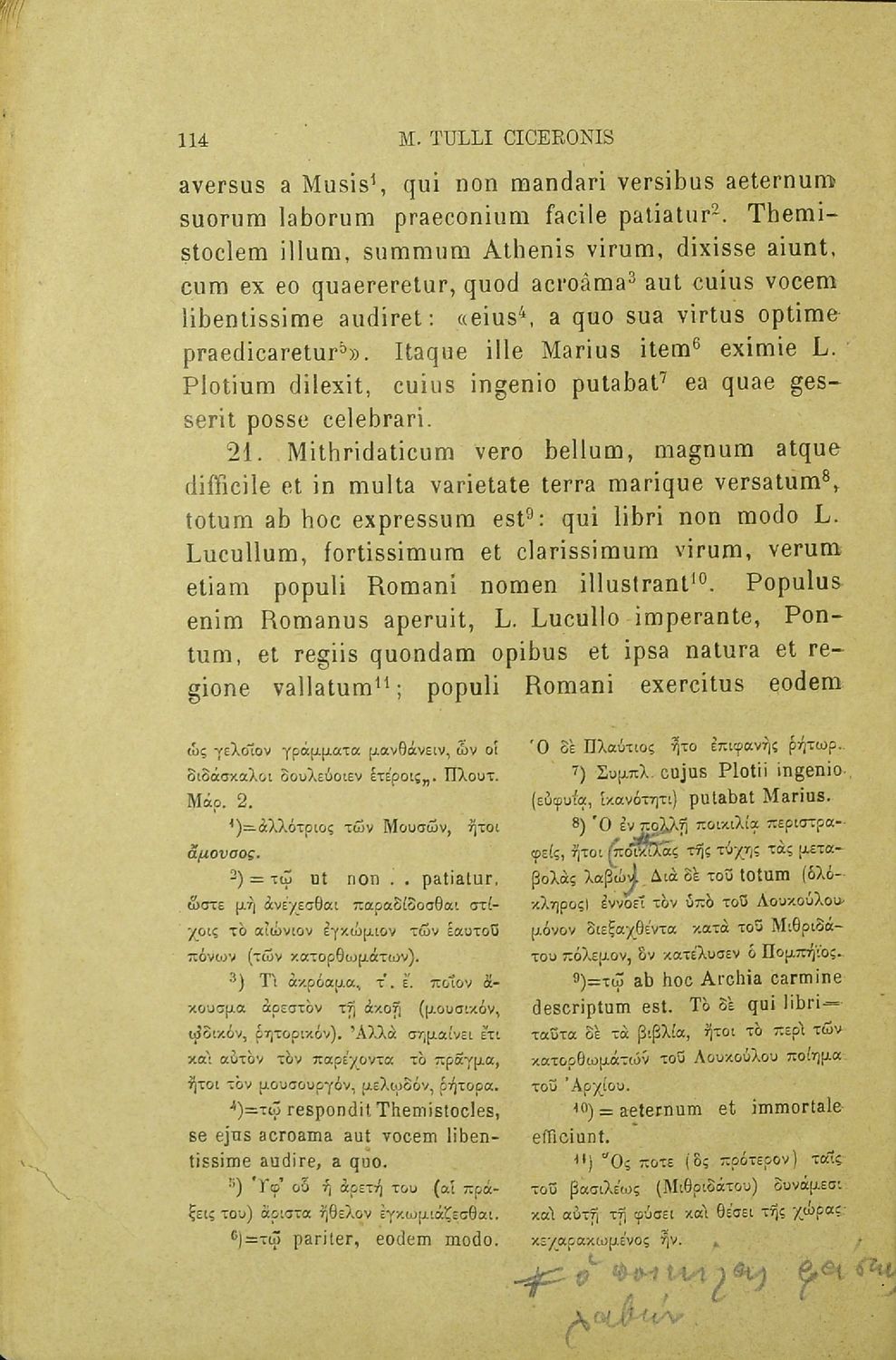 520 ## _aΣχολικό εγχειρίδιο Λατινικών που περιλαμβάνει τους Λόγους του Κικέρωνα Oratio pro lege Manilia de imperio Cn. Pompei, Oratio pro Archia poeta, εισαγωγικά σχόλια στη ζωή και το έργο του, και ερμηνευτικά, γραμματικά και πραγματολογικά σχόλια.