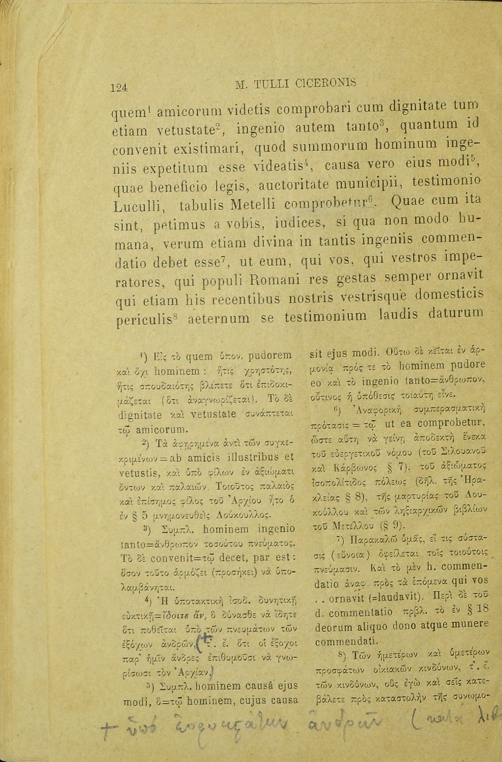 Σχολικό εγχειρίδιο Λατινικών που περιλαμβάνει τους Λόγους του Κικέρωνα Oratio pro lege Manilia de imperio Cn. Pompei, Oratio pro Archia poeta, εισαγωγικά σχόλια στη ζωή και το έργο του, και ερμηνευτικά, γραμματικά και πραγματολογικά σχόλια.