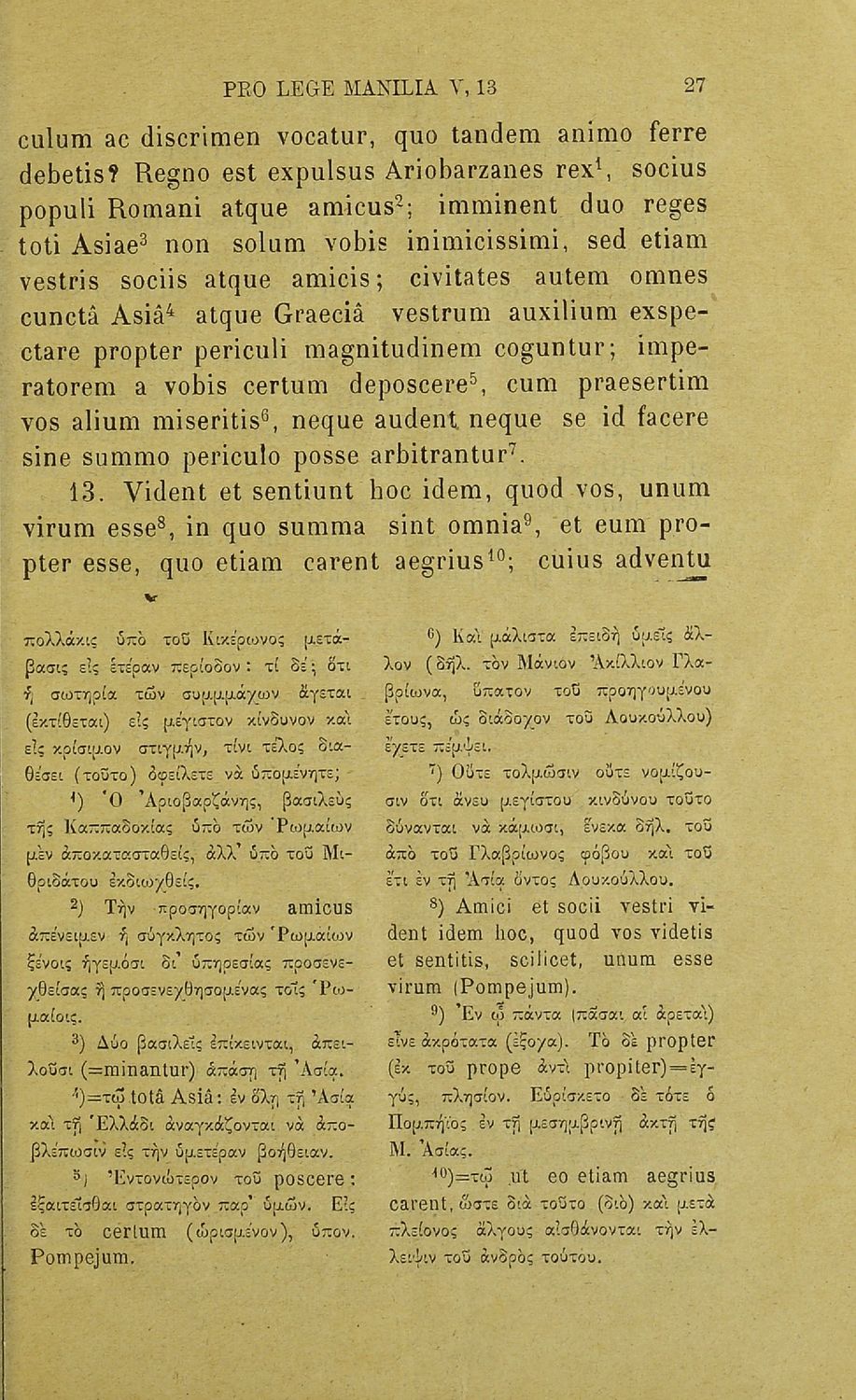 Μ. Τ. Κικέρωνος Λόγοι Oratio pro lege Manilia de imperio Cn. Pompei, Oratio pro Archia poeta
