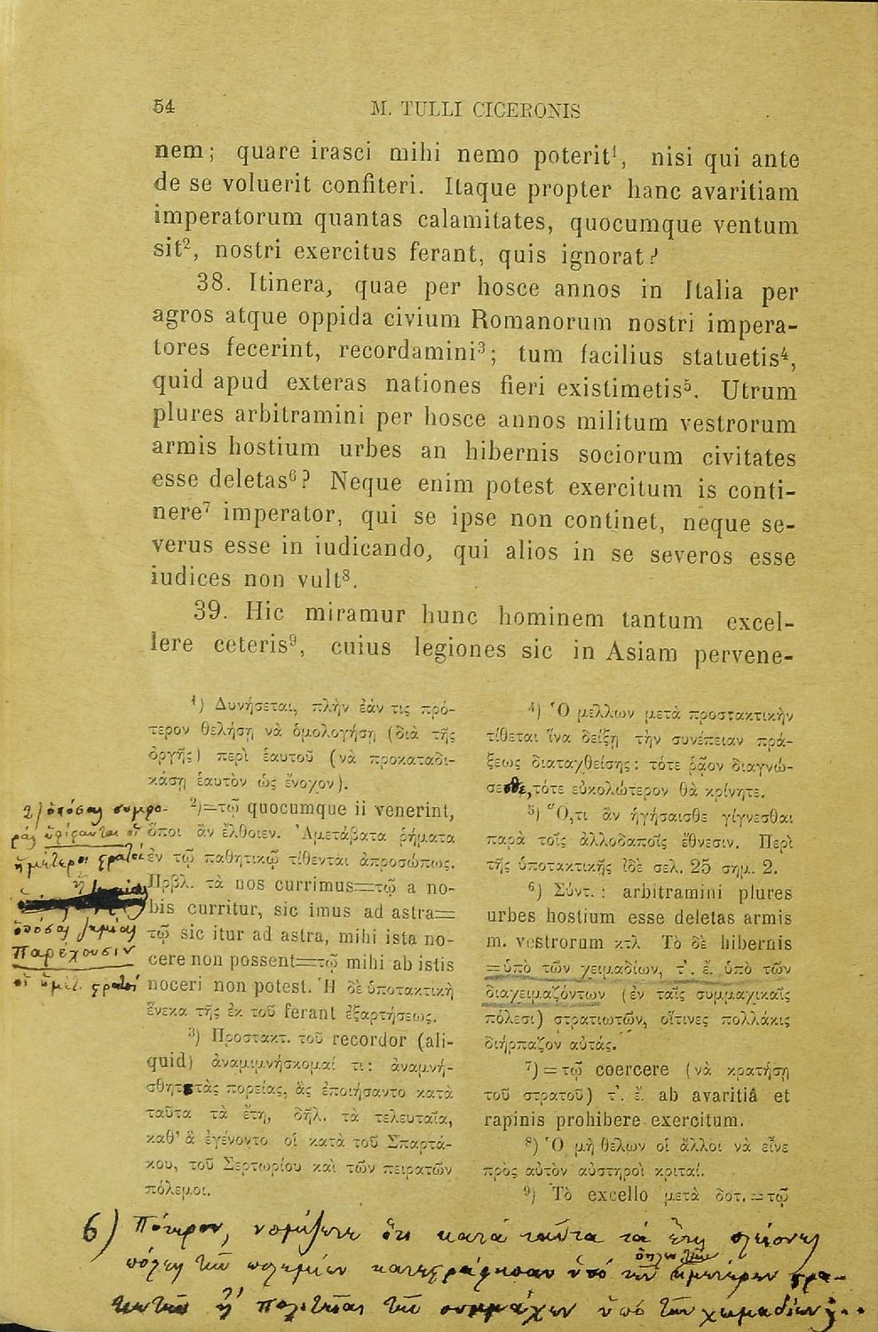 Σχολικό εγχειρίδιο Λατινικών που περιλαμβάνει τους Λόγους του Κικέρωνα Oratio pro lege Manilia de imperio Cn. Pompei, Oratio pro Archia poeta, εισαγωγικά σχόλια στη ζωή και το έργο του, και ερμηνευτικά, γραμματικά και πραγματολογικά σχόλια.