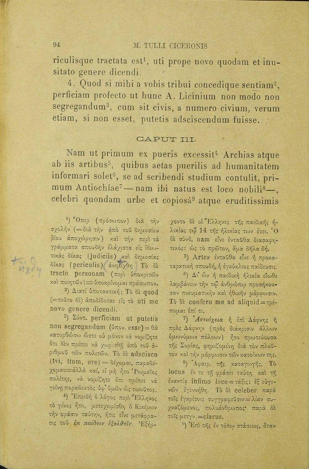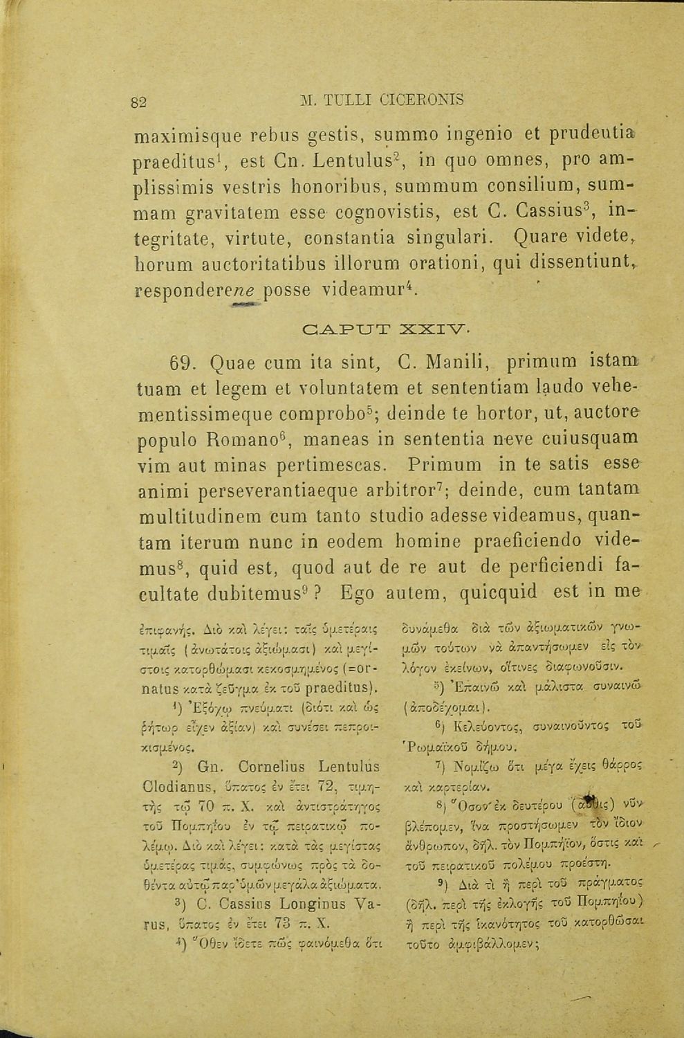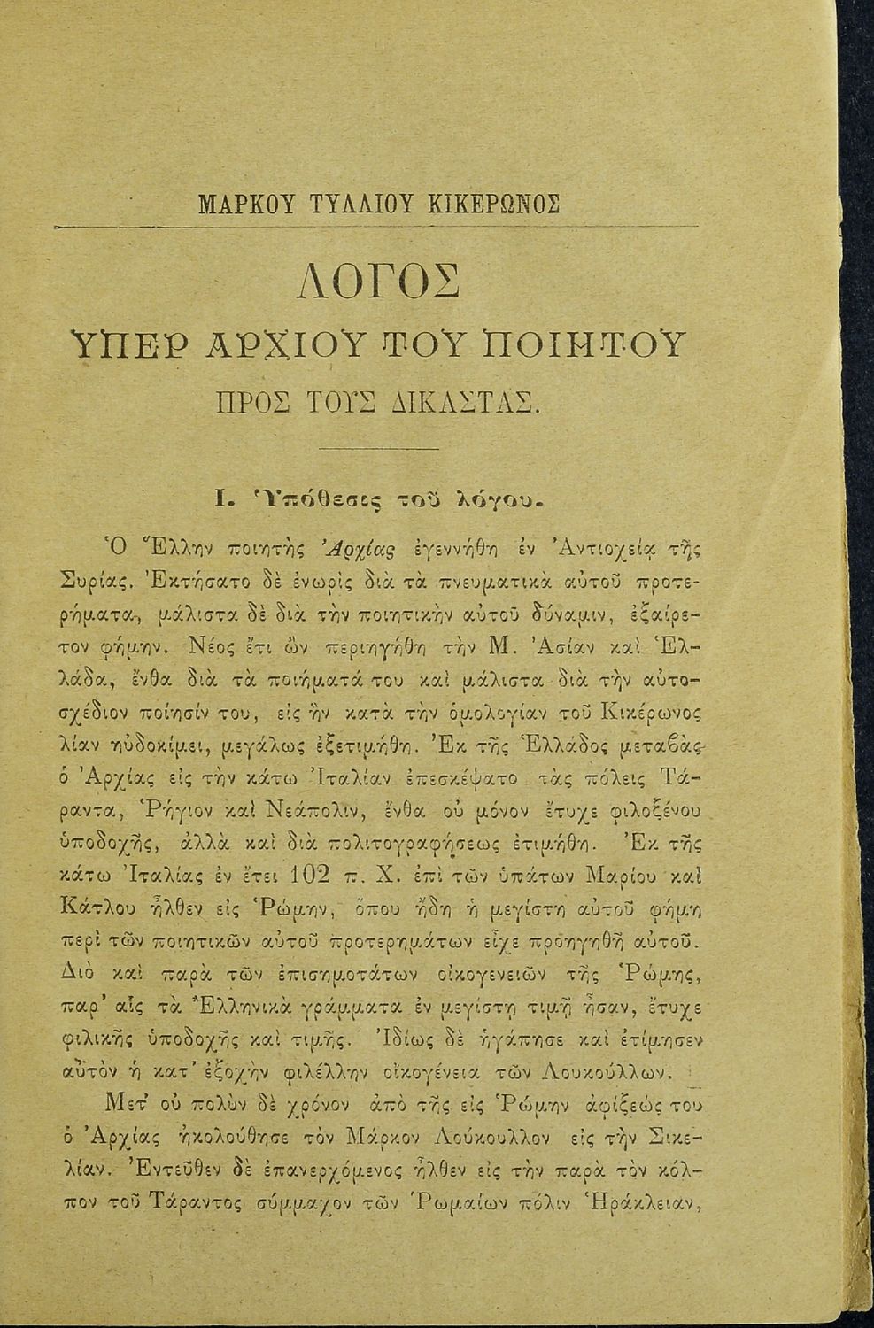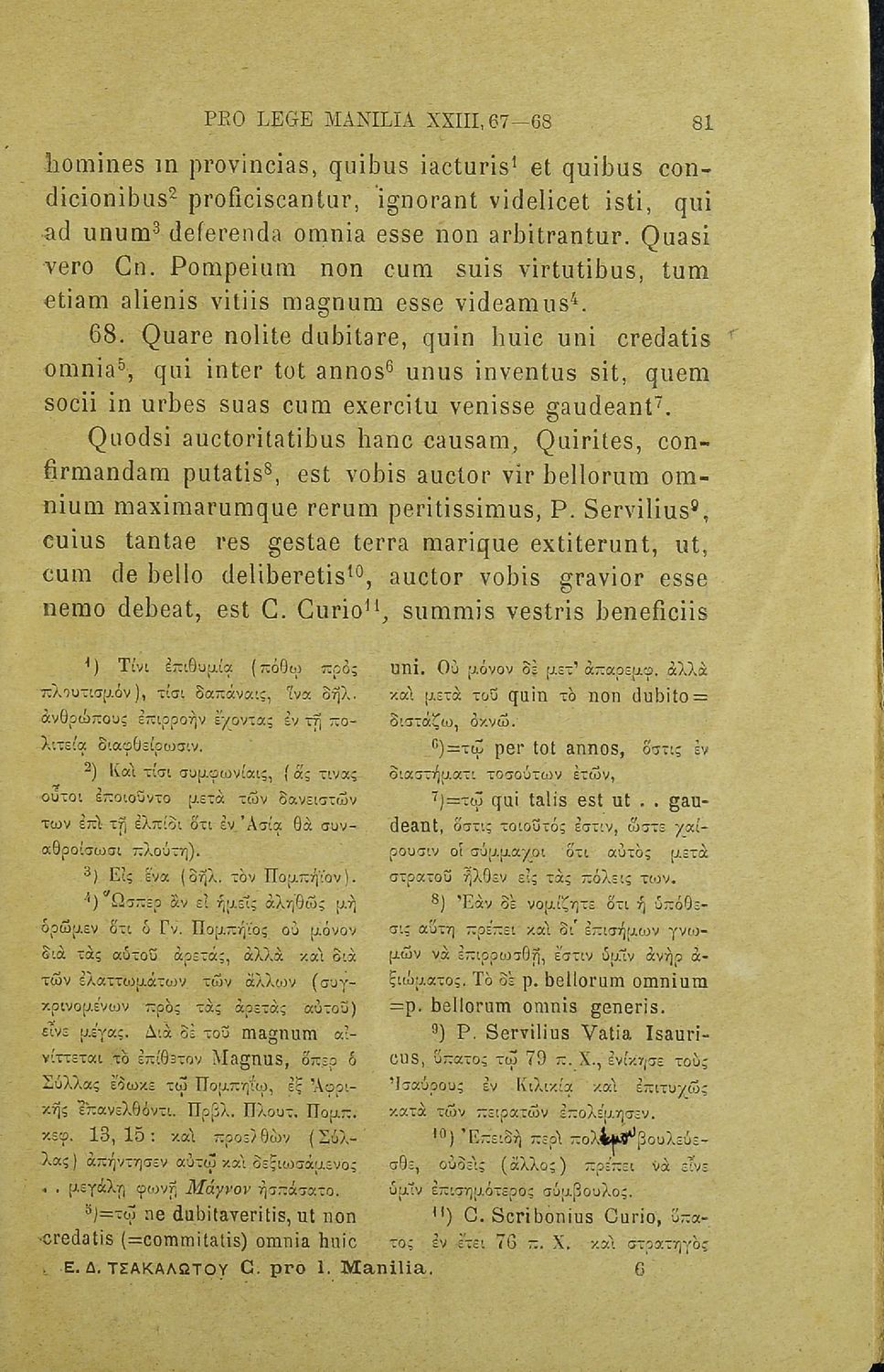 Σχολικό εγχειρίδιο Λατινικών που περιλαμβάνει τους Λόγους του Κικέρωνα Oratio pro lege Manilia de imperio Cn. Pompei, Oratio pro Archia poeta, εισαγωγικά σχόλια στη ζωή και το έργο του, και ερμηνευτικά, γραμματικά και πραγματολογικά σχόλια.