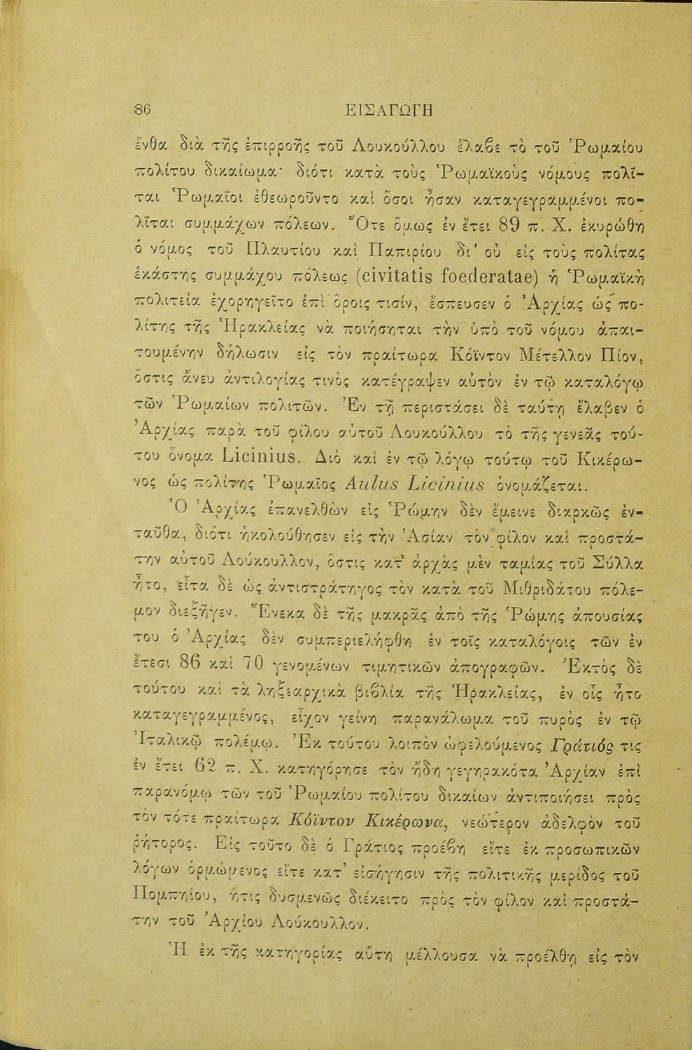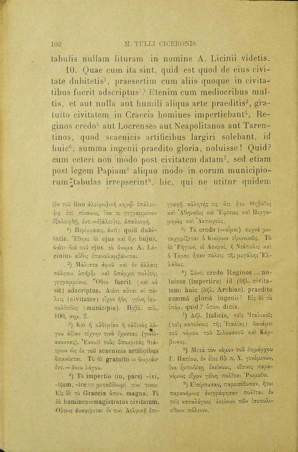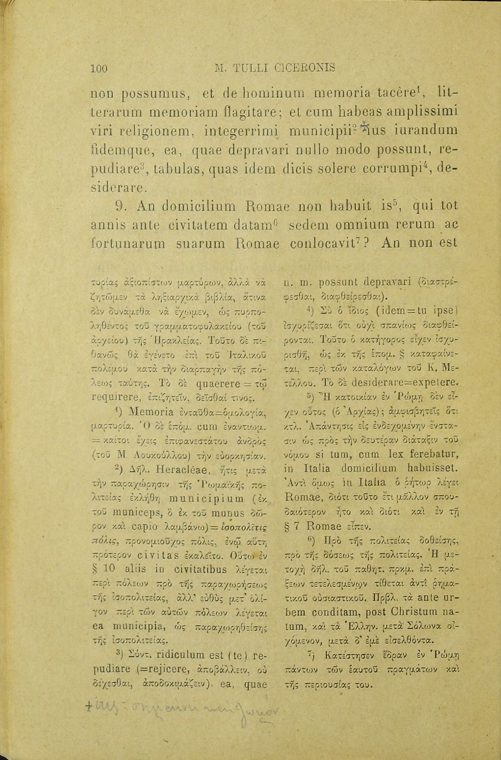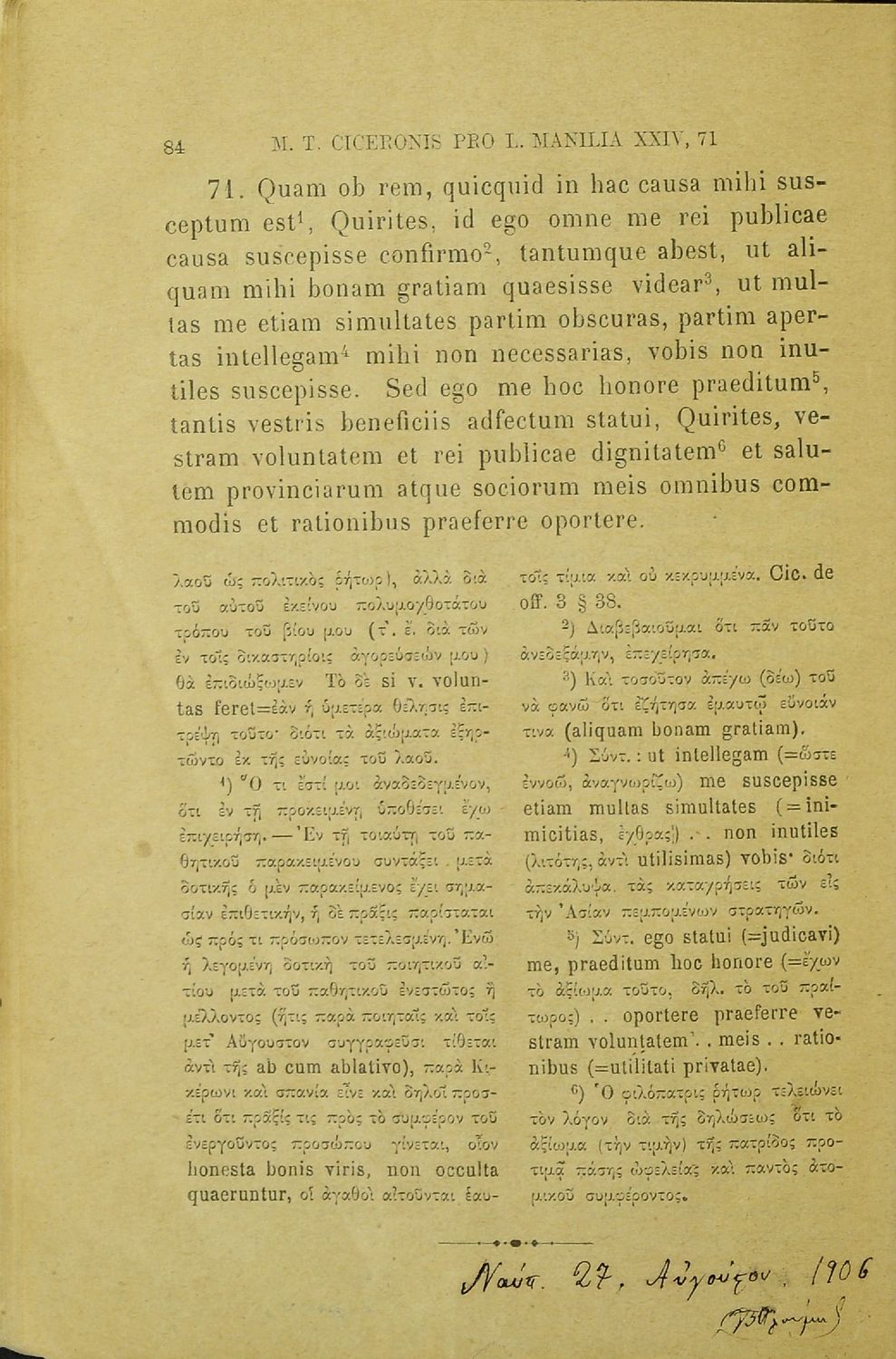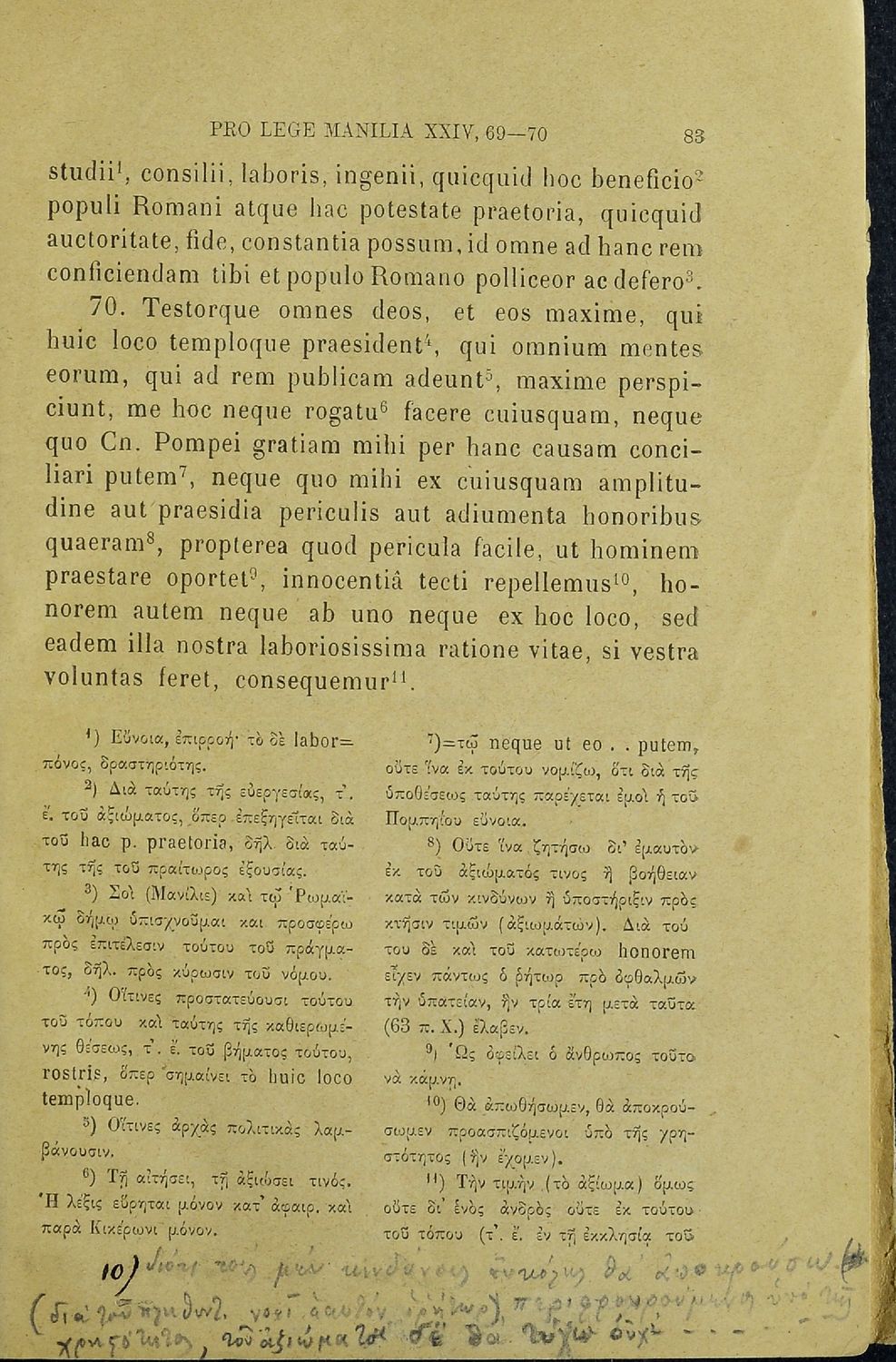 Σχολικό εγχειρίδιο Λατινικών που περιλαμβάνει τους Λόγους του Κικέρωνα Oratio pro lege Manilia de imperio Cn. Pompei, Oratio pro Archia poeta, εισαγωγικά σχόλια στη ζωή και το έργο του, και ερμηνευτικά, γραμματικά και πραγματολογικά σχόλια.