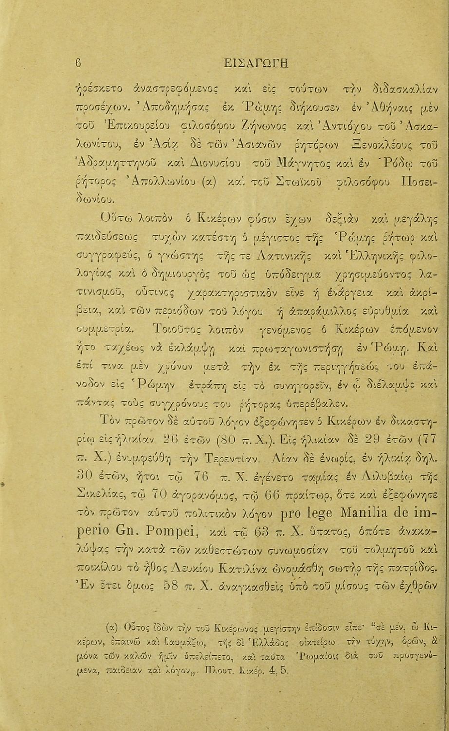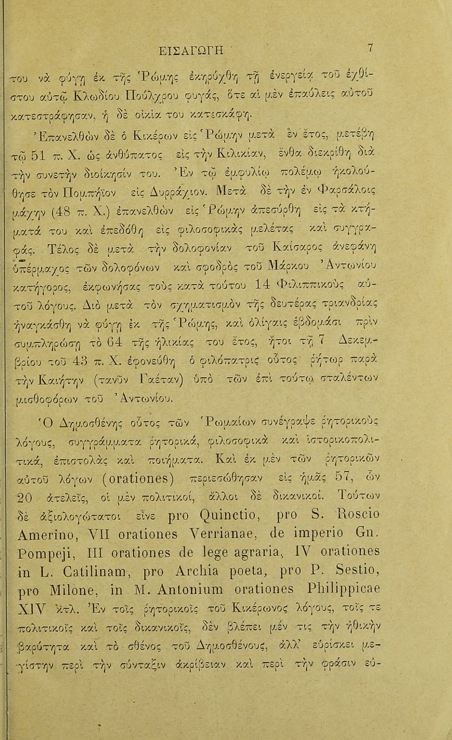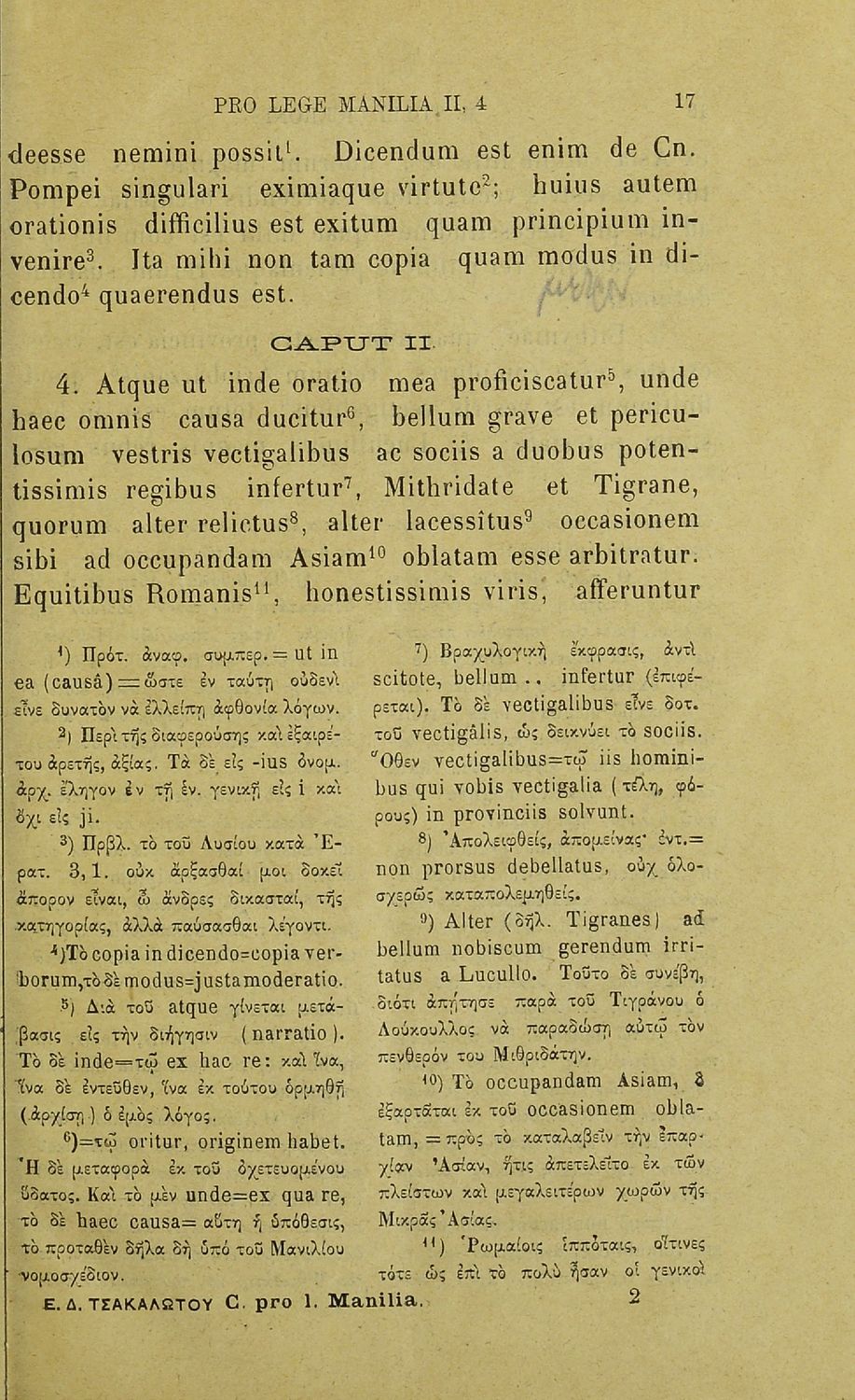 Σχολικό εγχειρίδιο Λατινικών που περιλαμβάνει τους Λόγους του Κικέρωνα Oratio pro lege Manilia de imperio Cn. Pompei, Oratio pro Archia poeta, εισαγωγικά σχόλια στη ζωή και το έργο του, και ερμηνευτικά, γραμματικά και πραγματολογικά σχόλια.