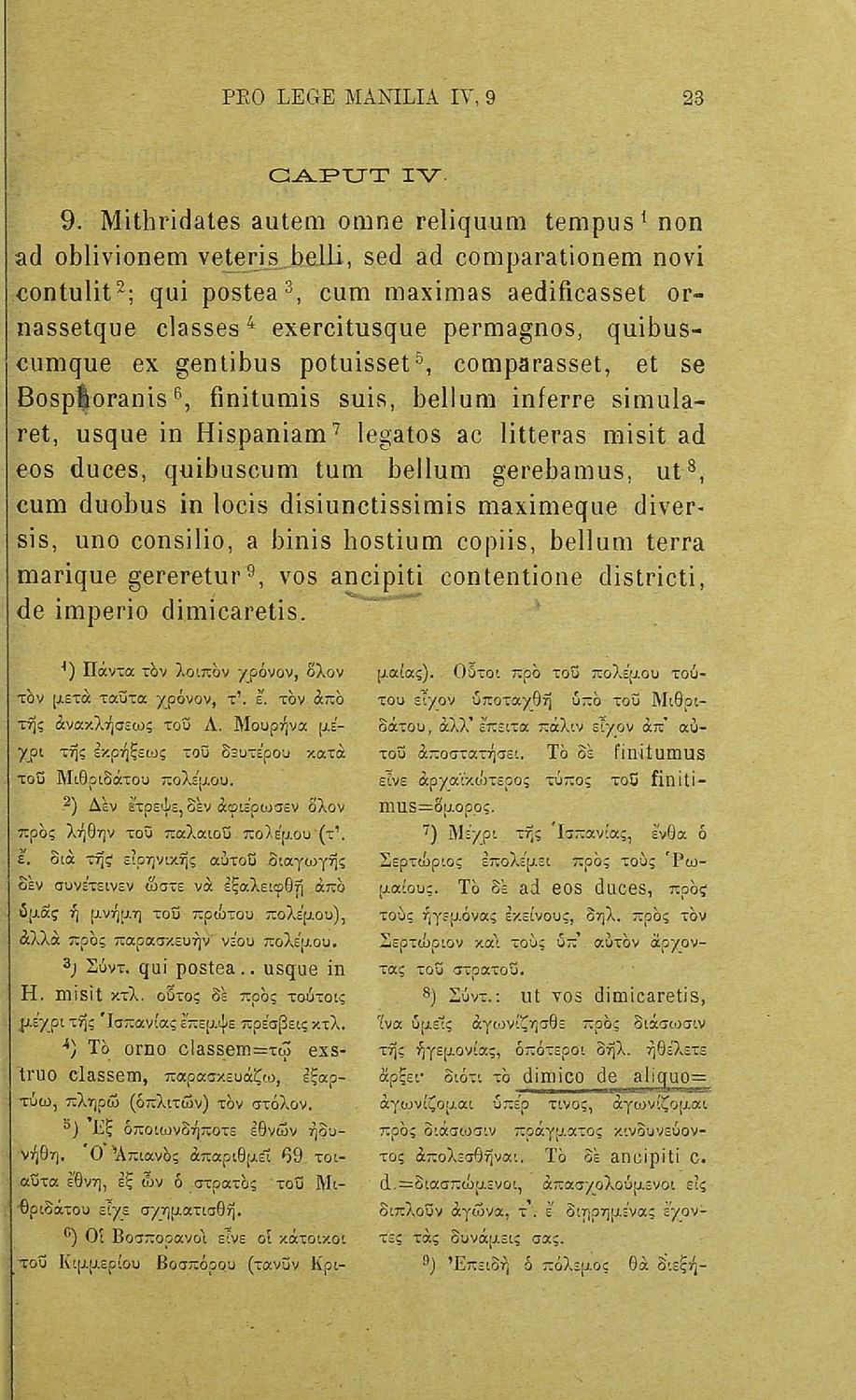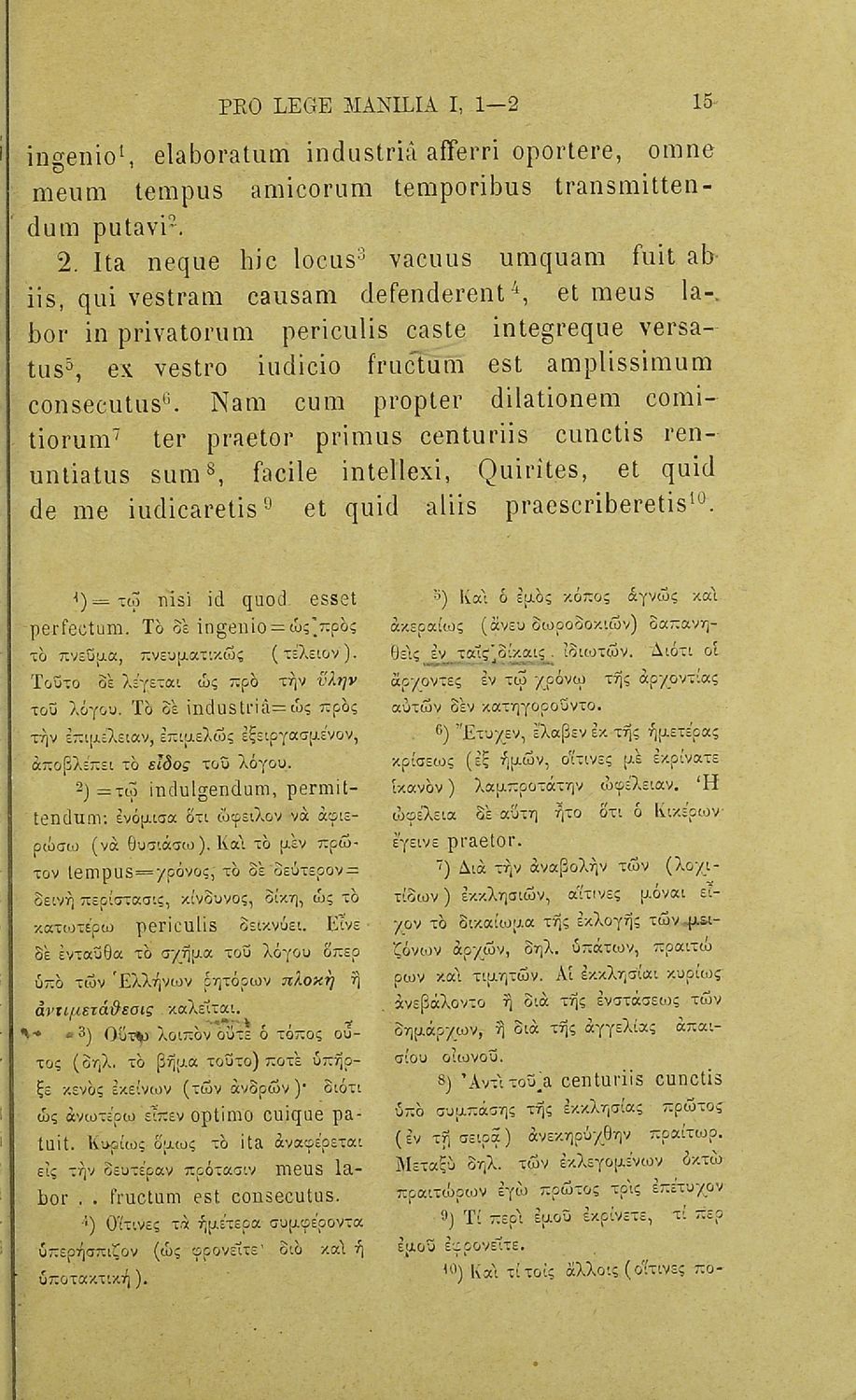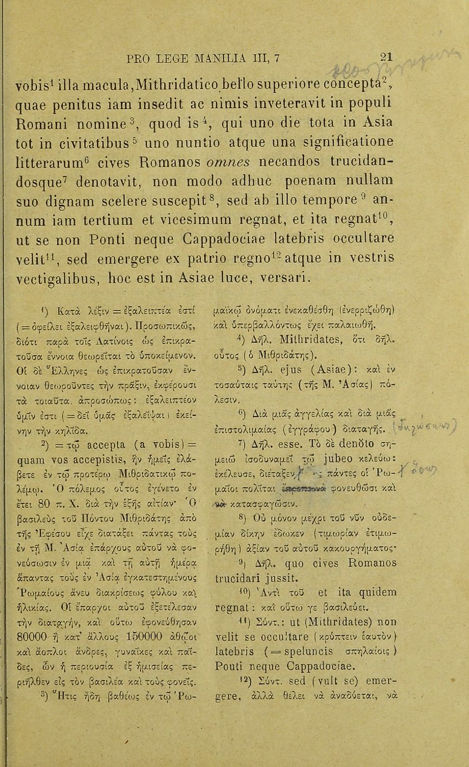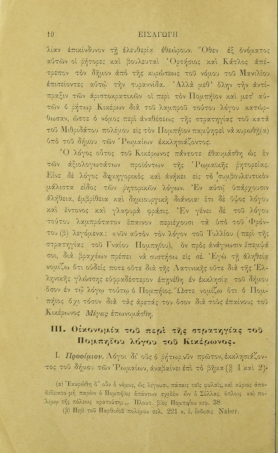 Σχολικό εγχειρίδιο Λατινικών που περιλαμβάνει τους Λόγους του Κικέρωνα Oratio pro lege Manilia de imperio Cn. Pompei, Oratio pro Archia poeta, εισαγωγικά σχόλια στη ζωή και το έργο του, και ερμηνευτικά, γραμματικά και πραγματολογικά σχόλια.