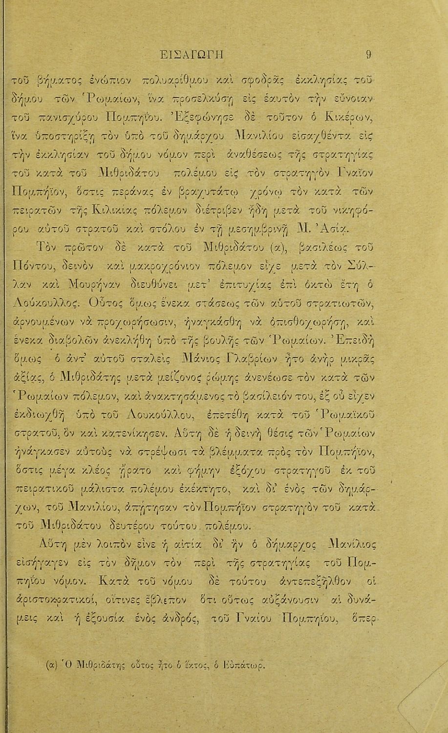 LDR 01139 2200181 4500 035 ## _a20-01134 040 ## _aΚΕΝΕΚ - Εταιρεία Σπουδών Νεοελληνικού Πολιτισμού και Παιδείας 041 ## _ael 100 ## _aΜάρκος Τύλλιος Κικέρωνας (M. Tullius Cicero) _aΕυστράτιος Δ. Τσακαλώτος (επιμ.) 110 ## _a1134 245 0# _aΜ. Τ. Κικέρωνος Λόγοι Oratio pro lege Manilia de imperio Cn. Pompei, Oratio pro Archia poeta 260 ## _aΑθήνα _c1893 300 ## _a128 _c19 520 ## _aΣχολικό εγχειρίδιο Λατινικών που περιλαμβάνει τους Λόγους του Κικέρωνα Oratio pro lege Manilia de imperio Cn. Pompei, Oratio pro Archia poeta, εισαγωγικά σχόλια στη ζωή και το έργο του, και ερμηνευτικά, γραμματικά και πραγματολογικά σχόλια. 522 ## _aΕλλάδα 546 ## _aΚαθαρεύουσα 563 ## _aΜαλακό Εξώφυλλο 650 #4 _aAulus Licinius Archias _aΜιθριδάτες _aΠομπήιος