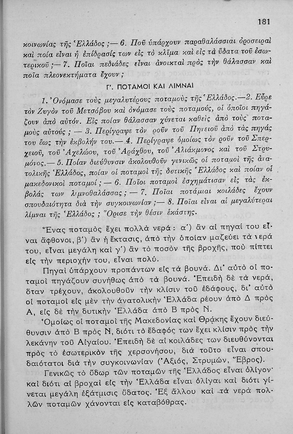 Βαθμίδα εκπαίδευσης: Δευτεροβάθμια Τάξη: Α' Γυμνασίου Μάθημα: Γεωγραφία Γλώσσα: Απλή καθαρεύουσα Παρουσίαση περιεχομένου: Σχολικό εγχειρίδιο Γεωγραφίας Α' Γυμνασίου που εξετάζει την Ελλάδα ανά διαμέρισμα και νομό από γεωφυσική, οικονομική και πολιτική άποψη. |