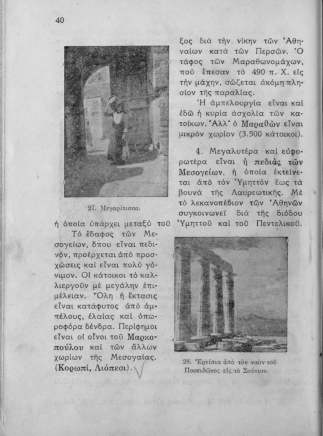Κωδικός αναγνώρισης: 20-01261 Τίτλος: Γεωγραφία της Ελλάδος διά την Α΄ τάξιν των Γυμνασίων Συγγραφέας: Γεώργιος Α. Μέγας Εικονογράφος: Αλέξανδρος Φαλτάϊτς Μέγεθος και υπόστρωμα: Σχολικό εγχειρίδιο, 19εκ., μαλακό εξώφυλλο, 222 σελίδες. Σκίτσα (ασπρόμαυρα). |