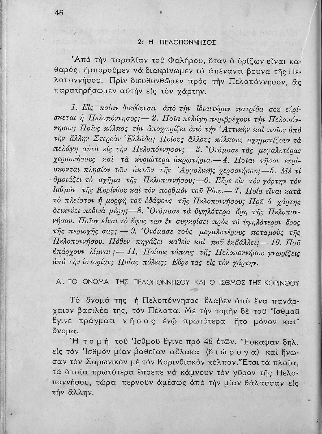 Σχολικό εγχειρίδιο Γεωγραφίας Α' Γυμνασίου που εξετάζει την Ελλάδα ανά διαμέρισμα και νομό από γεωφυσική, οικονομική και πολιτική άποψη.
