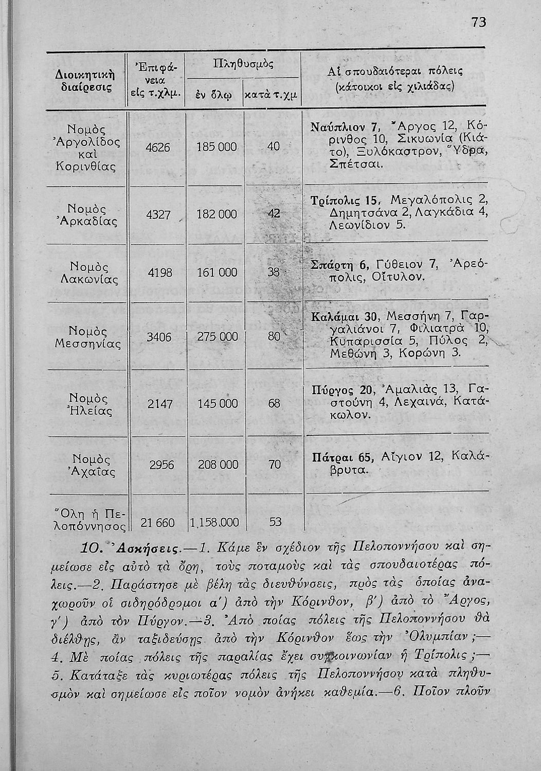 Σχολικό εγχειρίδιο Γεωγραφίας Α' Γυμνασίου που εξετάζει την Ελλάδα ανά διαμέρισμα και νομό από γεωφυσική, οικονομική και πολιτική άποψη.