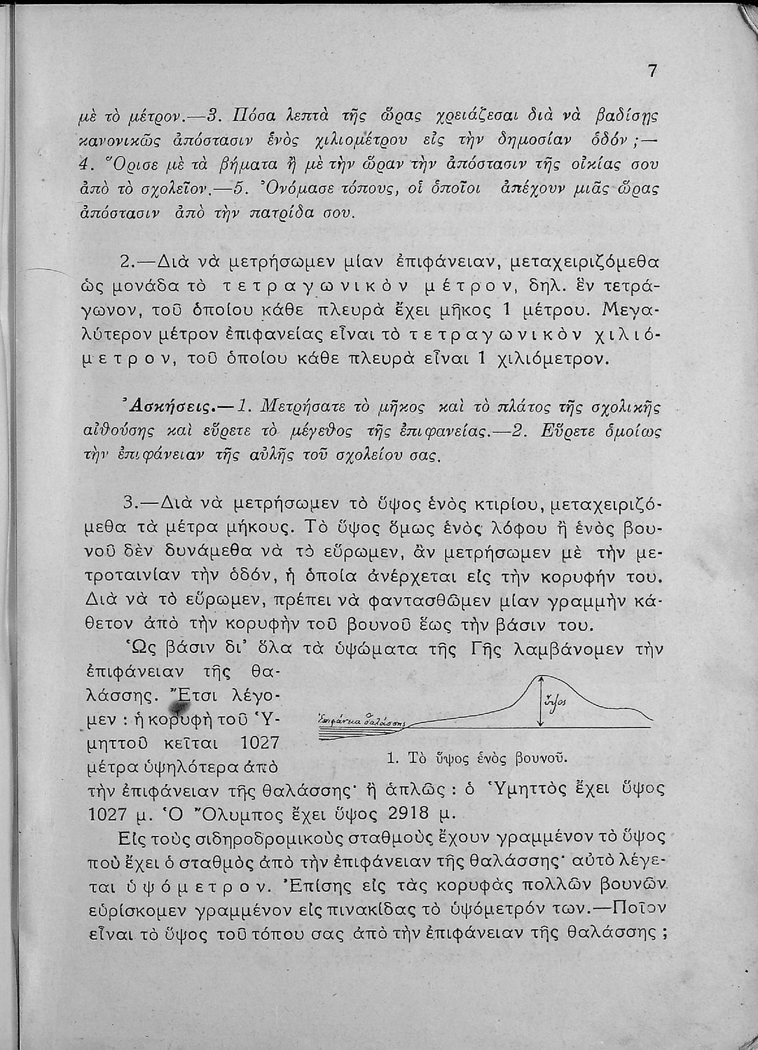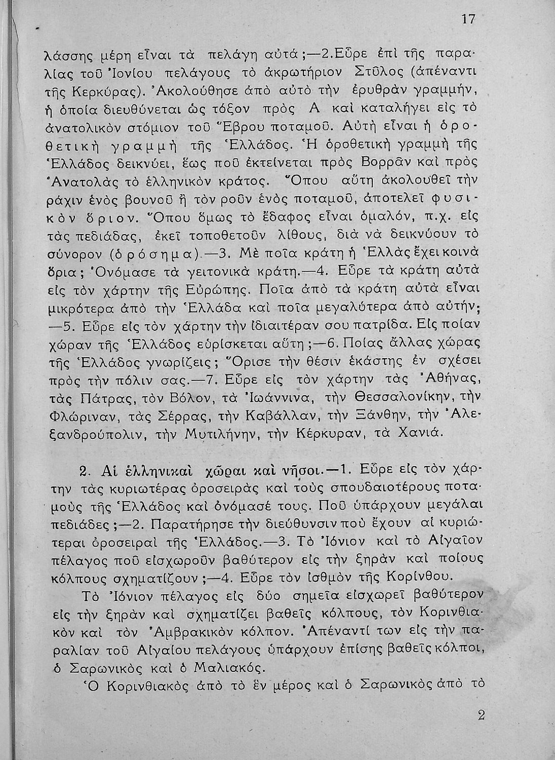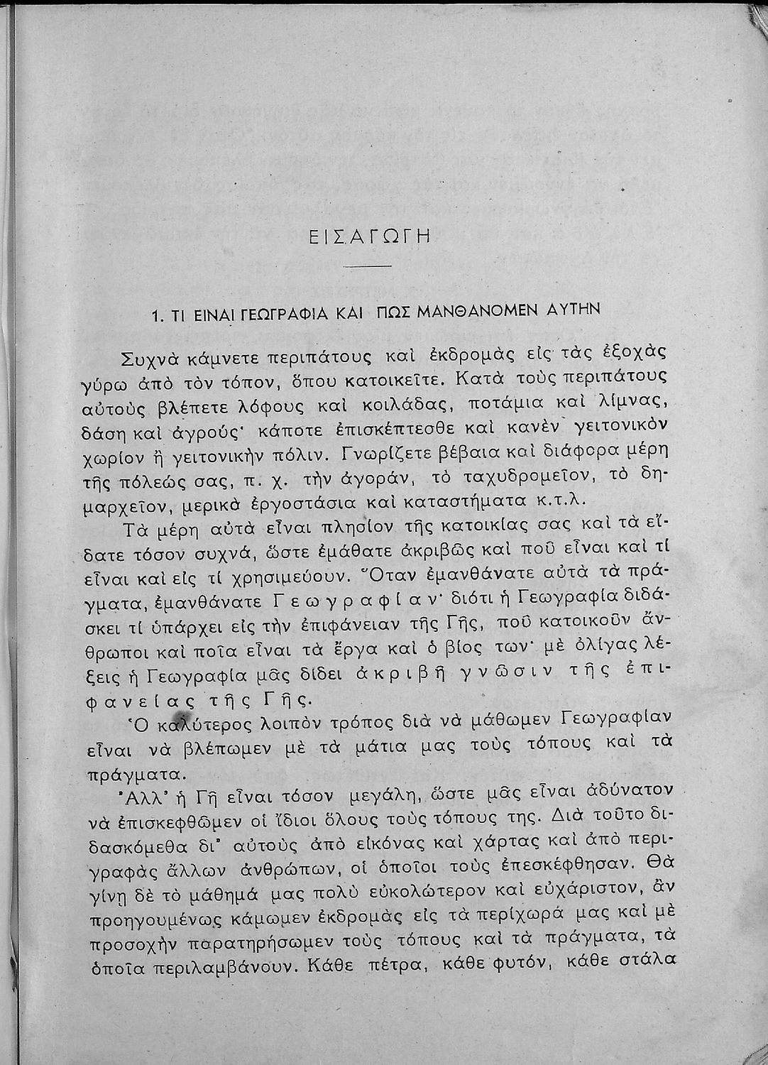 Βαθμίδα εκπαίδευσης: Δευτεροβάθμια Τάξη: Α' Γυμνασίου Μάθημα: Γεωγραφία Γλώσσα: Απλή καθαρεύουσα Παρουσίαση περιεχομένου: Σχολικό εγχειρίδιο Γεωγραφίας Α' Γυμνασίου που εξετάζει την Ελλάδα ανά διαμέρισμα και νομό από γεωφυσική, οικονομική και πολιτική άποψη. |