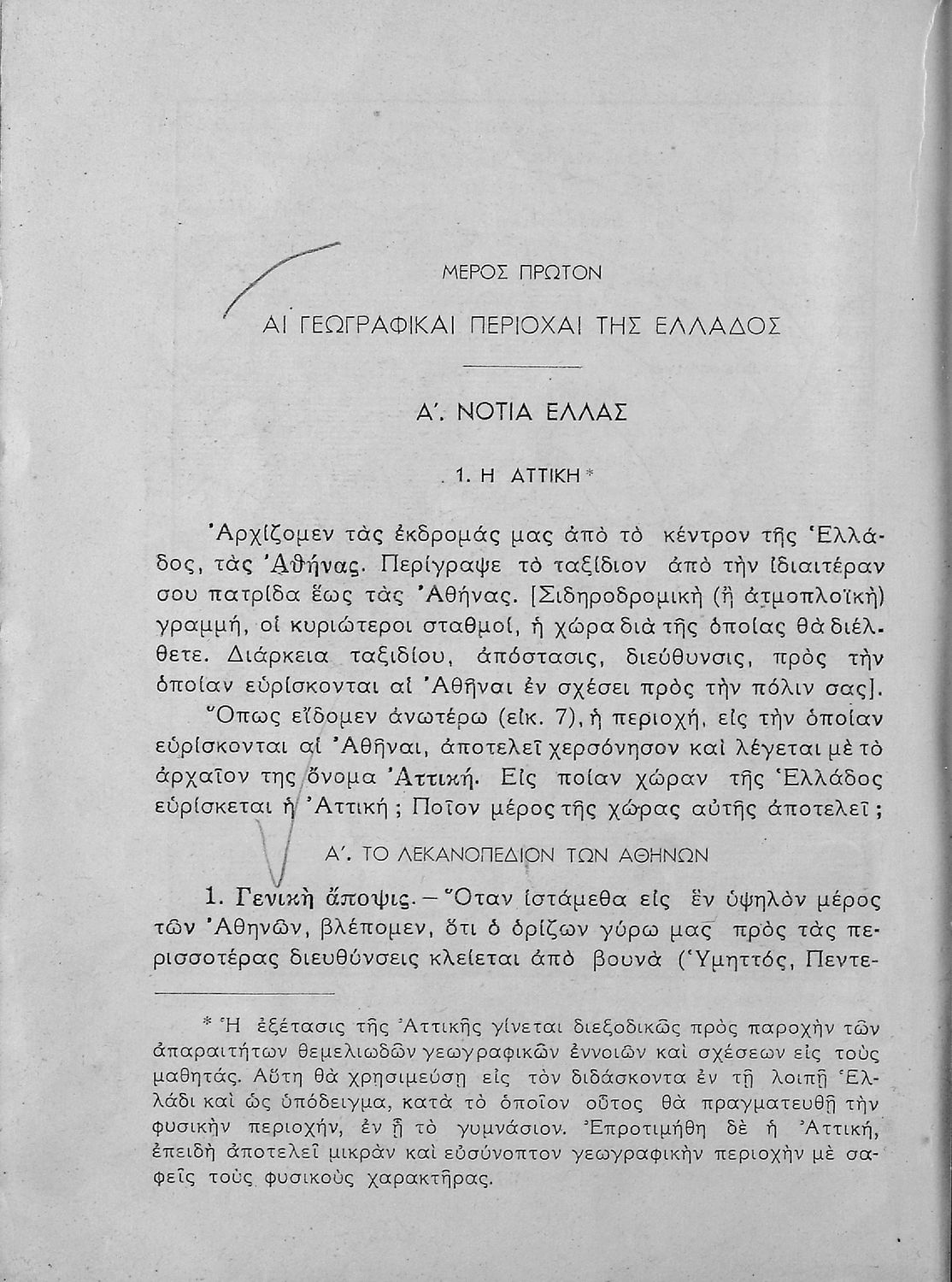 Σχολικό εγχειρίδιο Γεωγραφίας Α' Γυμνασίου που εξετάζει την Ελλάδα ανά διαμέρισμα και νομό από γεωφυσική, οικονομική και πολιτική άποψη.