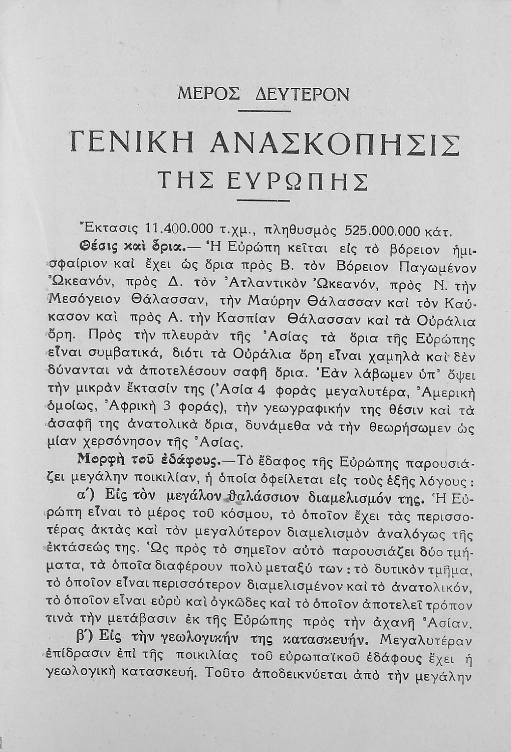 Γεωγραφία της Ευρώπης διά την Β΄ τάξιν των Οκταταξίων Γυμνασίων, Πενταταξίων Προγυμνασίων και Αστικών Σχολείων