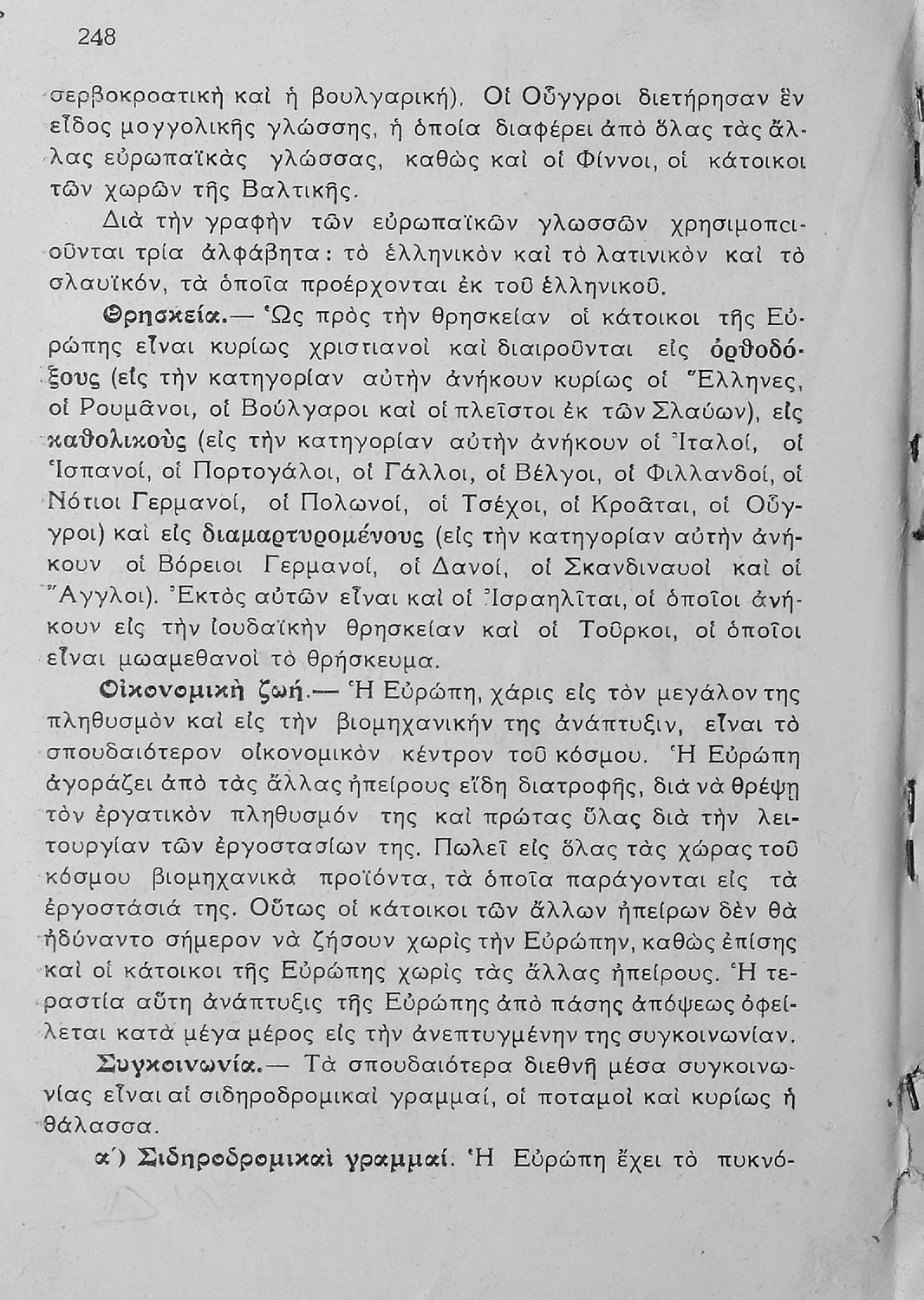 Γεωγραφία της Ευρώπης διά την Β΄ τάξιν των Οκταταξίων Γυμνασίων, Πενταταξίων Προγυμνασίων και Αστικών Σχολείων