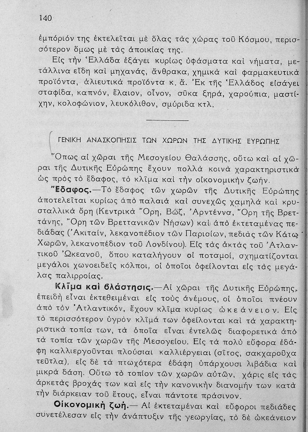 LDR 01068 2200193 4500 035 ## _a20-01263 040 ## _aΚΕΝΕΚ - Εταιρεία Σπουδών Νεοελληνικού Πολιτισμού και Παιδείας 041 ## _ael 100 ## _aΠ. Ι. Ηλιόπουλος 110 ## _a1263 245 0# _aΓεωγραφία της Ευρώπης δια την Β΄ τάξιν των Γυμνασίων 260 ## _aΑθήνα _bΟργανισμός Εκδόσεως Σχολικών Βιβλίων _c1947 300 ## _a248 _bΣκίτσα (ασπρόμαυρα) _c18 520 ## _aΣχολικό εγχειρίδιο Γεωγραφίας Β' Γυμνασίου που εξετάζει τις χώρες της Ευρώπης, πλην της Ελλάδας, από γεωμορφολογική, οικονομική και πολιτική άποψη. 521 ## _aΒ' Γυμνασίου 522 ## _aΕλλάδα 546 ## _aΚαθαρεύουσα 563 ## _aΜαλακό Εξώφυλλο 650 #4 _aΈδαφος _aΕμπόριο _aΚλίμα _aΣυγκοινωνίες