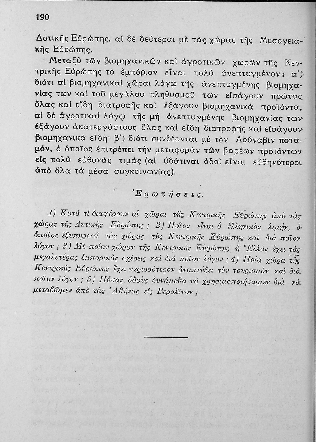Βαθμίδα εκπαίδευσης: Δευτεροβάθμια Τάξη: Β' Γυμνασίου Μάθημα: Γεωγραφία Γλώσσα: Καθαρεύουσα Παρουσίαση περιεχομένου: Σχολικό εγχειρίδιο Γεωγραφίας Β' Γυμνασίου που εξετάζει τις χώρες της Ευρώπης, πλην της Ελλάδας, από γεωμορφολογική, οικονομική και πολιτική άποψη. |