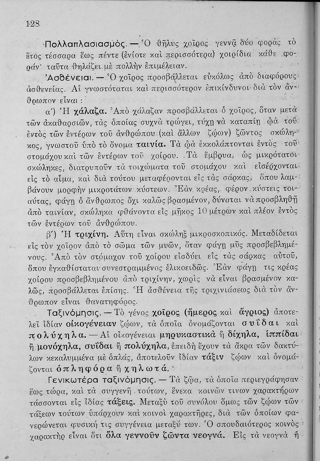 Παρουσίαση περιεχομένου: Σχολικό εγχειρίδιο Ζωολογίας/Φυτολογίας για τα Γυμνάσια και Αστικά Σχολεία που παρουσιάζει διάφορα ζώα και φυτά ανάλογα με τη συνομοταξία στην οποία ανήκουν.