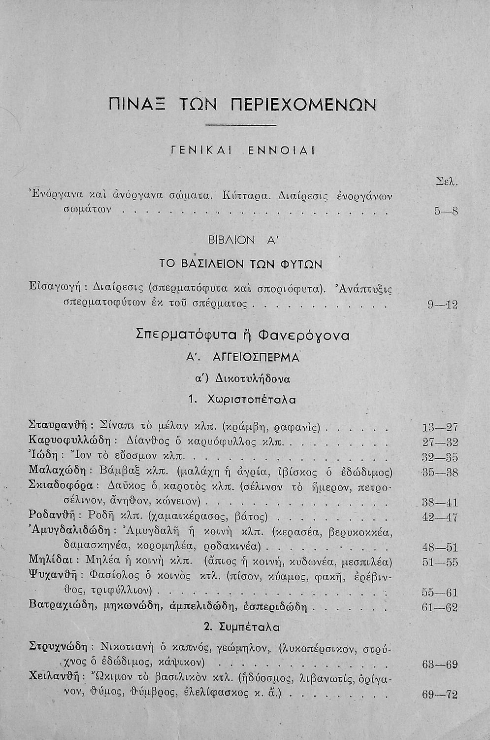 Σχολικό εγχειρίδιο Φυτολογίας για τη Γ΄ Γυμνασίου και τη Β΄ τάξη των Αστικών σχολείων που περιέχει πληροφορίες για τα φυτά της Ελλάδας καθώς και στοιχεία Ζωολογίας για ζώα διαφόρων τόπων. Σχέδια και ζωγραφιές ...