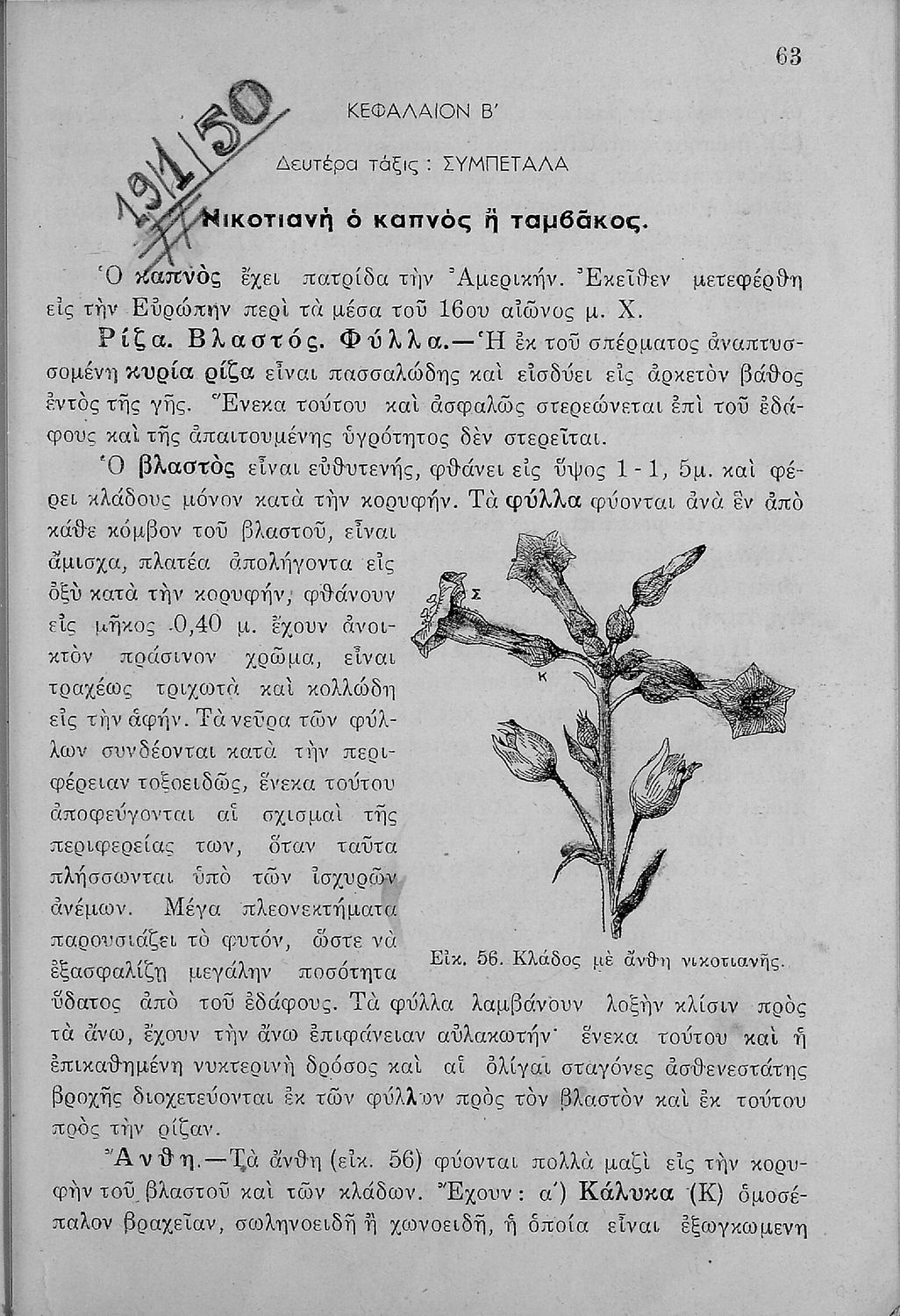 Κωδικός αναγνώρισης: 20-01284 Τίτλος: Στοιχεία φυτολογίας και ζωολογίας διά την Β΄ τάξιν των Γυμνασίων και την Α΄ τάξιν των Αστικών Σχολείων Συγγραφέας: Παναγιώτης Γ. Τσιλήθρας Μέγεθος και υπόστρωμα: Σχολικό εγχειρίδιο, 18εκ., μαλακό εξώφυλλο, 198 σελίδες. Σκίτσα (ασπρόμαυρα). |