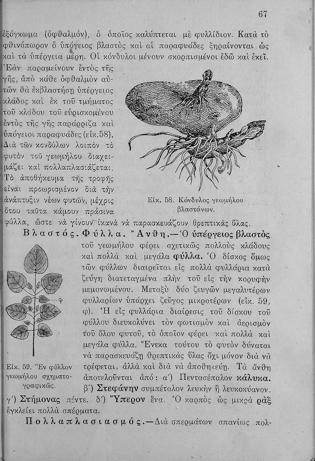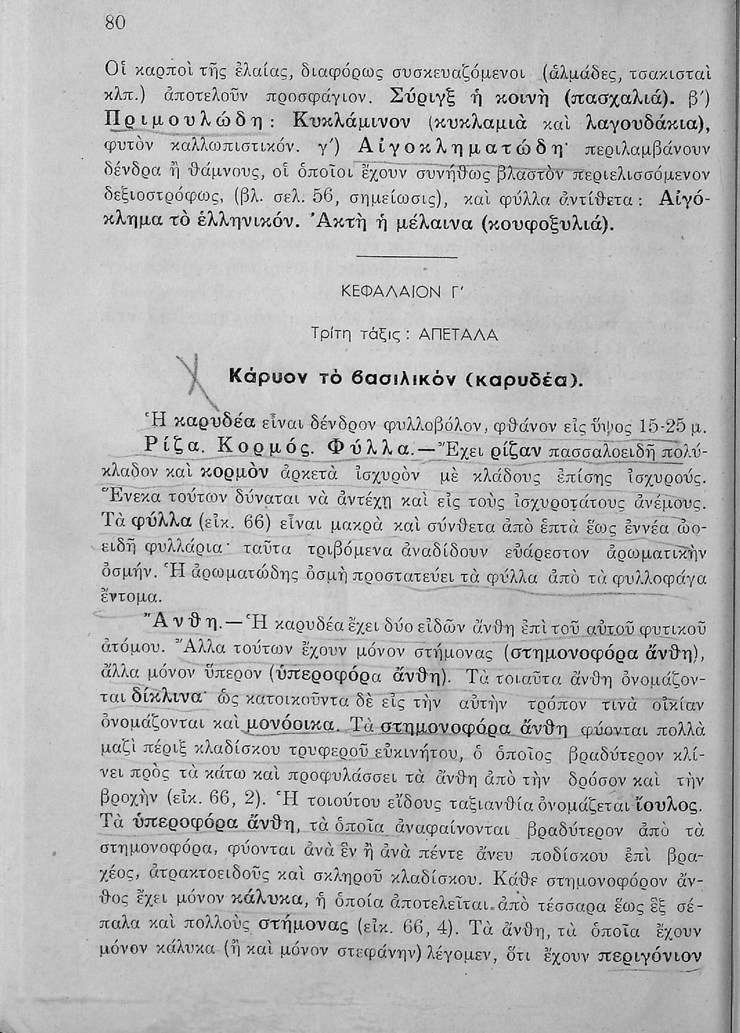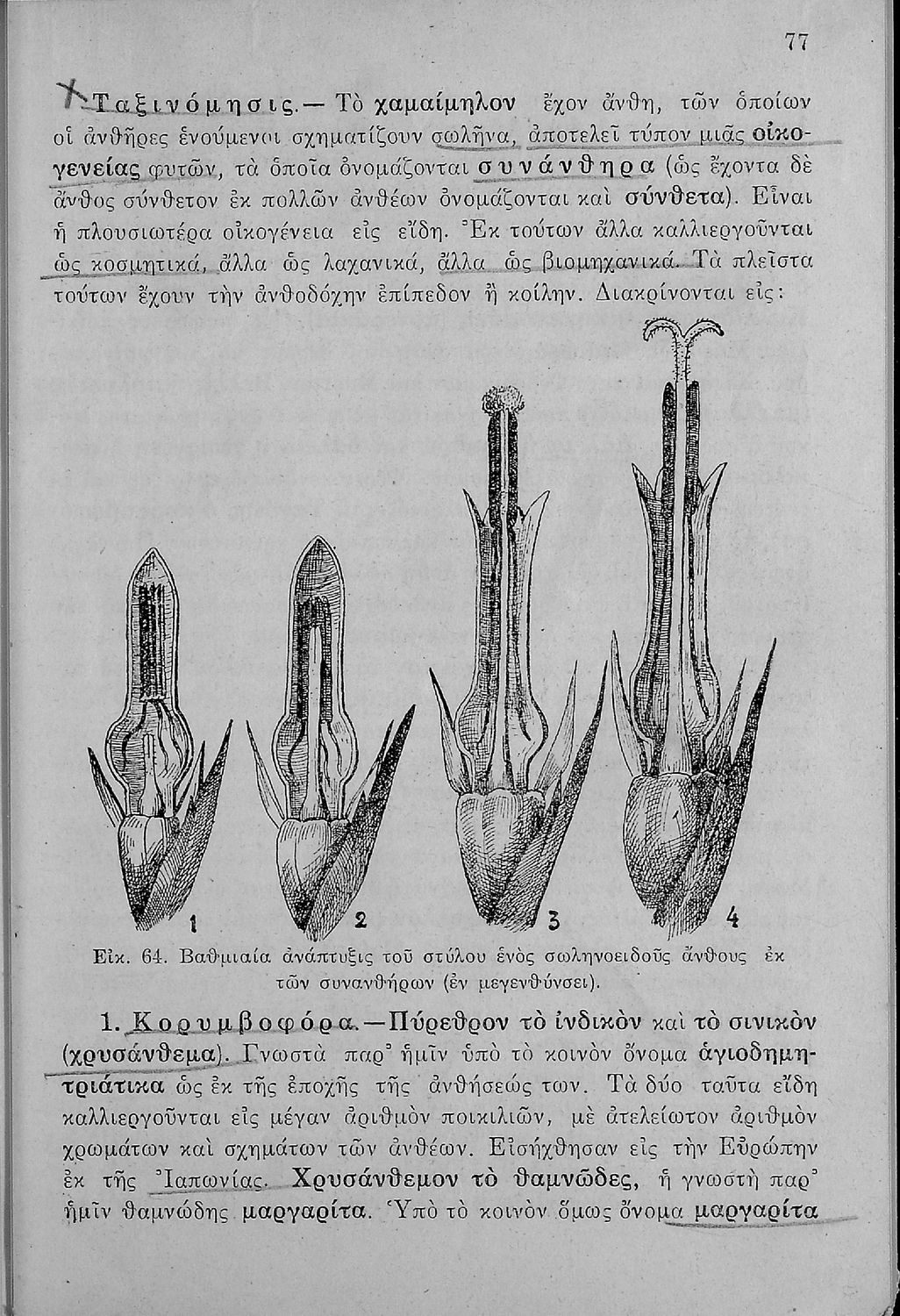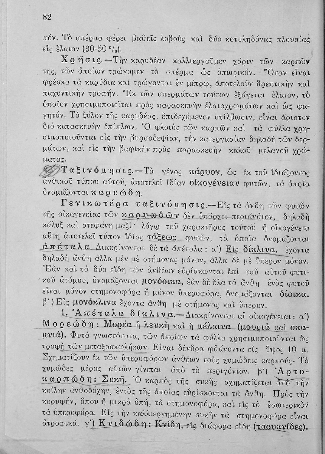 Σχολικό εγχειρίδιο Ζωολογίας/Φυτολογίας για τα Γυμνάσια και Αστικά Σχολεία που παρουσιάζει διάφορα ζώα και φυτά ανάλογα με τη συνομοταξία στην οποία ανήκουν.