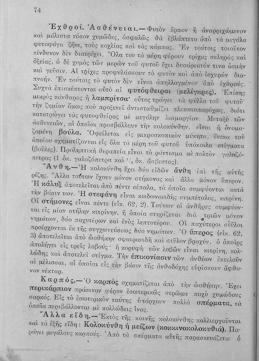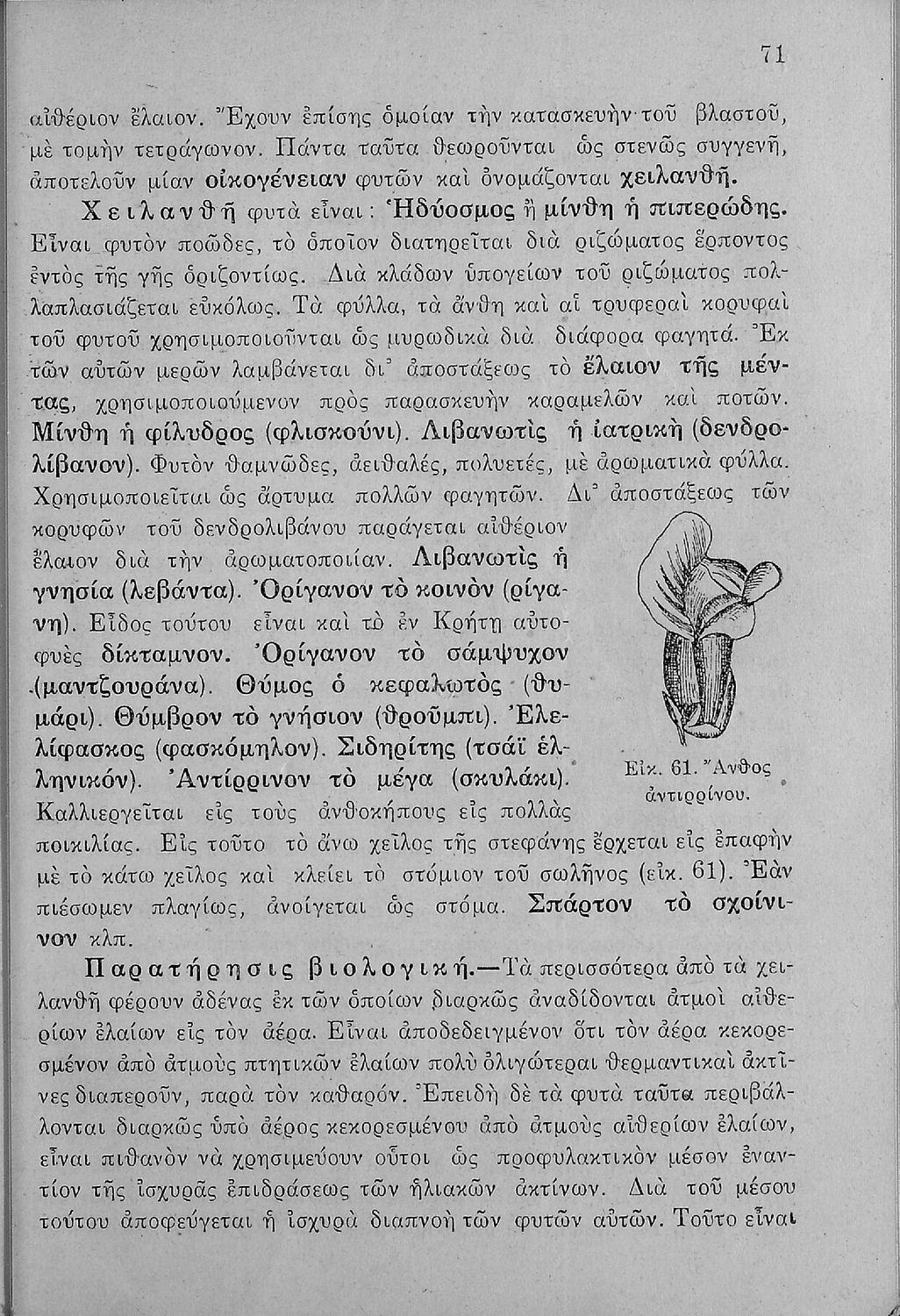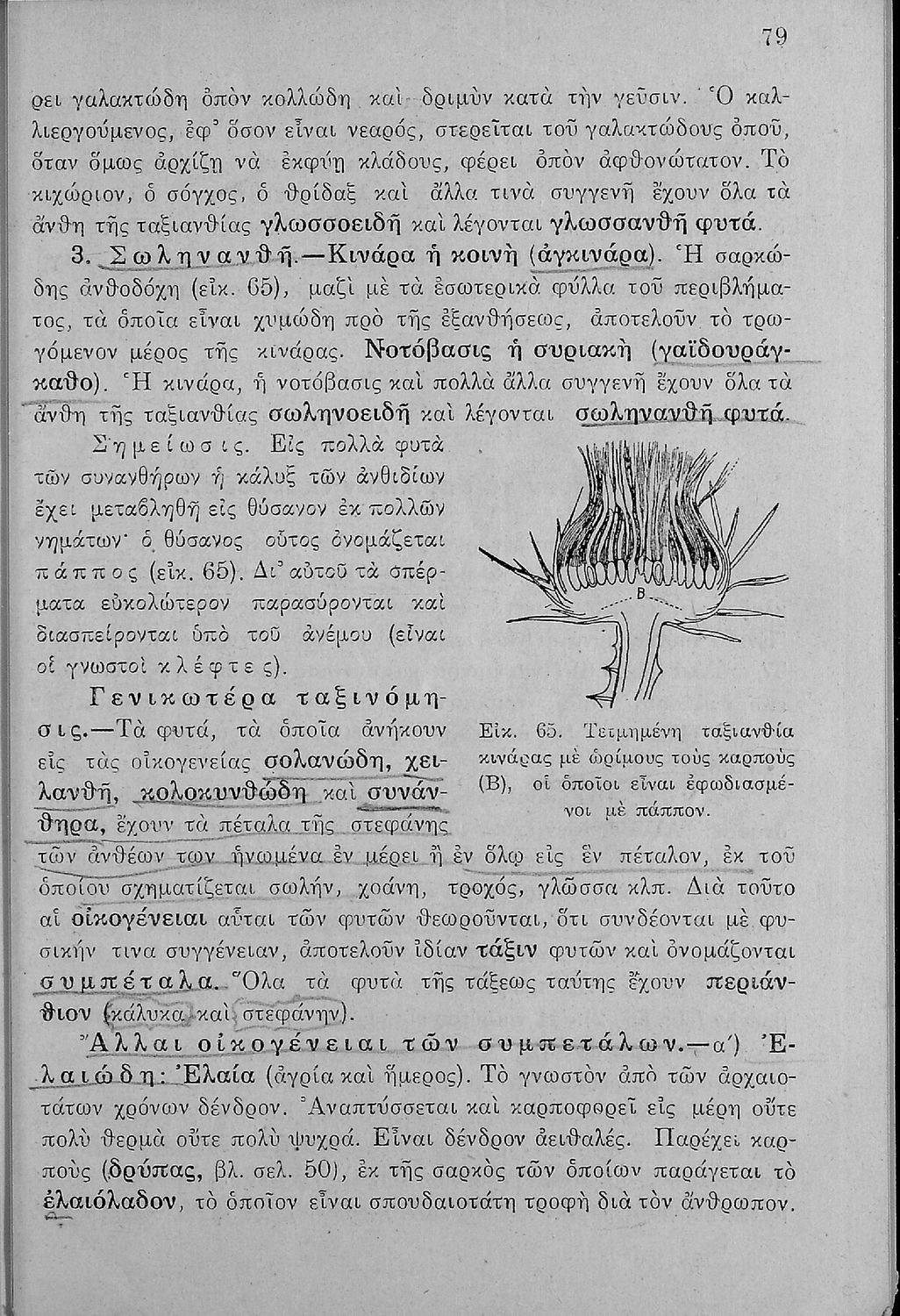 Βαθμίδα εκπαίδευσης: Δευτεροβάθμια Τάξη: Β' Γυμνασίου / Α' Αστικού Σχολείου Γλώσσα: Καθαρεύουσα Παρουσίαση περιεχομένου: Σχολικό εγχειρίδιο Ζωολογίας/Φυτολογίας για τα Γυμνάσια και Αστικά Σχολεία που παρουσιάζει διάφορα ζώα και φυτά ανάλογα με τη συνομοταξία στην οποία ανήκουν. |