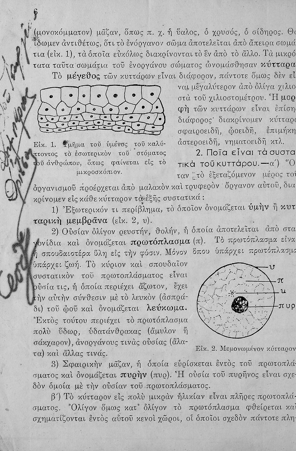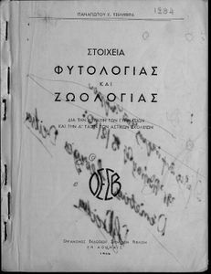 Κωδικός αναγνώρισης: 20-01284 Τίτλος: Στοιχεία φυτολογίας και ζωολογίας διά την Β΄ τάξιν των Γυμνασίων και την Α΄ τάξιν των Αστικών Σχολείων Συγγραφέας: Παναγιώτης Γ. Τσιλήθρας Μέγεθος και υπόστρωμα: Σχολικό εγχειρίδιο, 18εκ., μαλακό εξώφυλλο, 198 σελίδες. Σκίτσα (ασπρόμαυρα). |
