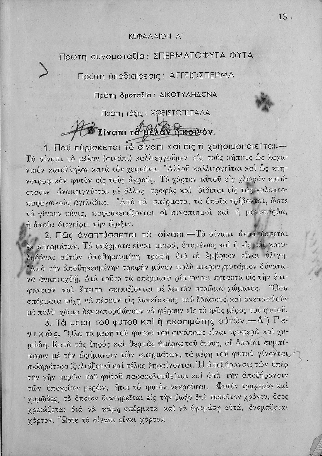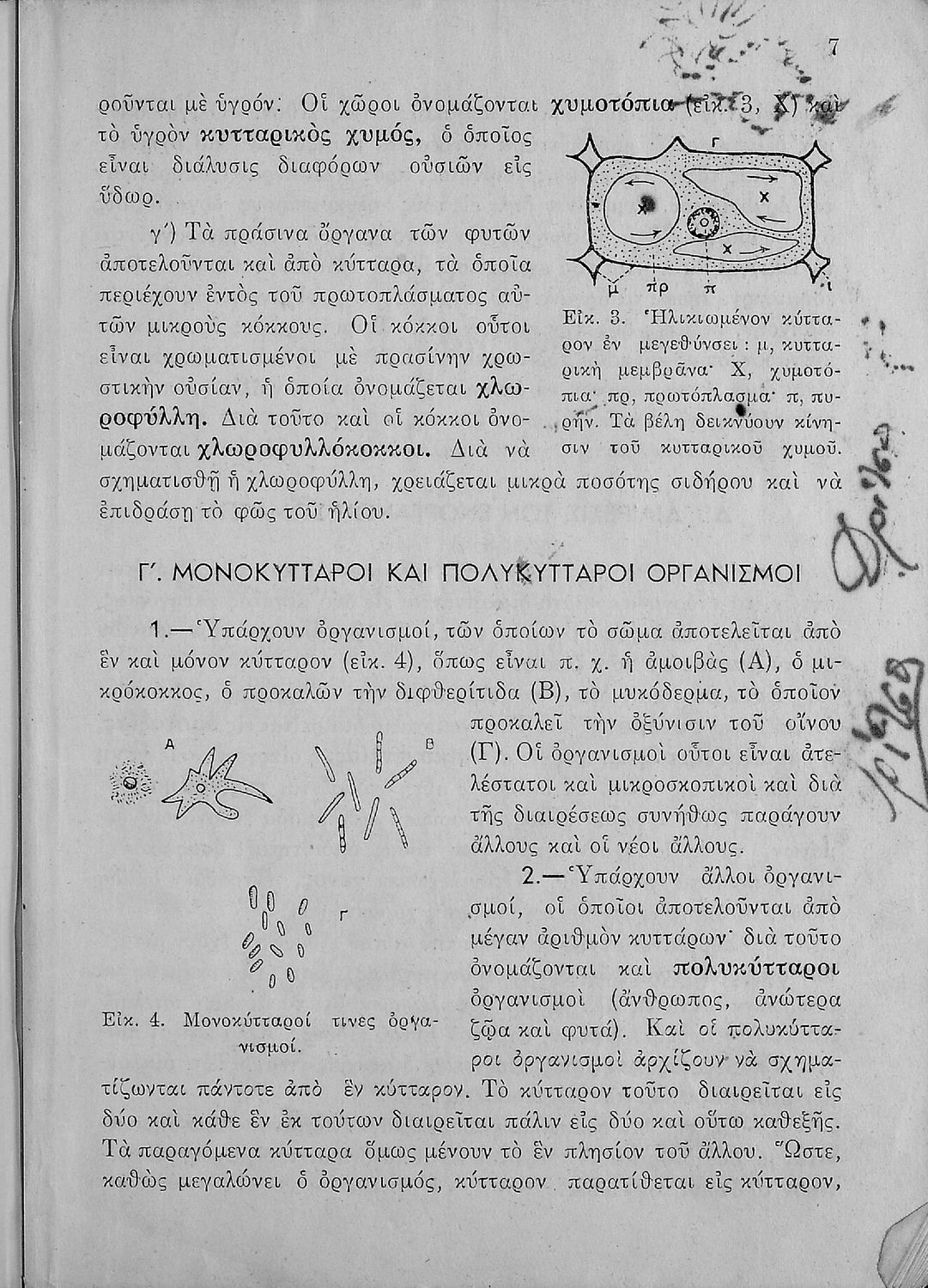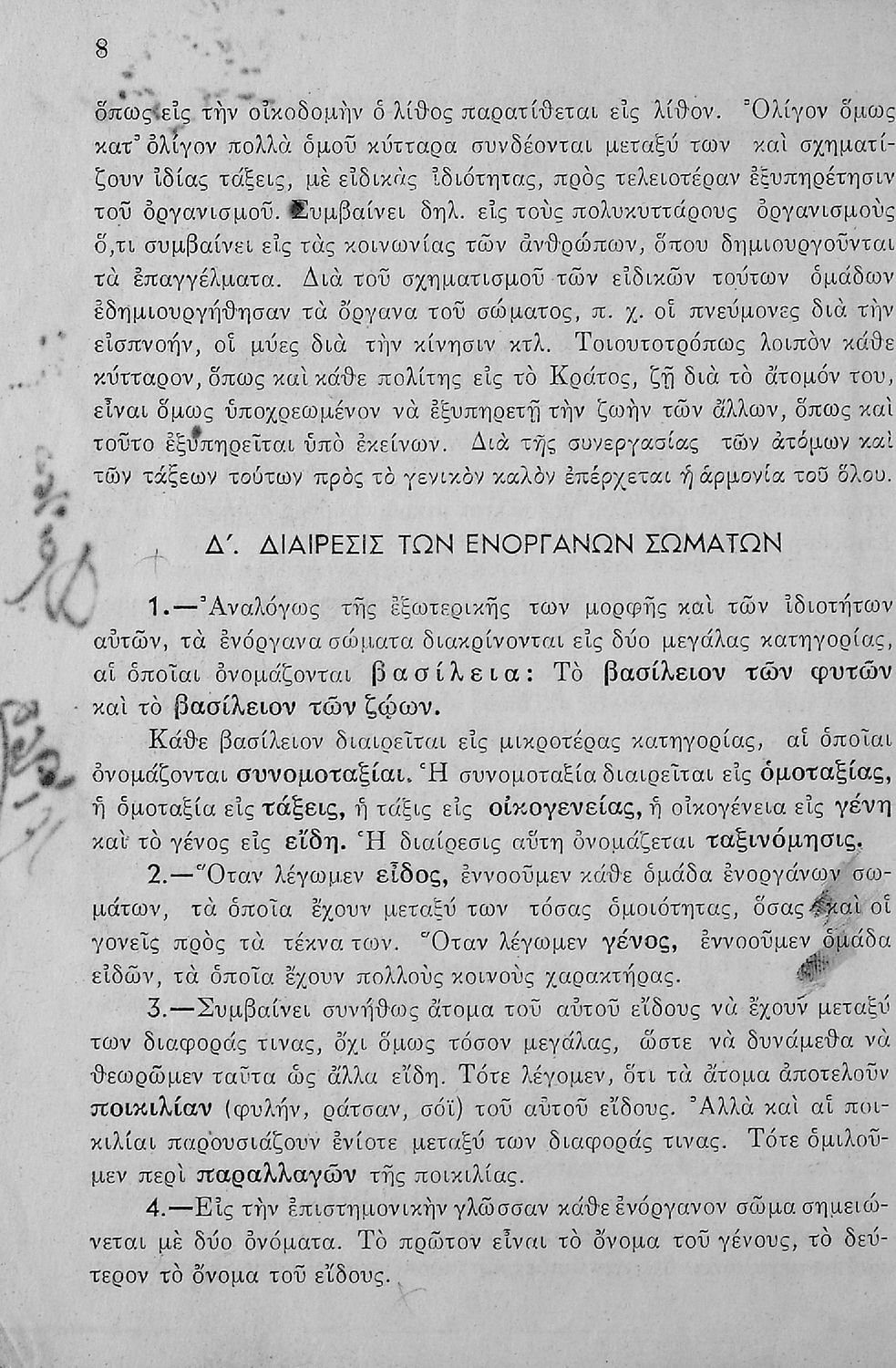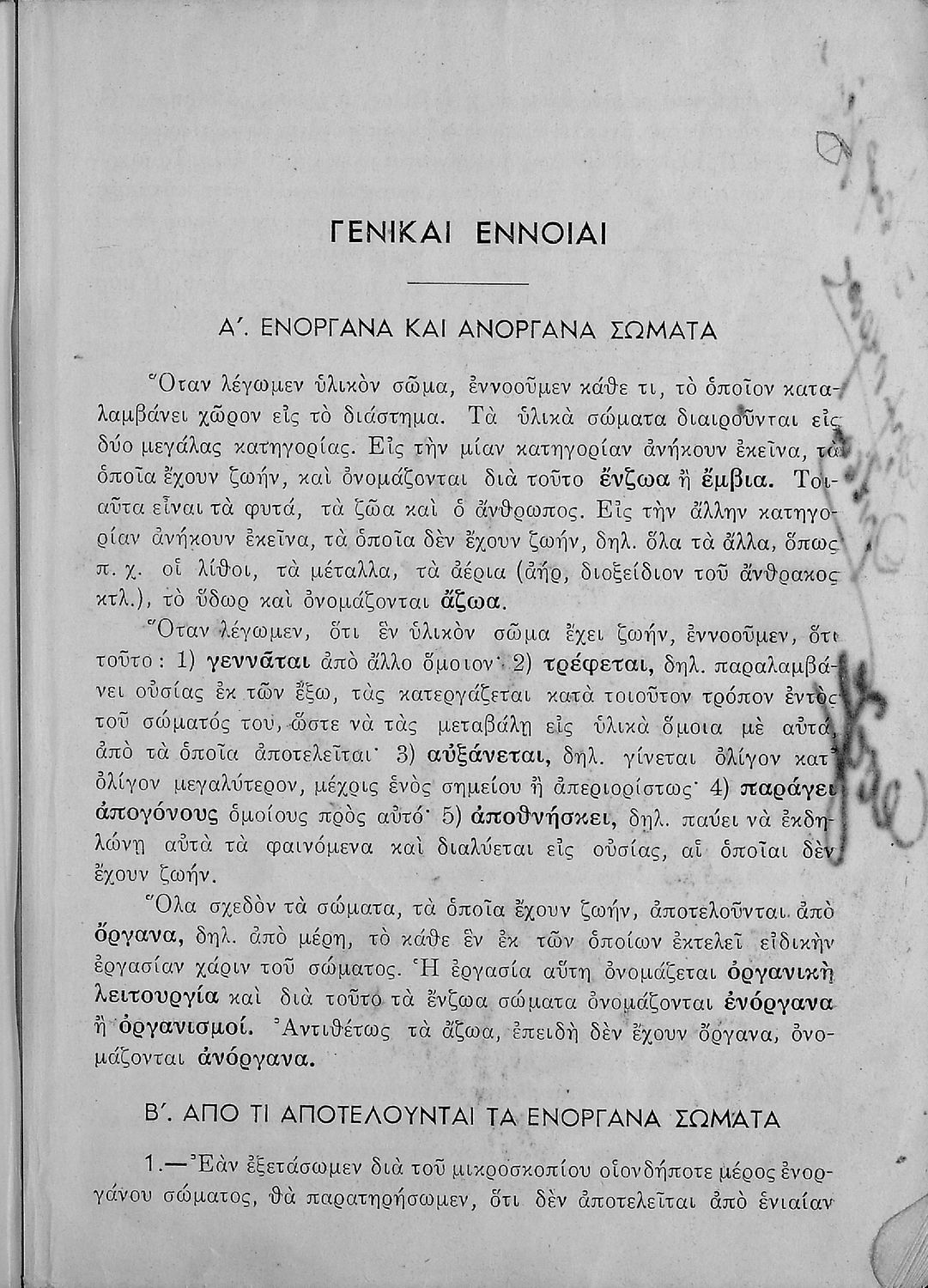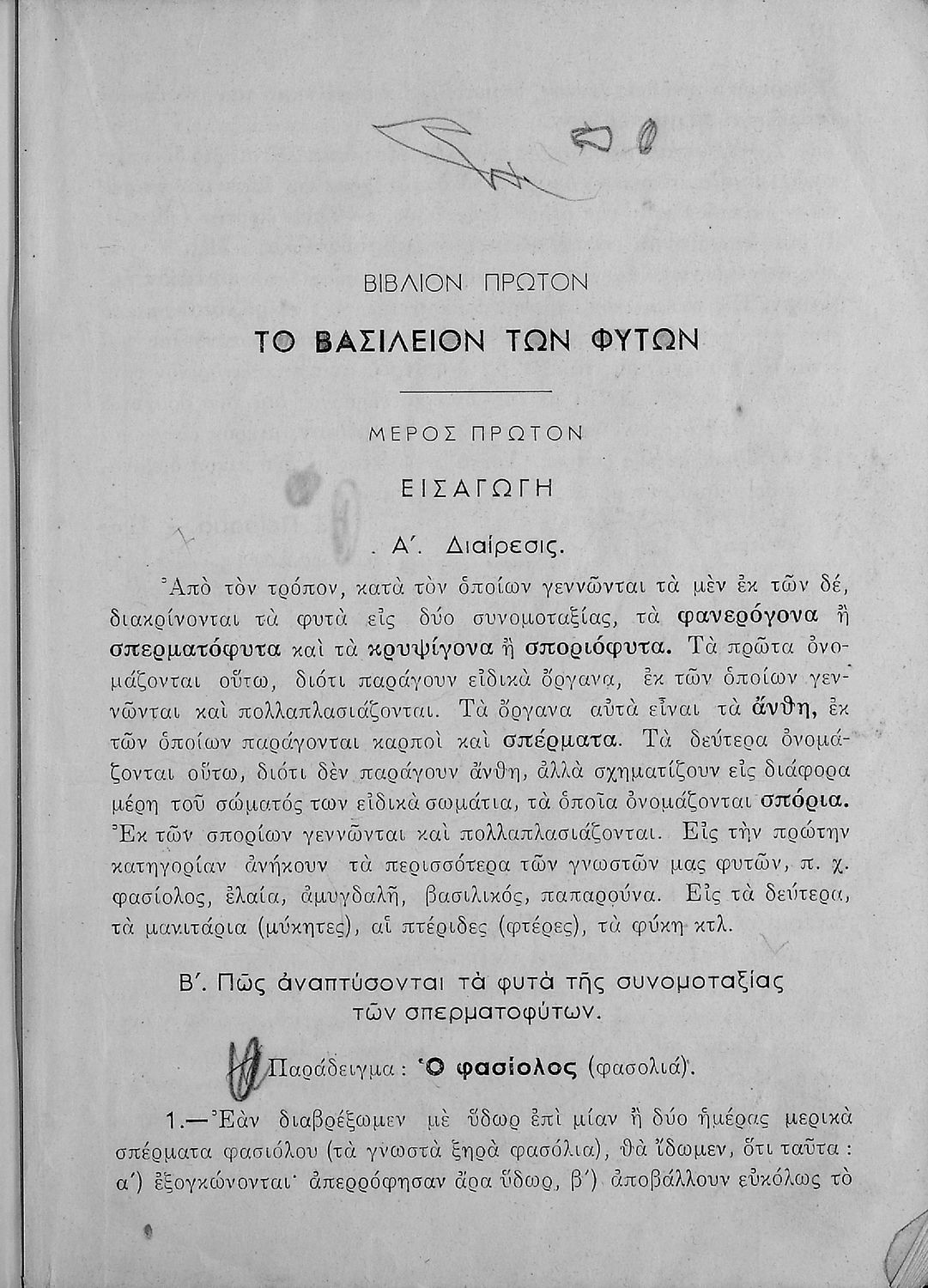 Σχολικό εγχειρίδιο Ζωολογίας/Φυτολογίας για τα Γυμνάσια και Αστικά Σχολεία που παρουσιάζει διάφορα ζώα και φυτά ανάλογα με τη συνομοταξία στην οποία ανήκουν.