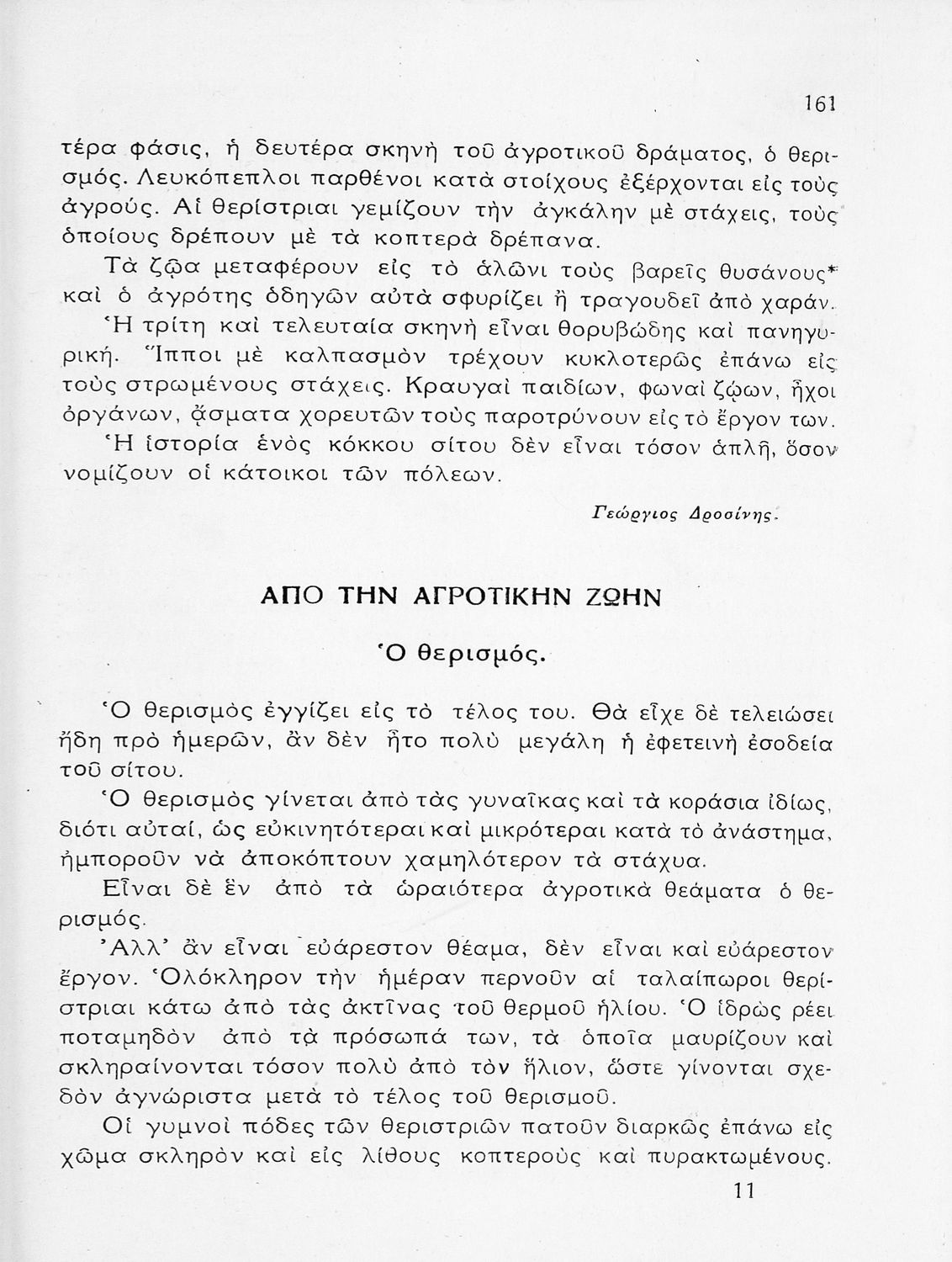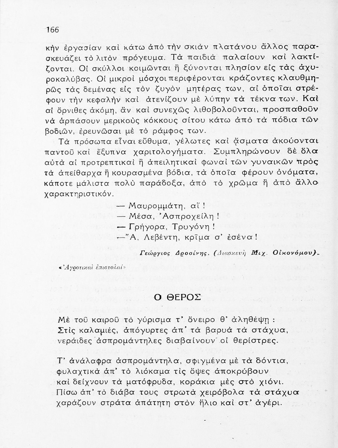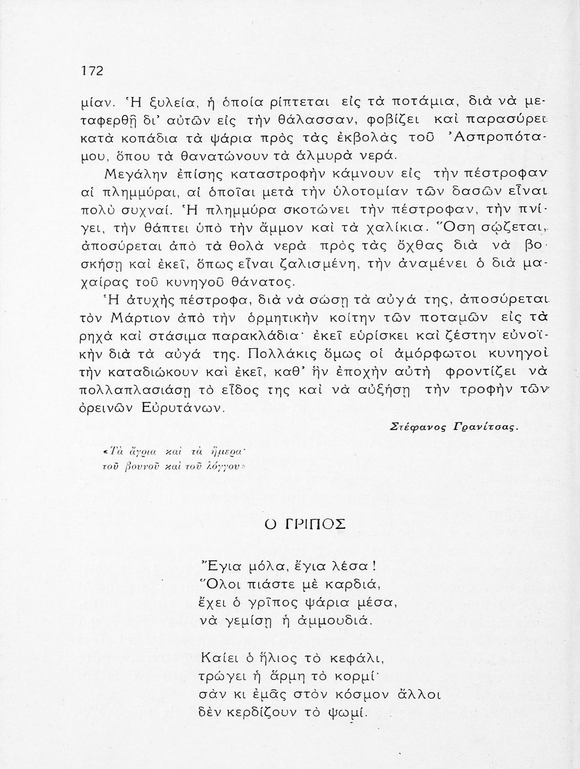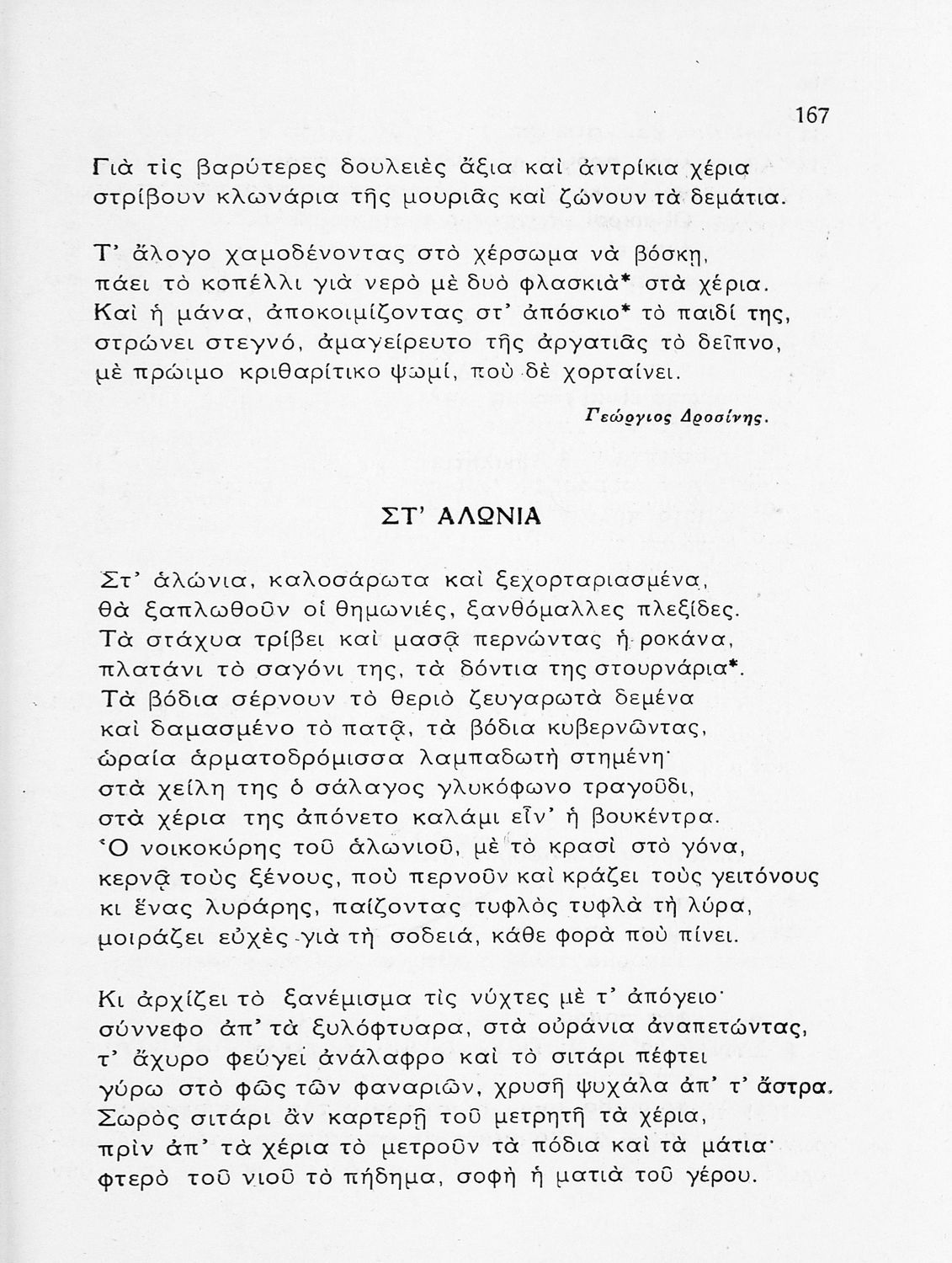 Σχολικό εγχειρίδιο Νέων Ελληνικών Β΄ Γυμνασίου και Β' Αστικού Σχολείου που περιλαμβάνει ποιήματα και πεζά Ελλήνων συγγραφέων εμπνευσμένα από τη θρησκευτική ζωή, την αρχαία και νεώτερη ελληνική ιστορία, την οικογενειακή και κοινωνική ζωή και την ελληνική ύπαιθρο. Περιέχει και παράρτημα με βιογραφίες των συγγραφέων και λεξιλόγιο.