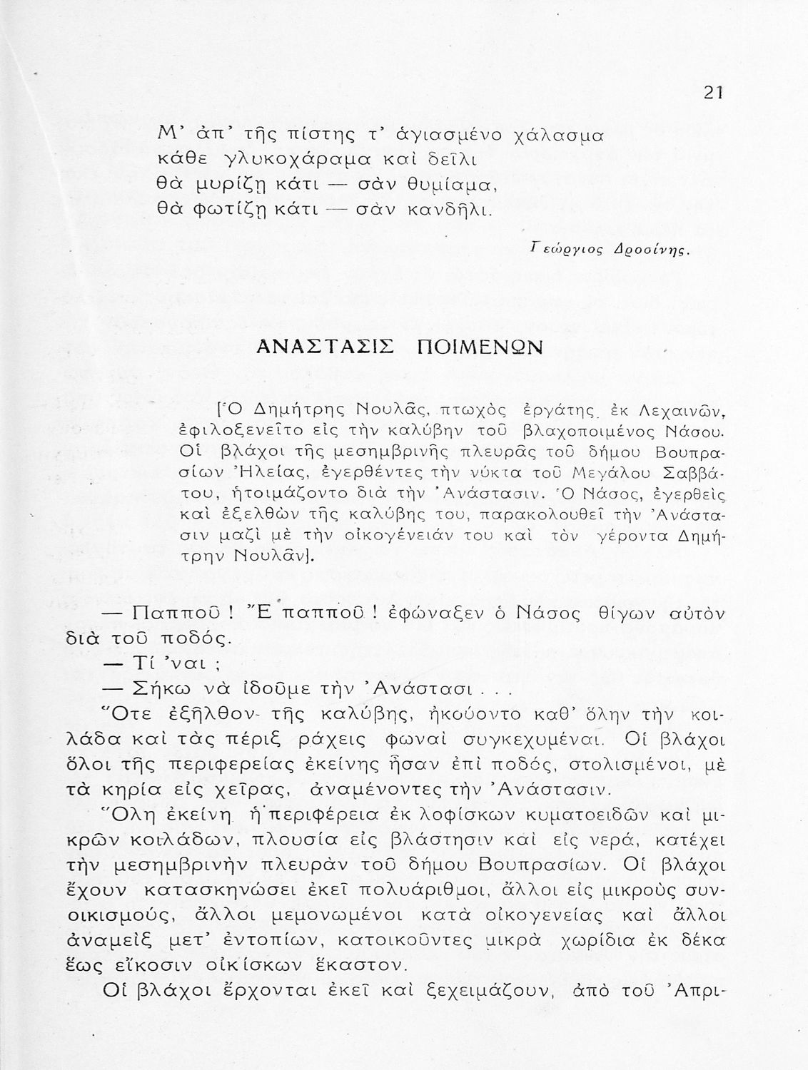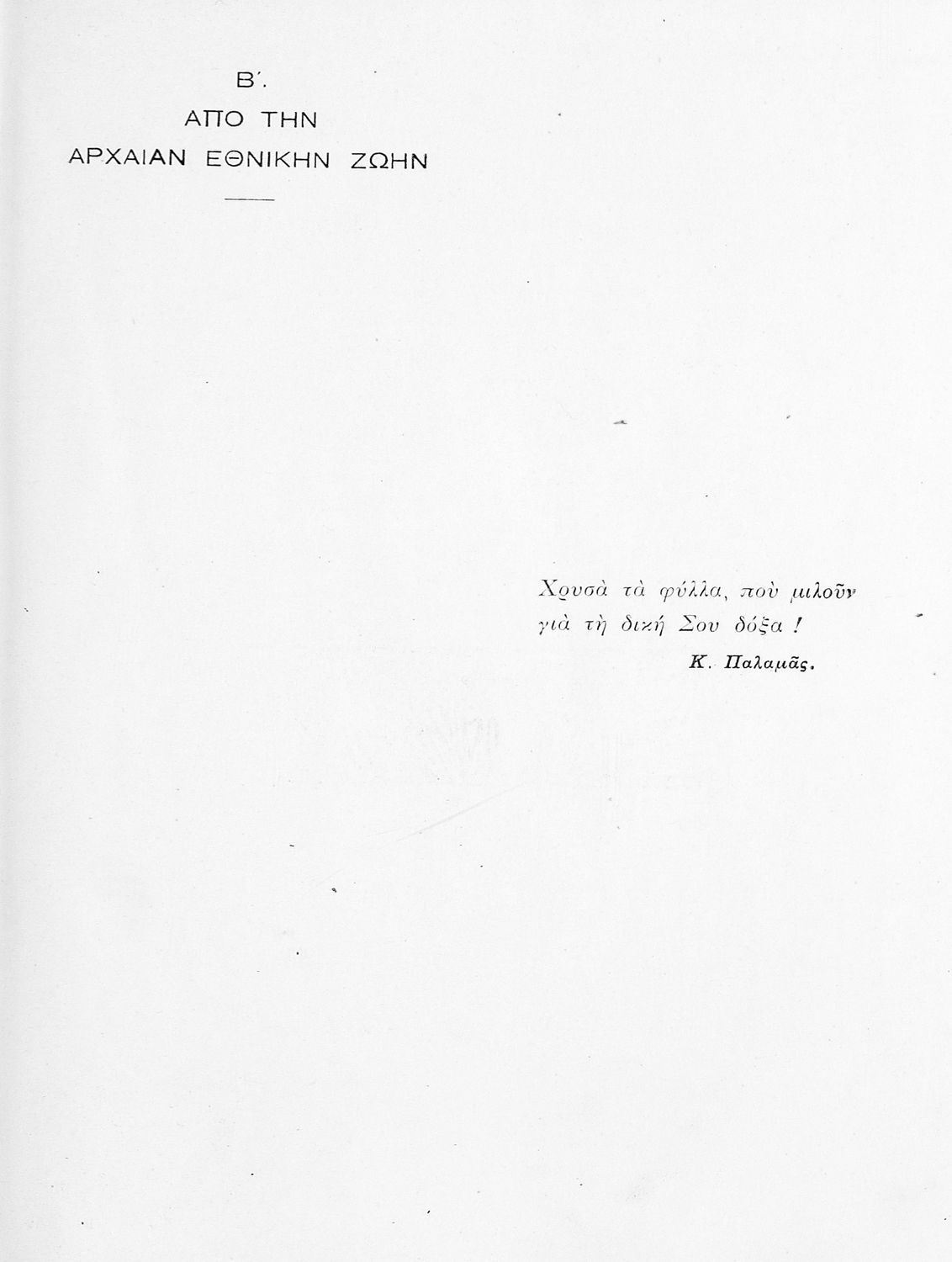 Σχολικό εγχειρίδιο Νέων Ελληνικών Δ΄ Γυμνασίου και Β΄ Αστικού Σχολείου που περιέχει πεζά και ποιήματα Ελλήνων συγγραφέων εμπνευσμένα από τη θρησκευτική και κοινωνική ζωή, την ελληνική μυθολογία, την αρχαία και