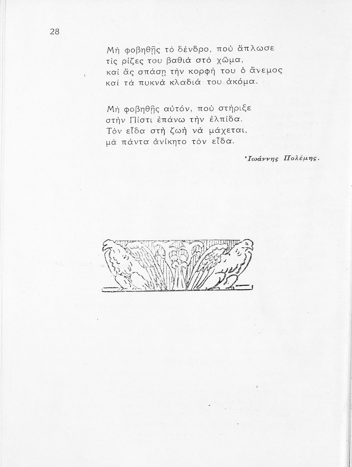 Σχολικό εγχειρίδιο Νέων Ελληνικών Β΄ Γυμνασίου και Β' Αστικού Σχολείου που περιλαμβάνει ποιήματα και πεζά Ελλήνων συγγραφέων εμπνευσμένα από τη θρησκευτική ζωή, την αρχαία και νεώτερη ελληνική ιστορία, την οικογενειακή και κοινωνική ζωή και την ελληνική ύπαιθρο. Περιέχει και παράρτημα με βιογραφίες των συγγραφέων και λεξιλόγιο.