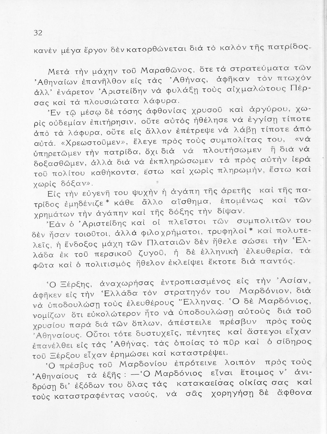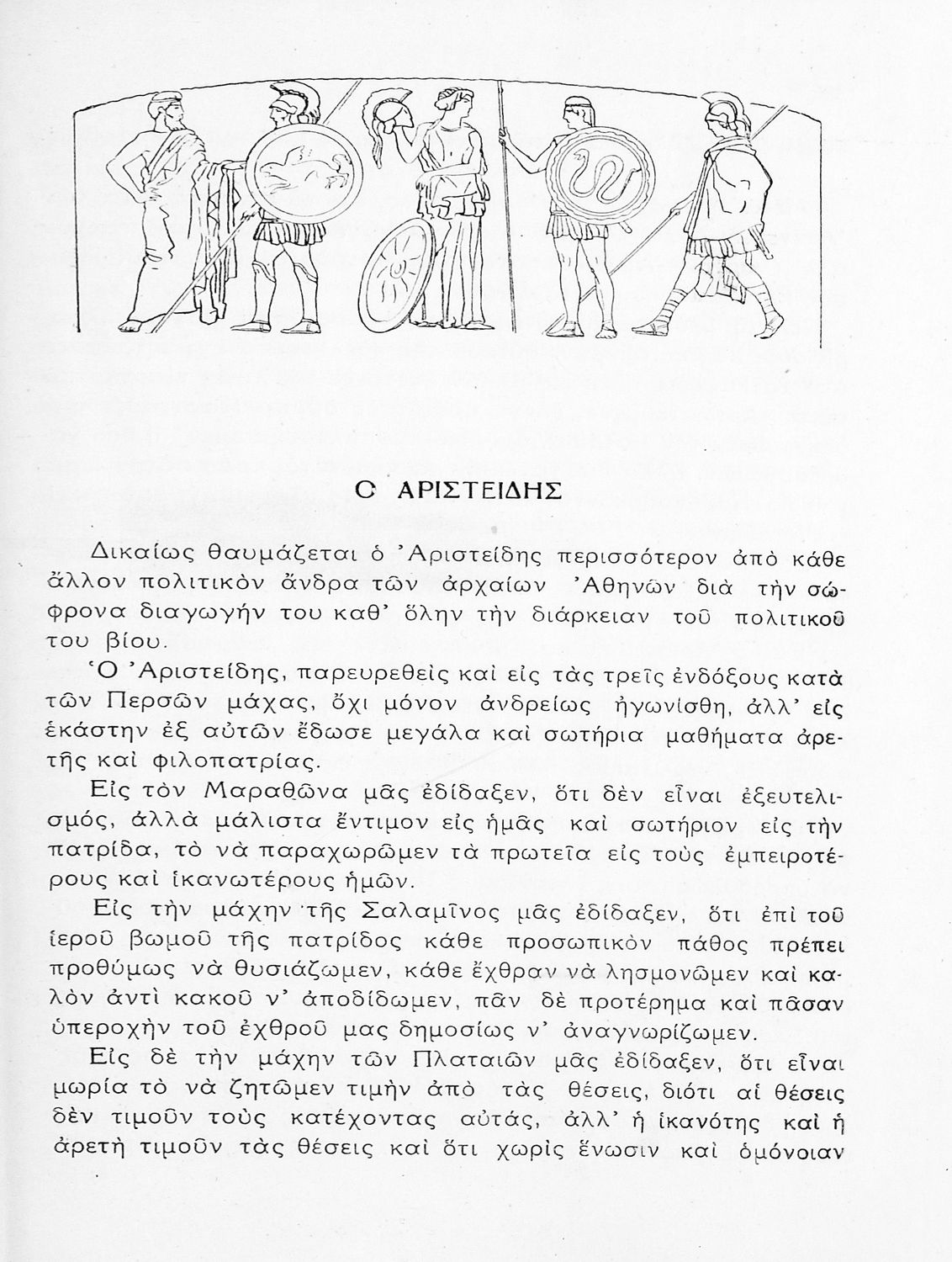Σχολικό εγχειρίδιο Αρχαίων Ελληνικών Γυμνασίου που περιέχει κείμενα βασισμένα στην αρχαία ελληνική ιστορία και μυθολογία και γραμματικές, συντακτικές και ετυμολογικές παρατηρήσεις.