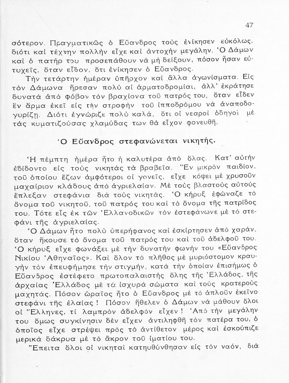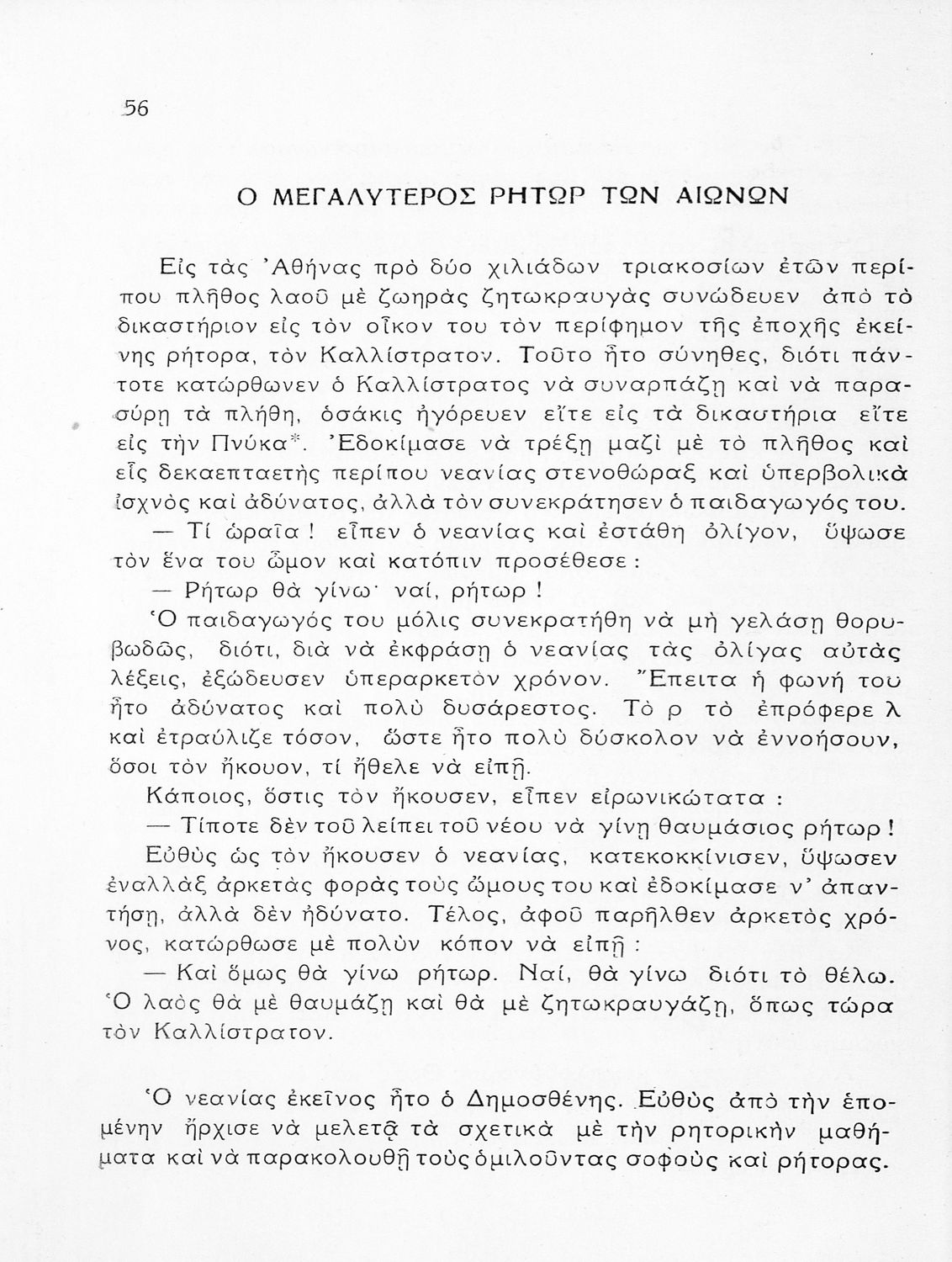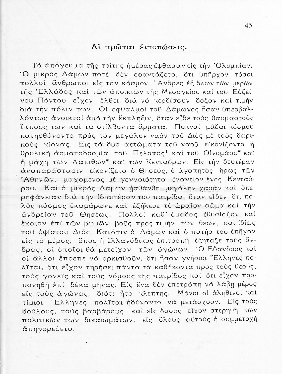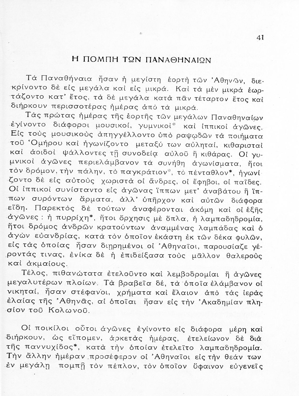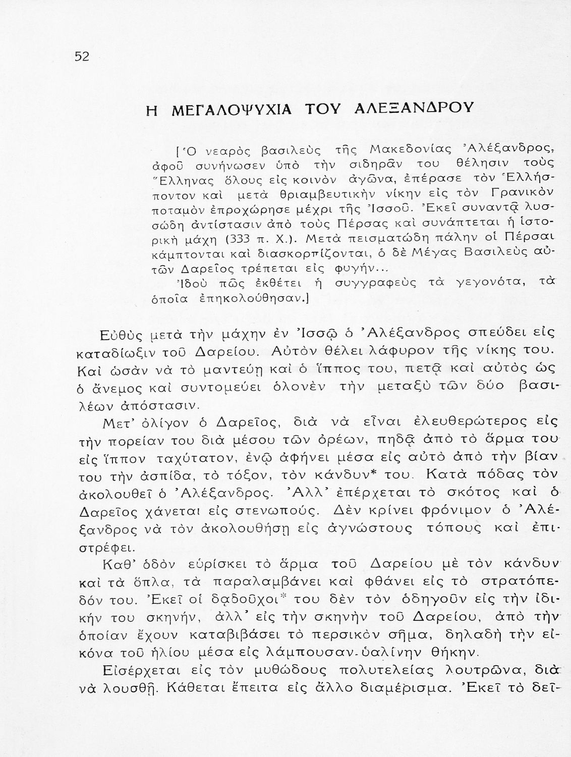 Σχολικό εγχειρίδιο Αρχαίων Ελληνικών Γυμνασίου που περιέχει κείμενα βασισμένα στην αρχαία ελληνική ιστορία και μυθολογία και γραμματικές, συντακτικές και ετυμολογικές παρατηρήσεις.
