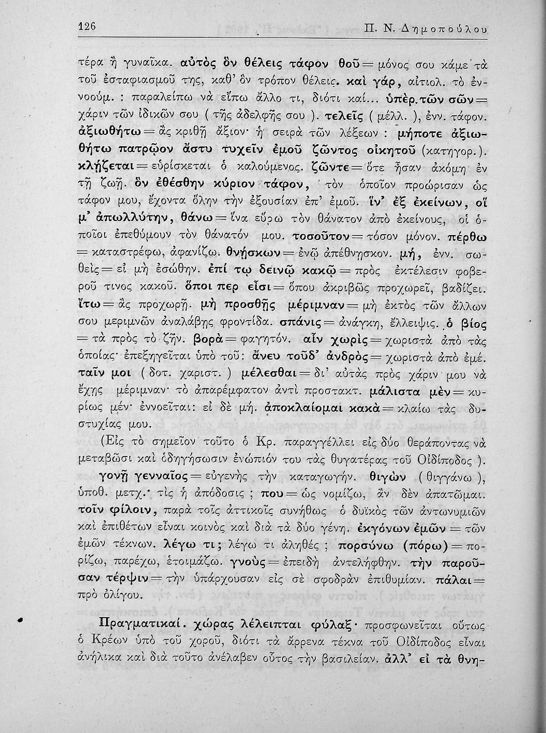 Σοφοκλής, Π. Ν. Δημόπουλος (σχόλια)