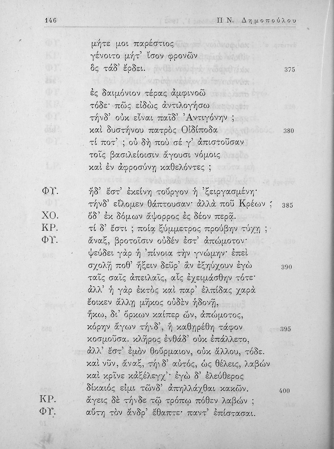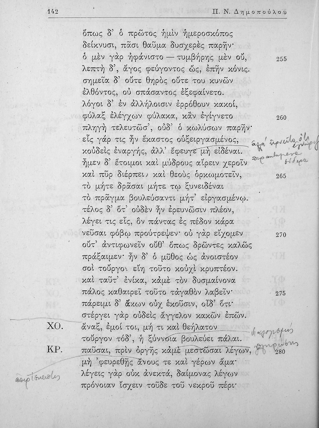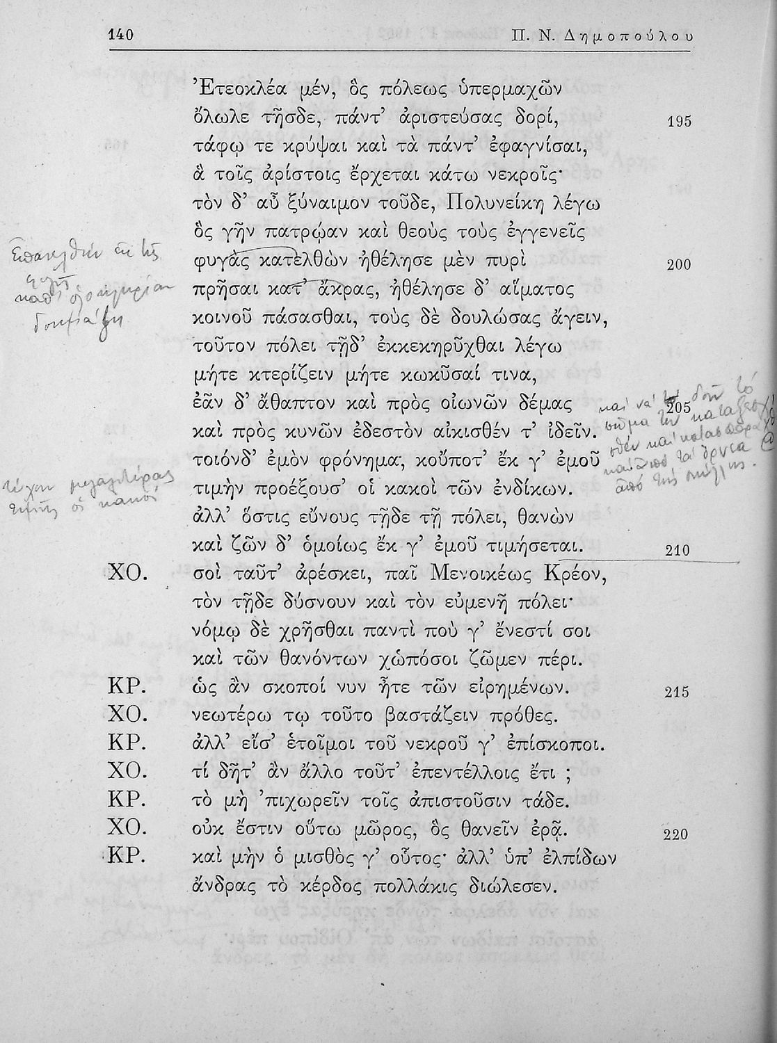 Σοφοκλής, Π. Ν Δημόπουλος (σχόλια)