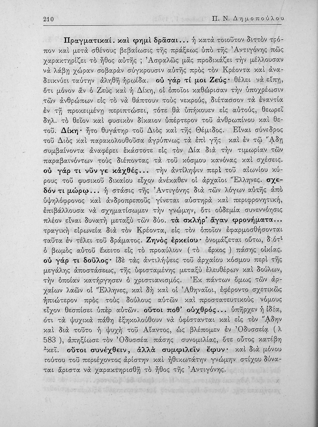 Σοφοκλής, Π. Ν. Δημόπουλος (σχόλια)