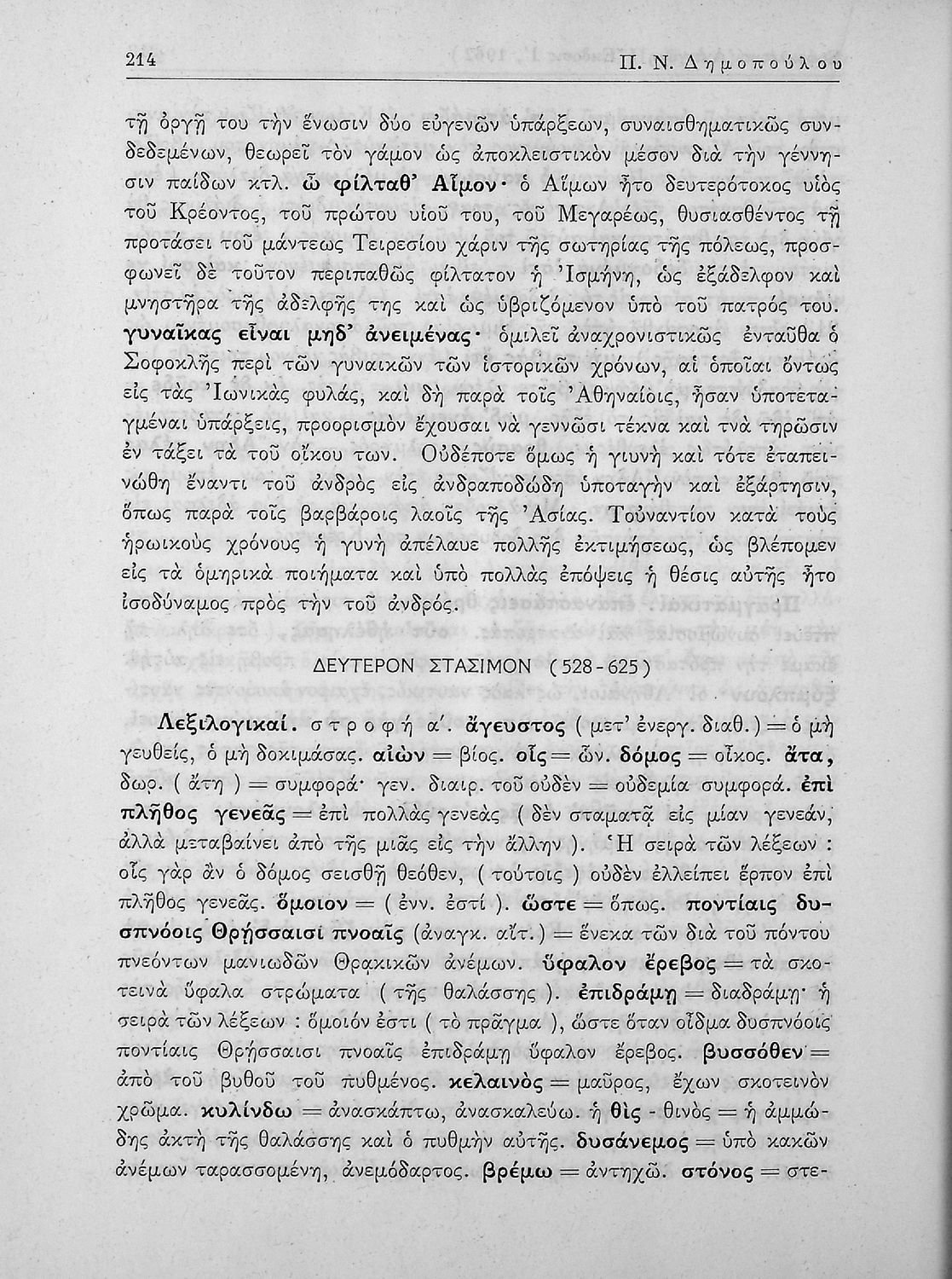 Σοφοκλής, Π. Ν Δημόπουλος (σχόλια)