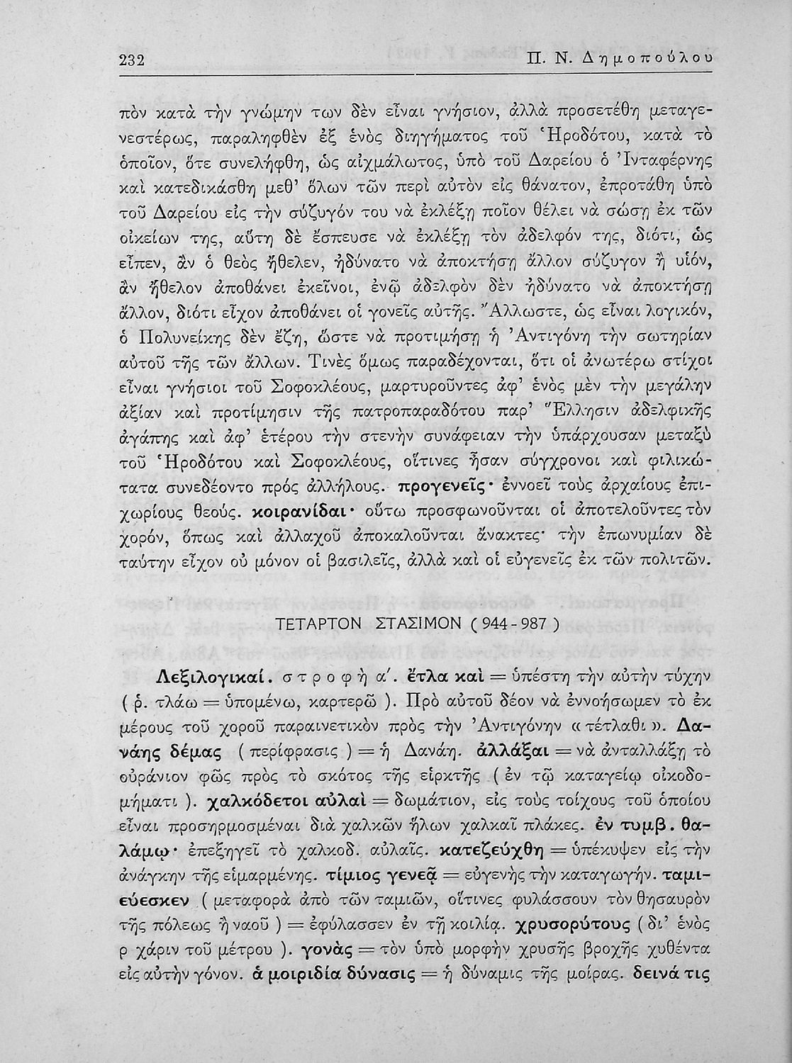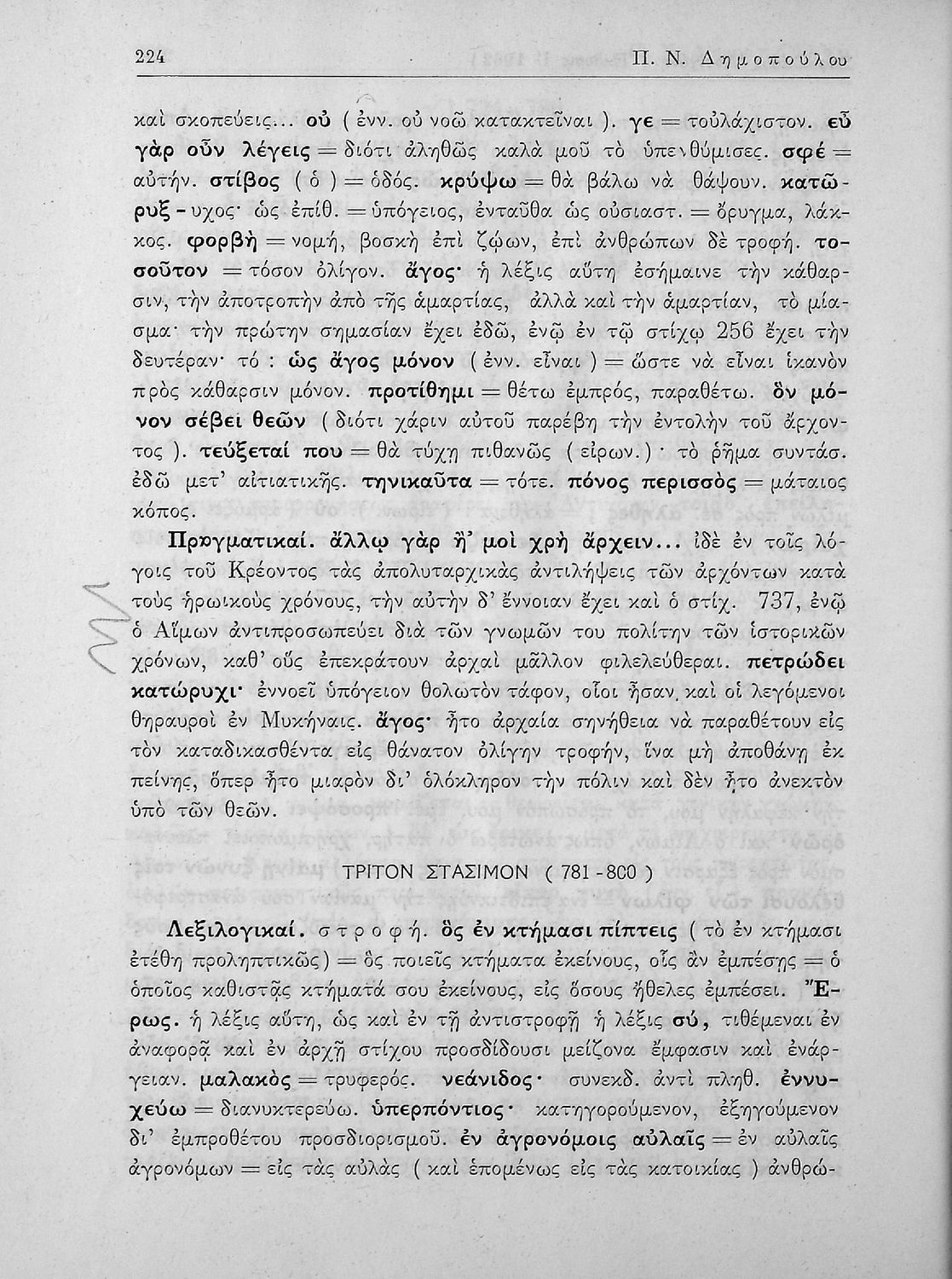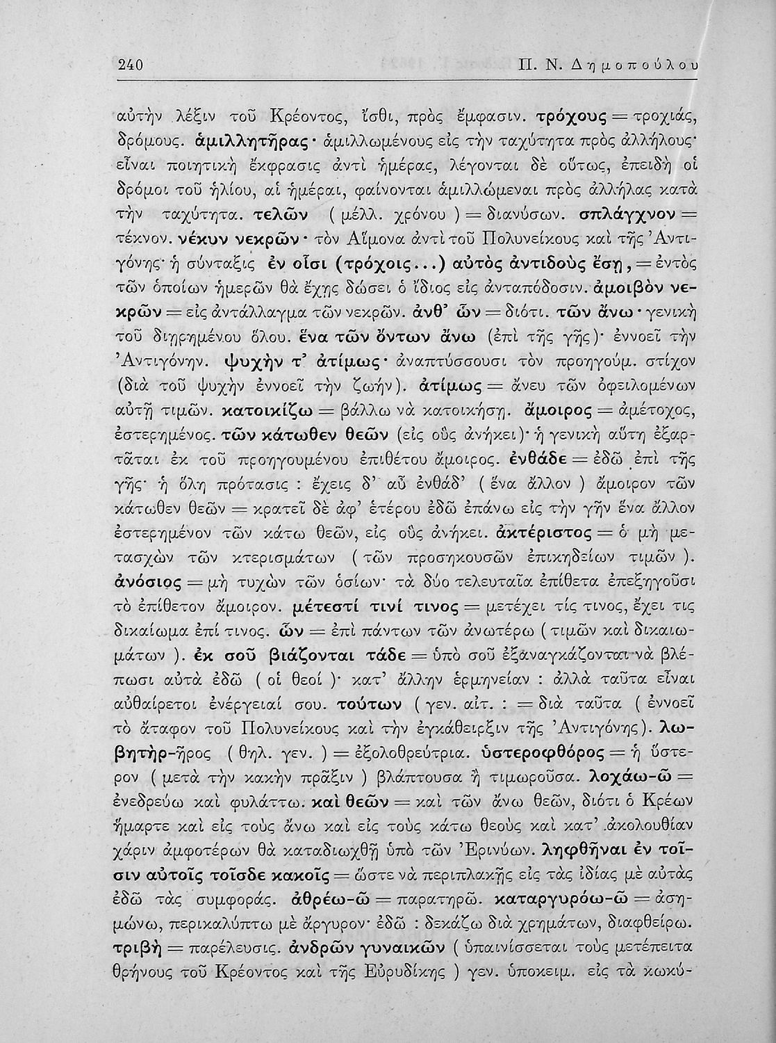 Σοφοκλής, Π. Ν Δημόπουλος (σχόλια)