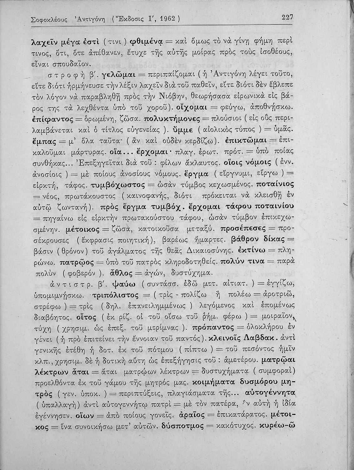 Σχολικό εγχειρίδιο Αρχαίων Ελληνικών της ΣΤ΄ Γυμνασίου. Το βιβλίο περιέχει δύο τραγωδίες του Σοφοκλή, τον Οιδίπους Τύραννο και την Αντιγόνη. Τα έργα αυτά συνοδεύονται από αναλύσεις λεξιλογικές και αναφορικά με