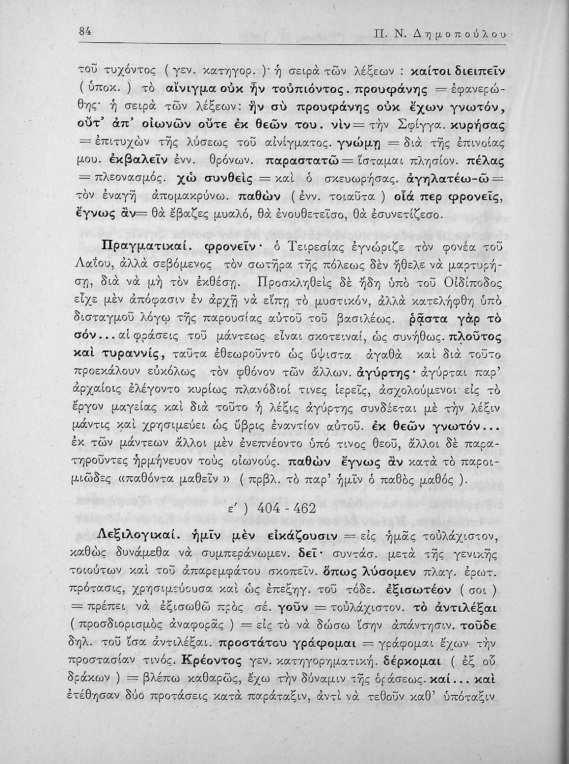 Σοφοκλής, Π. Ν Δημόπουλος (σχόλια)
