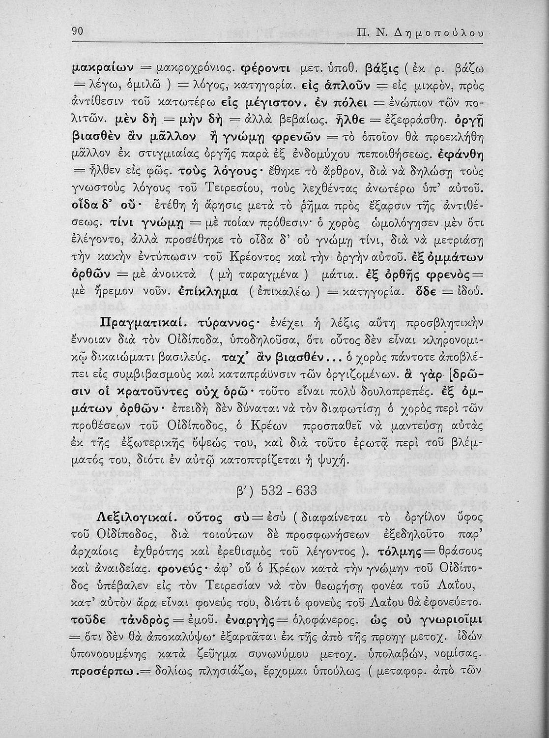 Σοφοκλής, Π. Ν. Δημόπουλος (σχόλια)
