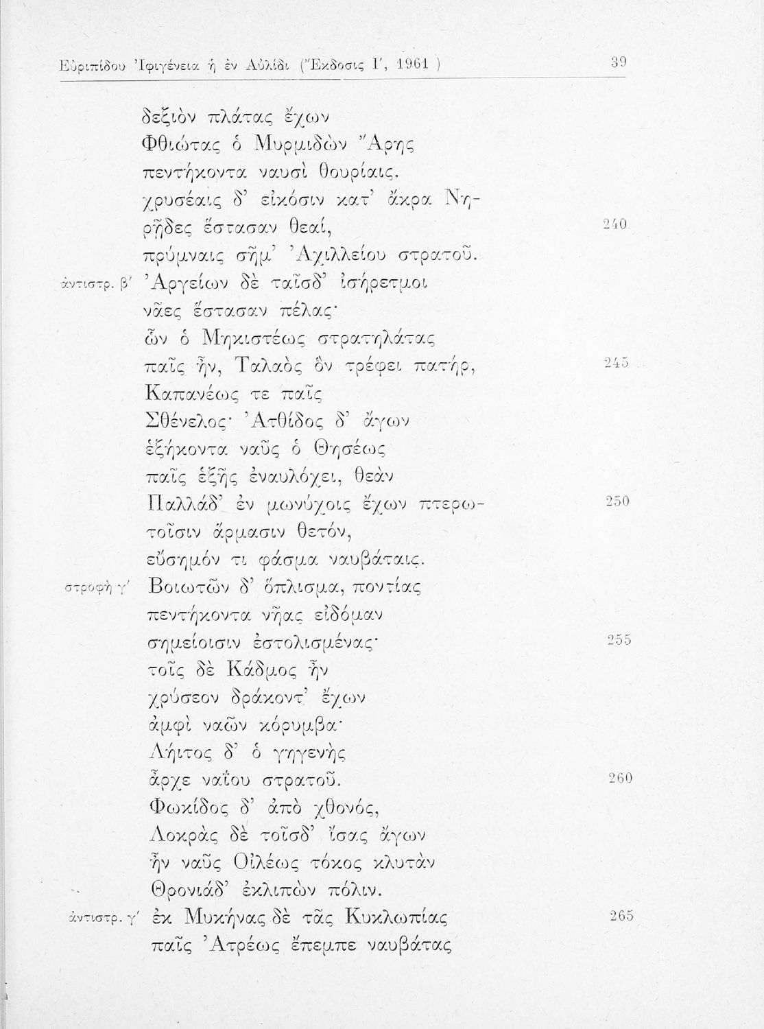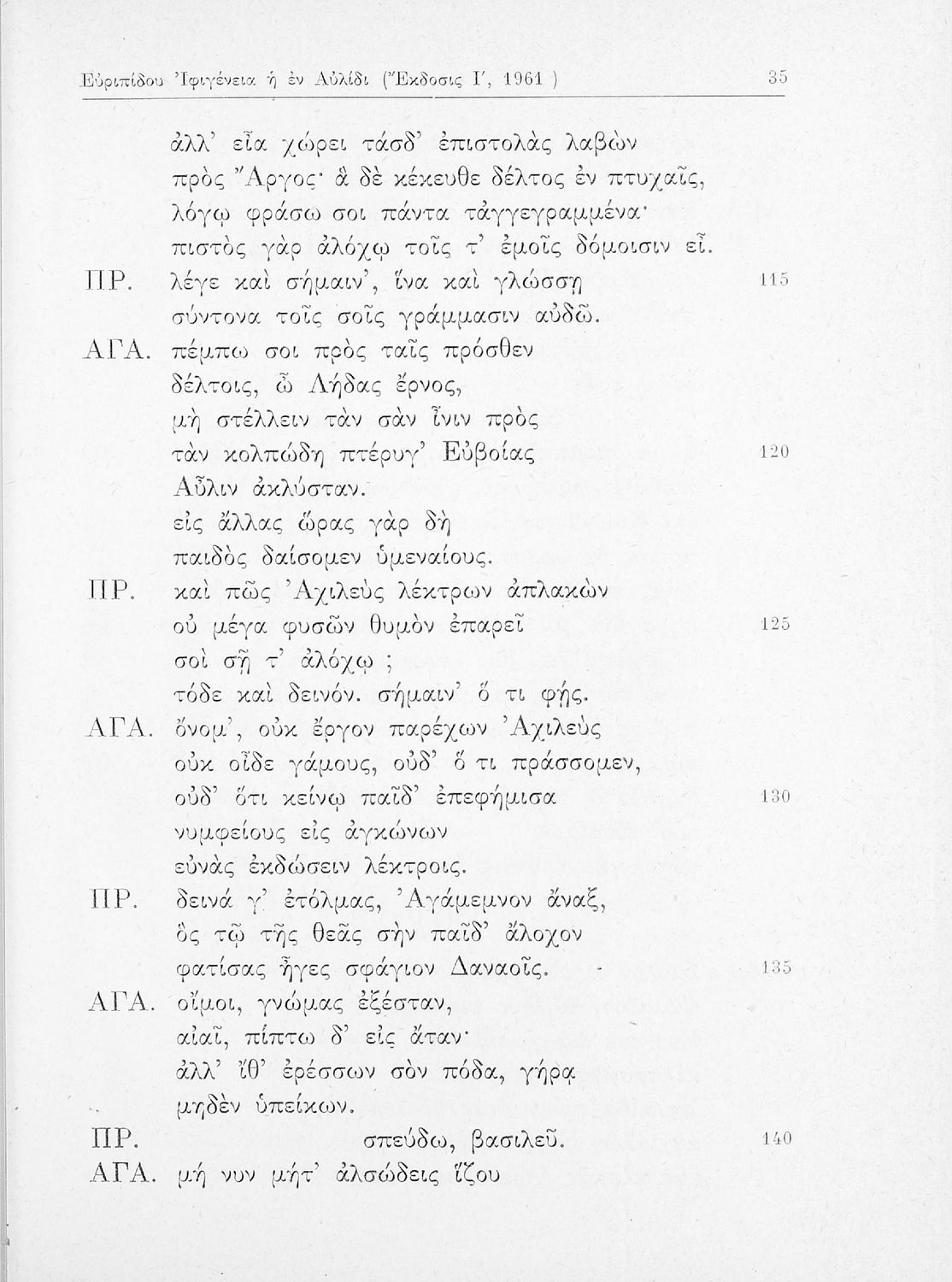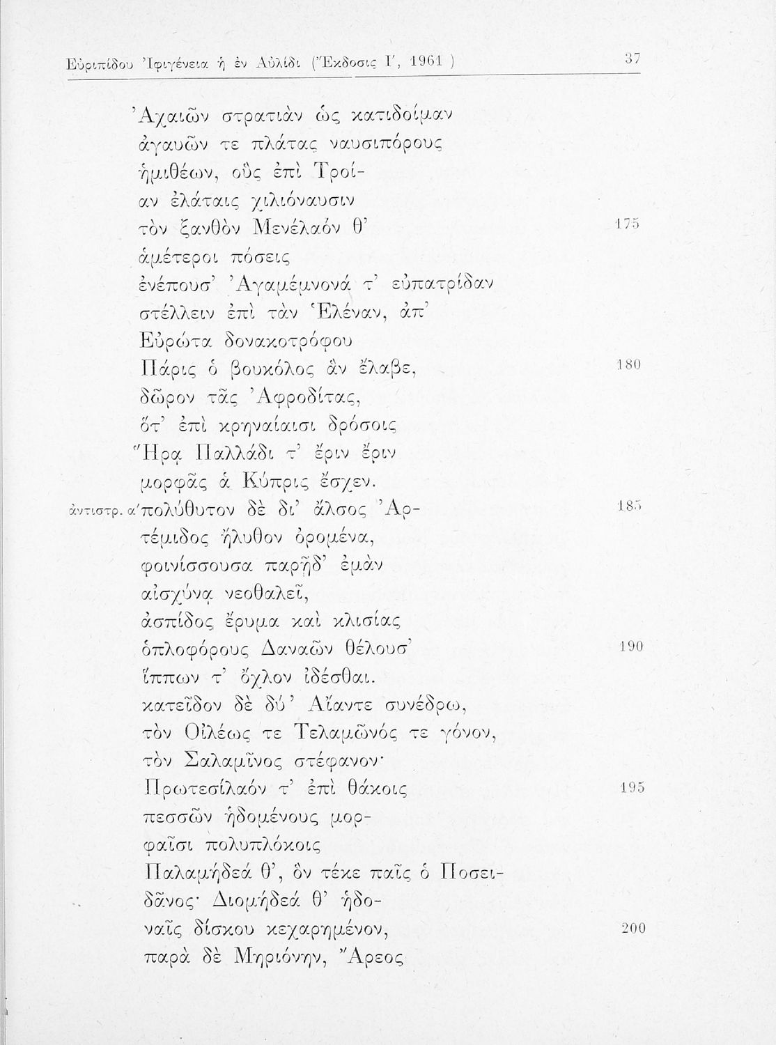 Μαθητικό βοήθημα Αρχαίων Ελληνικών για την Ε' Γυμνασίου που περιλαμβάνει μετάφραση, ερμηνευτικά, γραμματικά και συντακτικά σχόλια στην Ιφιγένεια η εν Αυλίδι.
