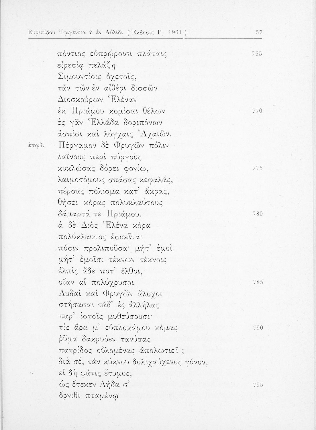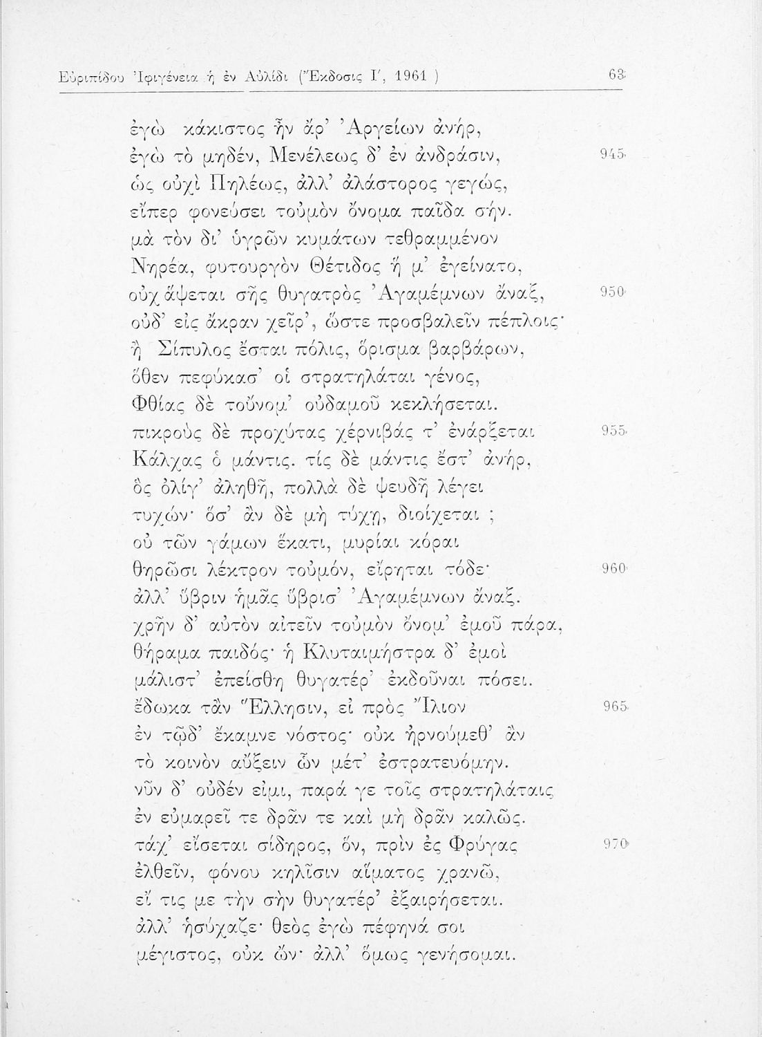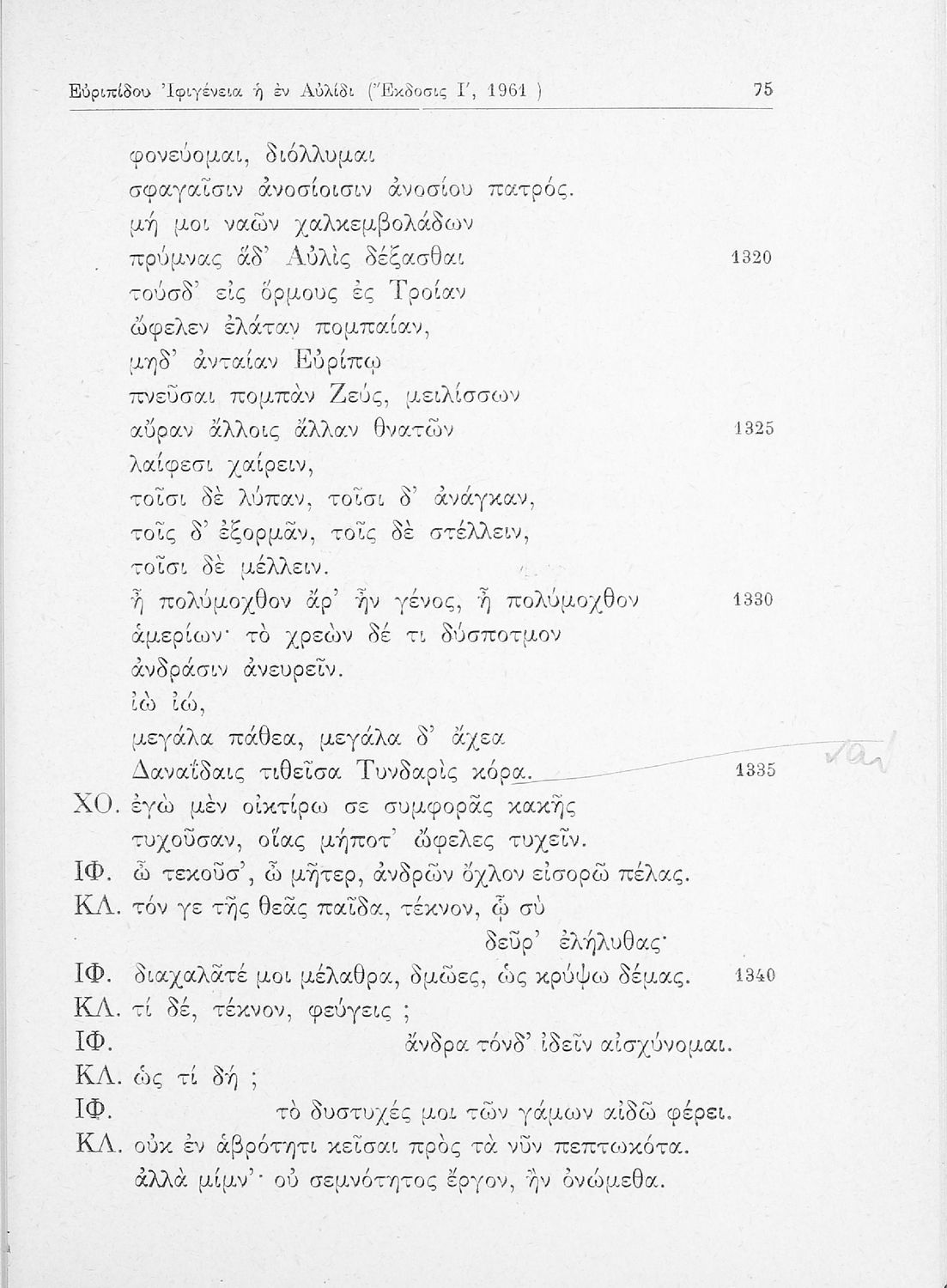 Μαθητικό βοήθημα Αρχαίων Ελληνικών για την Ε' Γυμνασίου που περιλαμβάνει μετάφραση, ερμηνευτικά, γραμματικά και συντακτικά σχόλια στην Ιφιγένεια η εν Αυλίδι.