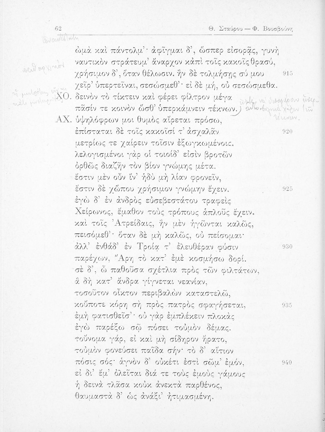 Ευριπίδης, Θ. Σταύρου, Φ Βουσβούνης (σχόλια)