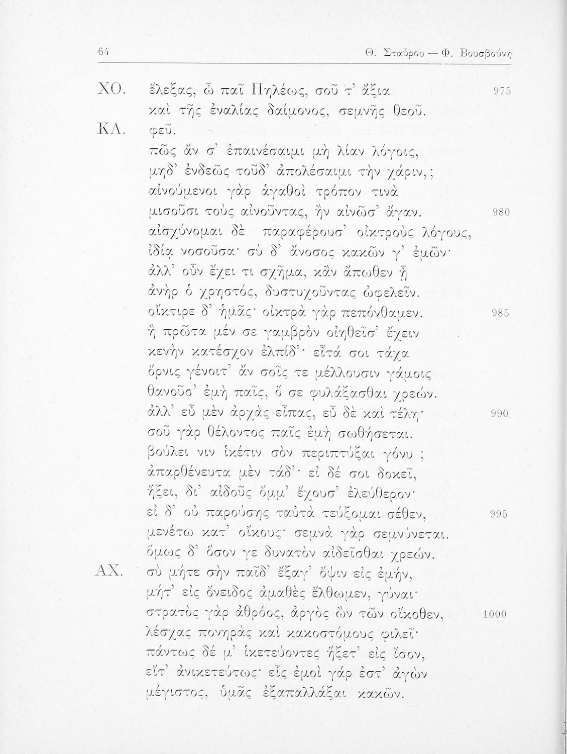 Ευριπίδης, Φ. Βουσβούνης, Θ. Σταύρου (σχόλια)