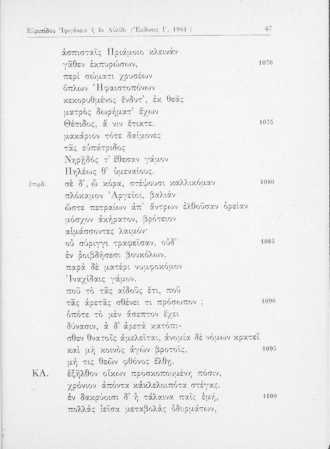 Ευριπίδου Τραγωδίαι Ιφιγένεια η εν Αυλίδι και εν Ταύροις δια την Ε΄ τάξιν των Εξατάξιων Γυμνασίων